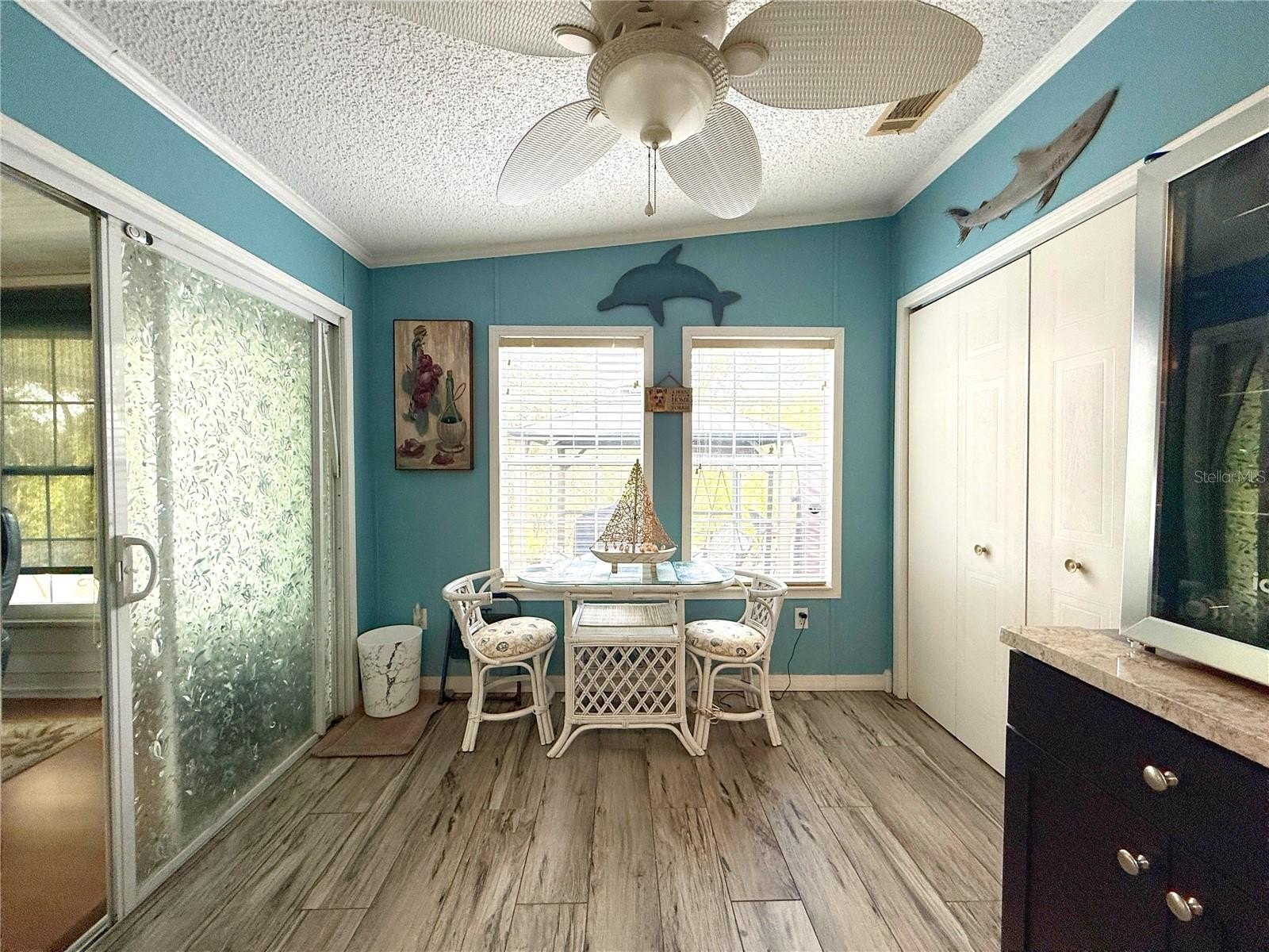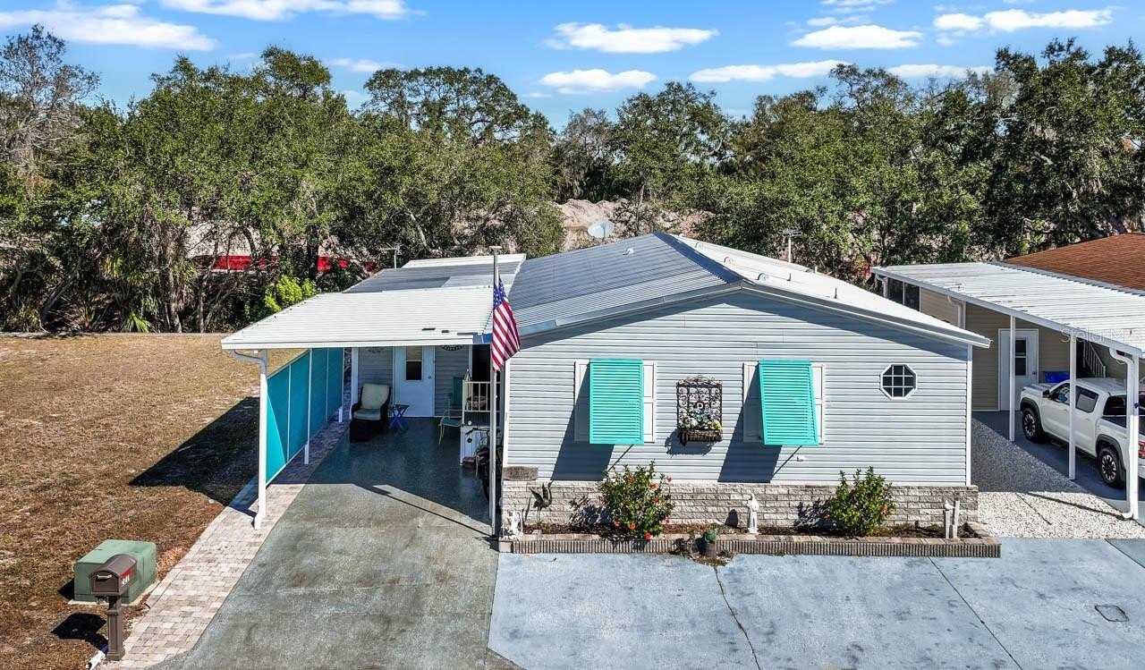 This well-maintained two-bedroom, two-bath home is located in a desirable, resort-style residential cooperative community offering a unique ownership structure with no lot rent, as ownership is conveyed through a cooperative share. The split-bedroom floor plan provides excellent privacy, making the layout ideal for both everyday living and hosting guests. The dining area is conveniently positioned adjacent to the living room, creating an open and comfortable gathering space. The kitchen is well appointed and features a charming eat-in area with peaceful views of the creek behind the home. The residence is offered partially furnished, allowing for an easy and flexible transition. Outdoor living is a highlight, with an expansive entertainment area that includes two covered spaces—perfect for enjoying Florida’s year-round weather. The creek setting adds a serene backdrop, where dolphins, manatees, fish, and ducks have all been spotted, creating a truly special waterfront experience. A generous carport leads to a storage shed that can also serve as a workshop, ideal for hobbyists or DIY enthusiasts. The community offers a wide variety of recreational and social amenities, including a heated pool, clubhouse, shuffleboard, and bocce ball courts. Residents enjoy frequent dances and dinners in the clubhouse, which also features a library and a game room with pool and poker tables. Creative residents will appreciate the dedicated craft room equipped with two kilns and space for a variety of artistic pursuits. Conveniently located midway between Tampa/St. Petersburg and Sarasota/Bradenton, Apollo Beach offers easy access to restaurants, medical services, shopping, and everyday conveniences—all just outside the community gates.