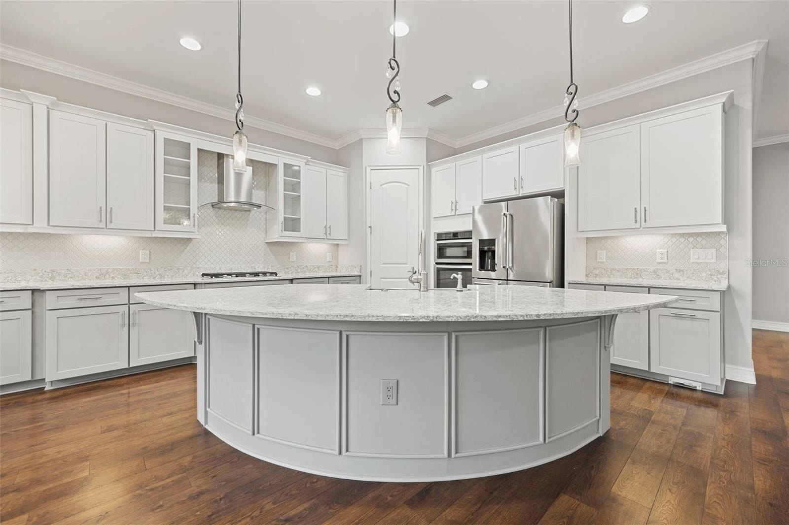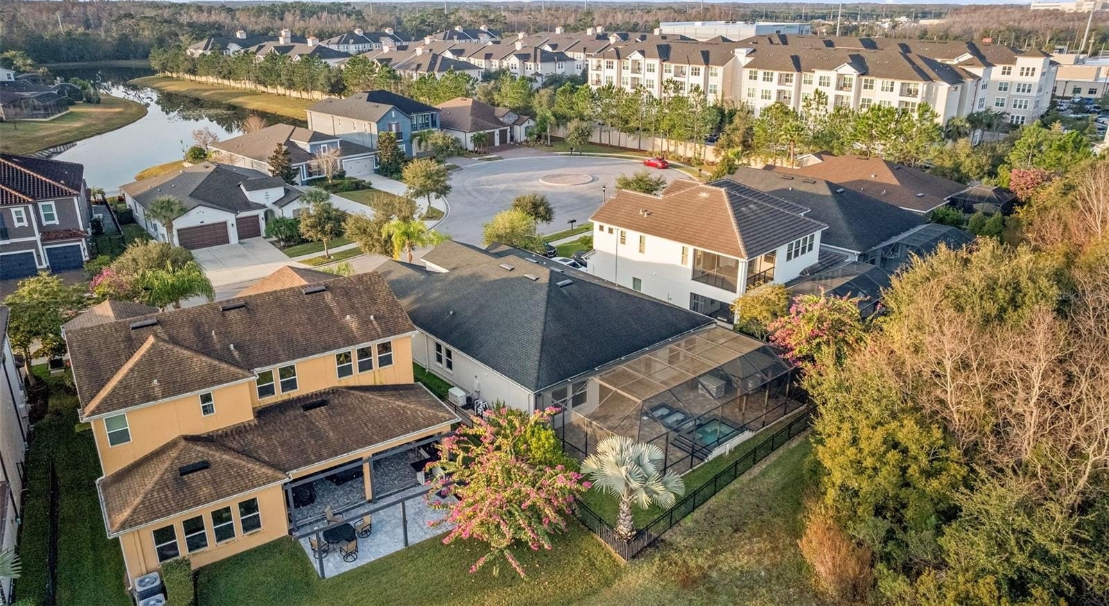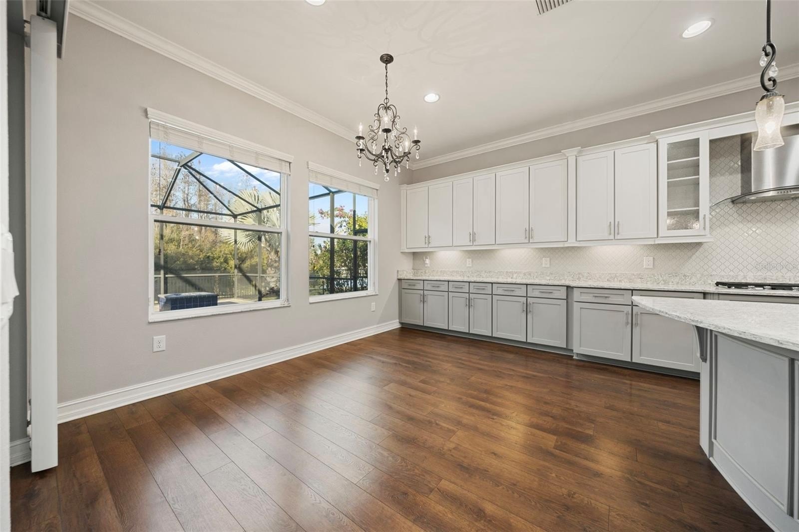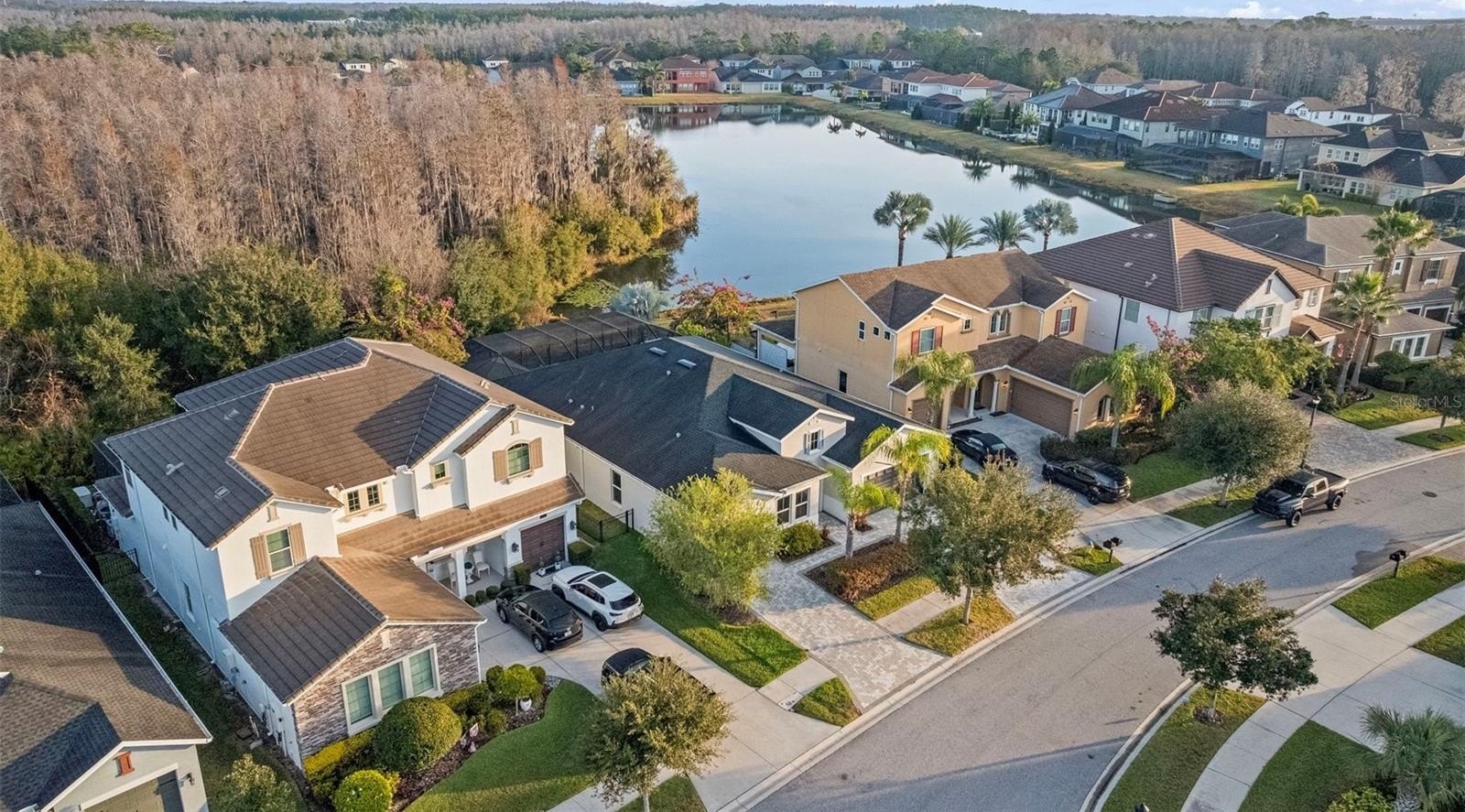 Luxury living in Promenade at Lake Park – Hamilton Model by Standard Pacific. Welcome to this exceptional 4-bedroom, 3-bath residence located in the gated community of Promenade at Lake Park. Perfectly situated on a premium waterfront and conservation lot, this home offers rare privacy, tranquil views, and true resort-style living. Inside, the thoughtfully designed split-bedroom floor plan includes a private guest suite with en-suite bath; ideal for in-laws or extended guests. The home features engineered hardwood flooring, soaring 10-foot ceilings, 8-foot doors, elegant tray ceilings, crown molding, and designer finishes throughout. The chef’s kitchen is a showstopper, showcasing upgraded platinum cabinetry, Cambria quartz countertops, under-cabinet lighting, a Kohler apron-front farmhouse sink, luxury faucet collection, and gourmet stainless steel Whirlpool and KitchenAid appliances. The kitchen flows seamlessly into the great room and casual dining area, highlighted by oversized sliding glass doors that open to the outdoor living space. The primary suite is a private retreat featuring a custom built-in walk-in closet and a spa-inspired bath with quartz and marble finishes, ceiling-height mirrors, soaking tub, and a tiled walk-in shower with frameless glass, bench, and rainfall shower head. A rare and versatile feature is the fully enclosed, climate-controlled third garage (228 sq ft); perfect for a home office, gym, playroom, or meditation space! The two-car garage offers epoxy flooring, overhead storage, insulated impact doors, and an EV charging outlet. Step outside to your private resort oasis featuring an expansive screened lanai, outdoor kitchen with stone and granite countertops, sink, refrigerator, and cabinetry, heated pool and spa, custom multi-level water feature with LED lighting, natural gas fire pit, and brick pavers throughout; all overlooking peaceful water and conservation views. This outdoor living space is ideal for both entertaining and everyday relaxation. Additional premium upgrades include: whole-house generator (including pool), whole-house surge protector, central vacuum, surround sound & lanai ceiling speakers, natural gas throughout, security cameras, water softener, tankless water heater, insulated impact garage doors, gutters and upgraded screen enclosure (2023).