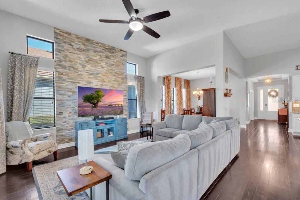 Wow! Check out this Stunning Home in Desirable Starling Village of Fishhawk Ranch! A Majestic Mediterranean elevation and Lush landscaping greets your arrival. Upon entering your eyes are immediately drawn to all of the spectacular upgrades and finishes! Dressed in wide planked wood floors throughout the first floor living area. Special features include a First Floor Master Suite AND Guest Suite! This Home offers 4 bedrooms, 3 Full Baths, Home Office, an Upstairs Bonus Room dressed in Luxury Vinyl Plank floors and an Oversized /Screened Lanai overlooking a Huge Fenced Back Yard! A Gourmet Kitchen will please any chef w/ Granite counter tops, decorative mosaic back splash, stainless steel appliances (including a newer LG fridge, microwave, dishwasher) upgraded faucet, a walk–in pantry, center island, opening to the great room & eating area w/ sliding doors opening to covered lanai. Wired for Surround Sound, Your Great Room hosts a beautiful stone accent wall! As you continue to explore this spacious home, notice the extensive appointments: wood spindles and stair treads, tray ceilings, 8 ‘doors, 6” base moldings, granite in every bathroom, tankless hot water heater, whole home water filtration, and MORE! You will fall in Love with the generously sized Master Suite features hardwood floors, a Large Walk in Closet and Dreamy Master Bath with new tile and a stand-alone soaking tub! This Home is Energy efficient with a plethora of Double Pane Windows allowing an abundance of Natural Light! Your Over-sized 2 car garage w/ additional storage area, perfect for storing seasonal items/lawn equipment. Resort Style Living, short walk takes you to the Sports Complex, Fitness Center, Clubhouse, Pool, Playground, Dog Park, Tennis Club and Top Rated Schools! The new residents will alos have access to all of the Fishhawk Ranch Amenities in phases 1, 2 and 3! Military folks can grab the Hartline Bus to MacDill AFB! This home is a Show Stopper, be sure to see the attachments and schedule you showing today!