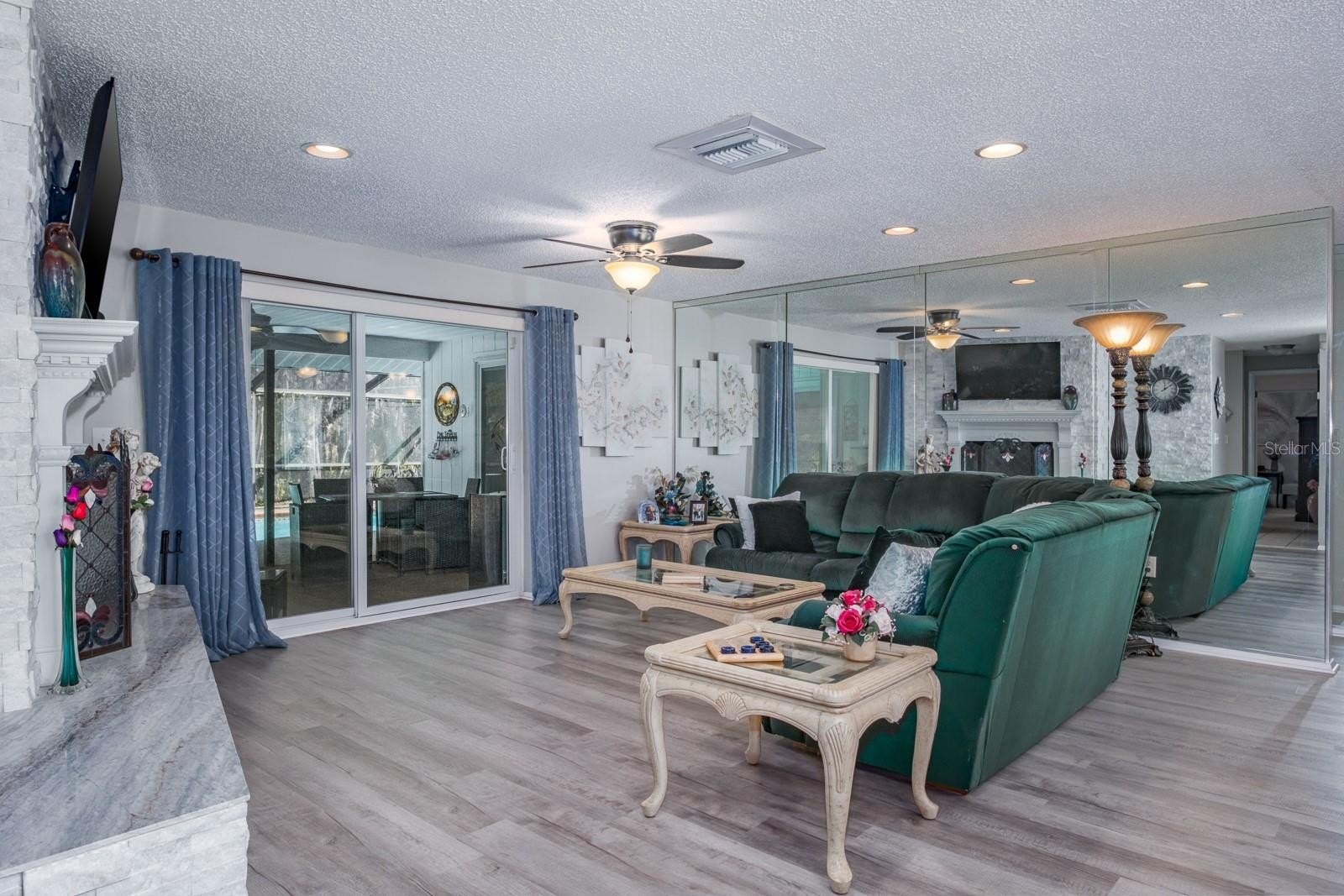 Location! Location! Location! This stunning pool home in the sought after community of Forest Lakes sits on an oversized corner lot and offers tranquil water and conservation views.; Move-in ready, delightfully updated home of nearly 1,700 sq.ft. features 3 bedrooms in a desirable split floorplan layout, 2 brilliantly renovated baths and an oversized 2 car garage. Enter thru the double leaded glass doors to the fabulous main living area featuring luxury vinyl flooring (2023) and centered by an elegant decorative stone and granite accented wood burning fireplace and offering views of your gorgeous pool side lanai thru large sliders. The spacious formal dining room also features luxury vinyl flooring and is an ideal space for entertaining. The extended galley kitchen boasts raised panel cabinetry, epoxy coating countertops, tile backsplash, dual stainless-steel sinks, large built in cabinet pantry including butler pull out drawers and plenty of storage and counter space for family meals and entertaining. Appliances include ceran top range, built in microwave, side by side refrigerator and dishwasher. The built-in desk is convenient and ideal for office space or homework area. The spacious eat in area offers tranquil serenity overlooking the lanai and pool. A perfectly situated laundry room is located just off the kitchen. The seller is generously including the washer and dryer with the sale of the home. Large primary suite features a walk-in closet and spectacular remodeled ensuite bath (2023). The magnificent, spa like bathroom boasts gorgeous tile flooring, designer vanity with quartz counter, undermount sink, spacious full walk-in shower with decorative tile accents and a bench seat... absolutely stunning! The secondary bedrooms and bath are conveniently situated on the other side of the home offering ultimate privacy. The spectacular remodeled second bath (2023) boasts dual vanities with undermount sinks, granite countertop, an enormous walk-in shower with fashionable frameless glass, floor to ceiling designer tilework, dual shower heads, corner bench seat and niche. Gorgeous!!! Entertaining and family living space is extended outdoors with a covered lanai accented by river rock decking and a vaulted screen enclosed saltwater pool (2023). Florida living at its best… enjoy a morning cup of coffee or afternoon cocktail watching the turkeys and deer graze while overlooking the tranquil pond and serene conservation views. Other notable updates include interior paint 2023, Roof 2015, AC Jan 2016, Impact windows and sliding glass doors. Forest Lakes Community offers basketball, racquetball, tennis and pickle ball courts, community pool, playground and picnic area. Zoned for top rated schools! Quick drive to Tampa International Airport & minutes from shopping, restaurants and a short drive to Dunedin’s Honeymoon Island. Florida living… can’t beat it!