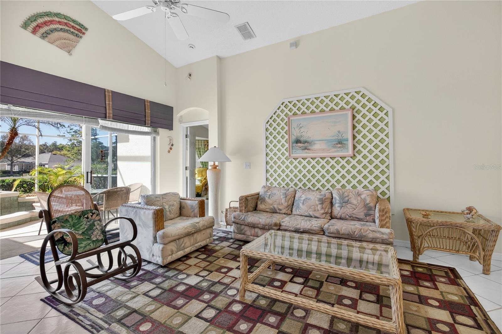 Million-Dollar View! Colonial home ideally situated on the 10th tee of the main Kings Ridge Golf Course with a spectacular view of the first fairway, 10th tee boxes and driving range and only steps from the Pro Shop and Kings Ridge spectacular club house and pool. Resort living at its best. A new roof was put on in 2016. This 2 - bedroom, 2 - bathroom plus den home has three bay windows strategically located in the master bedroom, the guest bedroom and the dinette. This home has a very appealing open floor plan with a huge living room and dining room combo. The screened in patio has a in ground spa. The Gated Golf Community Of Kings Ridge Offers A Multi-Million $ Clubhouse, Spas, Swedish Sauna, Tennis, Boccie, Shuffleboard, Basketball Courts, Card Rooms, Billiards, Bingo, Arts And Crafts. If You Don’t Like Driving Cars, Then Get A Golf Cart And Ride To The Supermarket, Restaurants, Banks, And Beauty Salon & Many More Shops In Kings Ridge Plaza. Maintenance Fees Include Lawn Care, Exterior House Painting, 24 Hour Security And Basic Cable. Easy Commute to Disney, Orlando Airports. When Only The Best Will Do, Make This Home Yours!