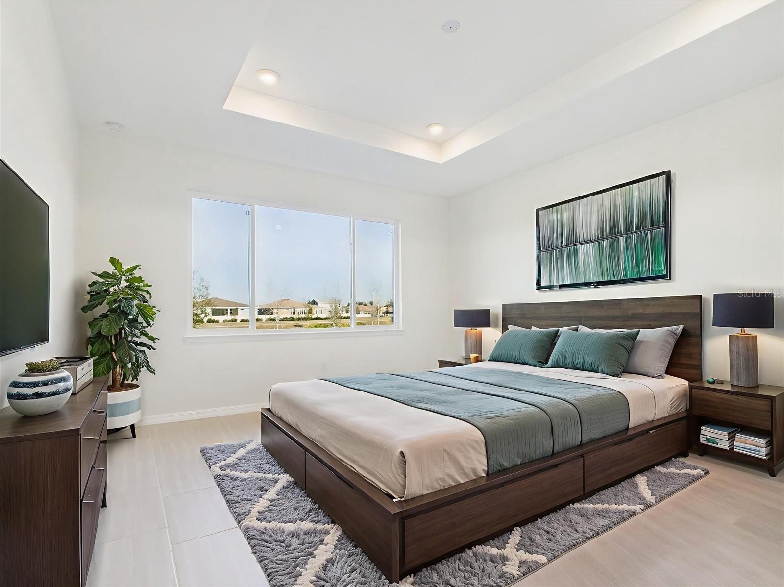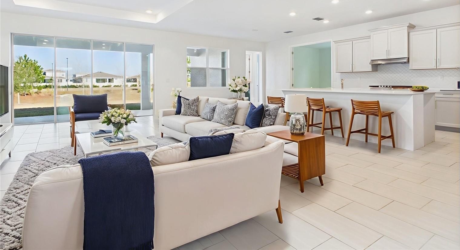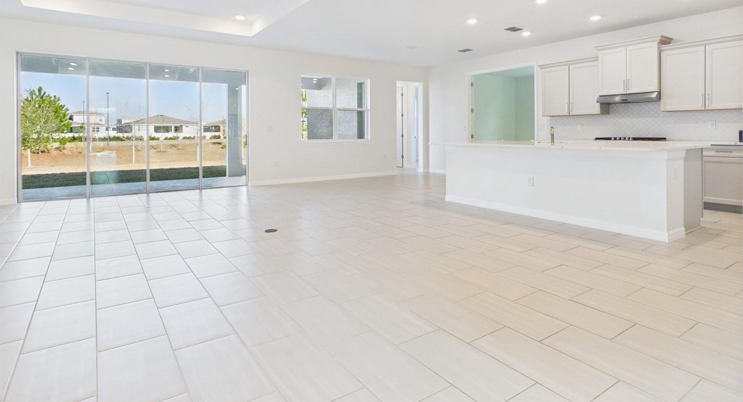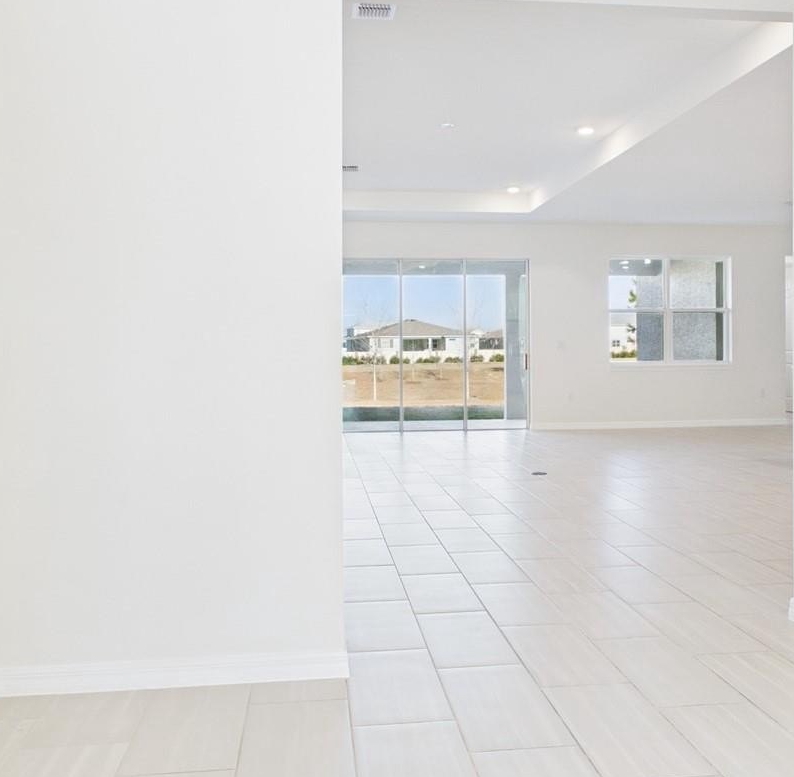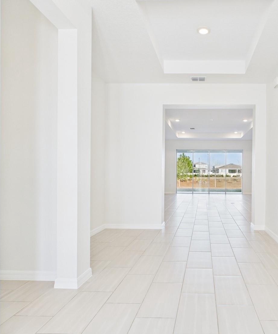 From the moment you arrive, you’ll appreciate the extra-spacious covered front porch and grand foyer that set the tone for the home’s elegant yet practical layout. Inside, upgraded tile flooring flows throughout the main living areas, complemented by tray ceilings in both the living room and primary suite. The extended family room enhances the open-concept design, creating an ideal space for everyday living and entertaining.