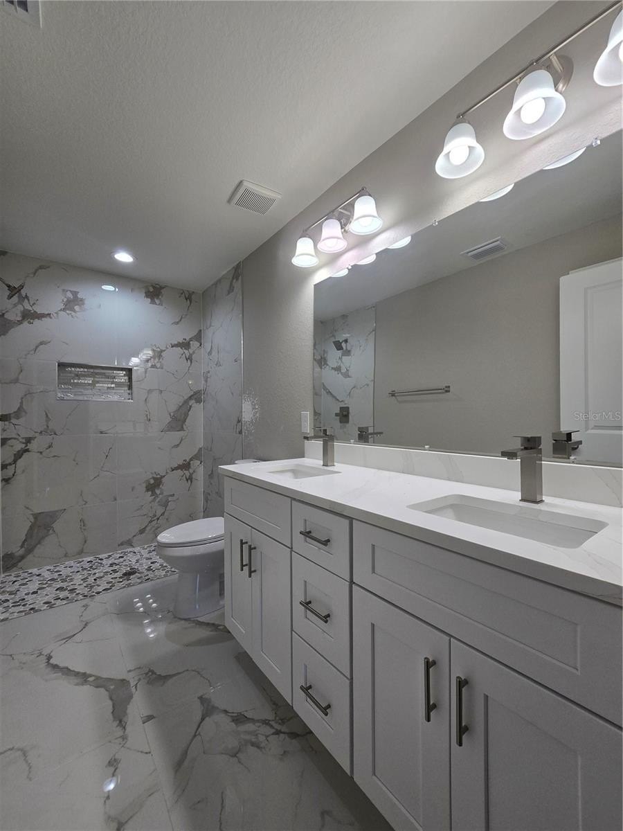 Come see this wonderfully styled, 3 bedroom, 2 bath, 2 car garage on a OVERSIZED .27 AC LOT in the very popular Silver Springs Shores area. This home features a split plan, high ceilings & QUARTZ STONE counters in the KITCHEN, BATHROOMS & WINDOW LEDGES! When you step in side, you will notice the open design with tall ceilings and a split floor plan. The primary bedroom features an oversized closet & en suite bathroom with A FULLY TILED, EZ ENTRY SHOWER & linen closet. The kitchen, has whisper quiet drawers & UPGRADED cabinets with stylish knobs. Gorgeous sink with a beautiful open view. DELUXE SMART APPLIANCE PACKAGE INCLUDES Stainless steel Fridge, Dishwasher, Stove & Microwave comes with the home. A beautifully patterned Quartz counter island comes with room for chairs. Nearby, you have access to the laundry room & garage via a handy pocket door. Across the house, the secondary rooms share the bathroom and will have good space for a full size bedroom set, office, or a game room. The choices are endless! Ample closet space has been supplied as well for all of their storage needs. The .27 acre OVERSIZED LOT gives you plenty of room for all of your toys! NOT IN AN HOA so you are free to build a fence, add a pool, do what you want, how you want! On a well and septic system so NO UTILITY BILLS is also a great plus! If you install back up power in preparation for any possible outage, you will still have use of water and sewer as long as you have electric! Close enough to give you access to Belleview, Summerfield, The Villages, The Interstate and beyond. Less than 10 min to Wal-Mart, Publix, Aldi & Save a Lot, The post office, 3 auto parts stores & car washes as well as many food & medical offices nearby for ease. A short drive in either direction will lead to Ocala's downtown square or to our famous Lake Weir, where you can boat, kayak, jet ski, or enjoy a meal on the lake over looking the sunset. USDA, First Time Homebuyer & Veteran friendly! Almost completed, you can be in QUICKLY