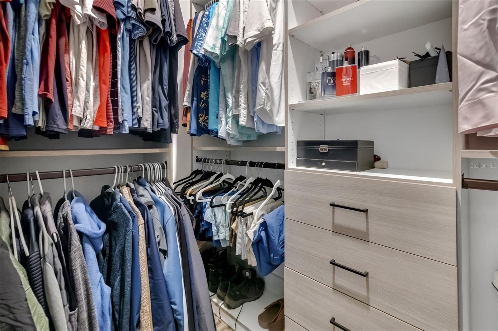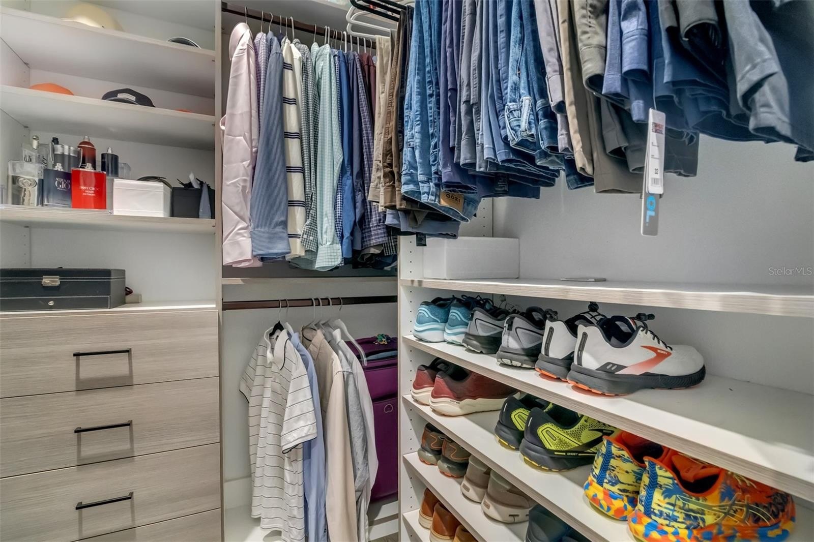 The home offers four bedrooms plus two flex spaces, perfectly suited for a private office, fitness studio, game room, or guest retreat. The owner’s suite features a spa-inspired bathroom and custom-built closets with barn-style doors, while a secondary bedroom also includes custom closet systems. All carpet has been removed and replaced with durable luxury vinyl flooring throughout. The half bath has been fully remodeled with a modern vanity, mirror, and toilet.