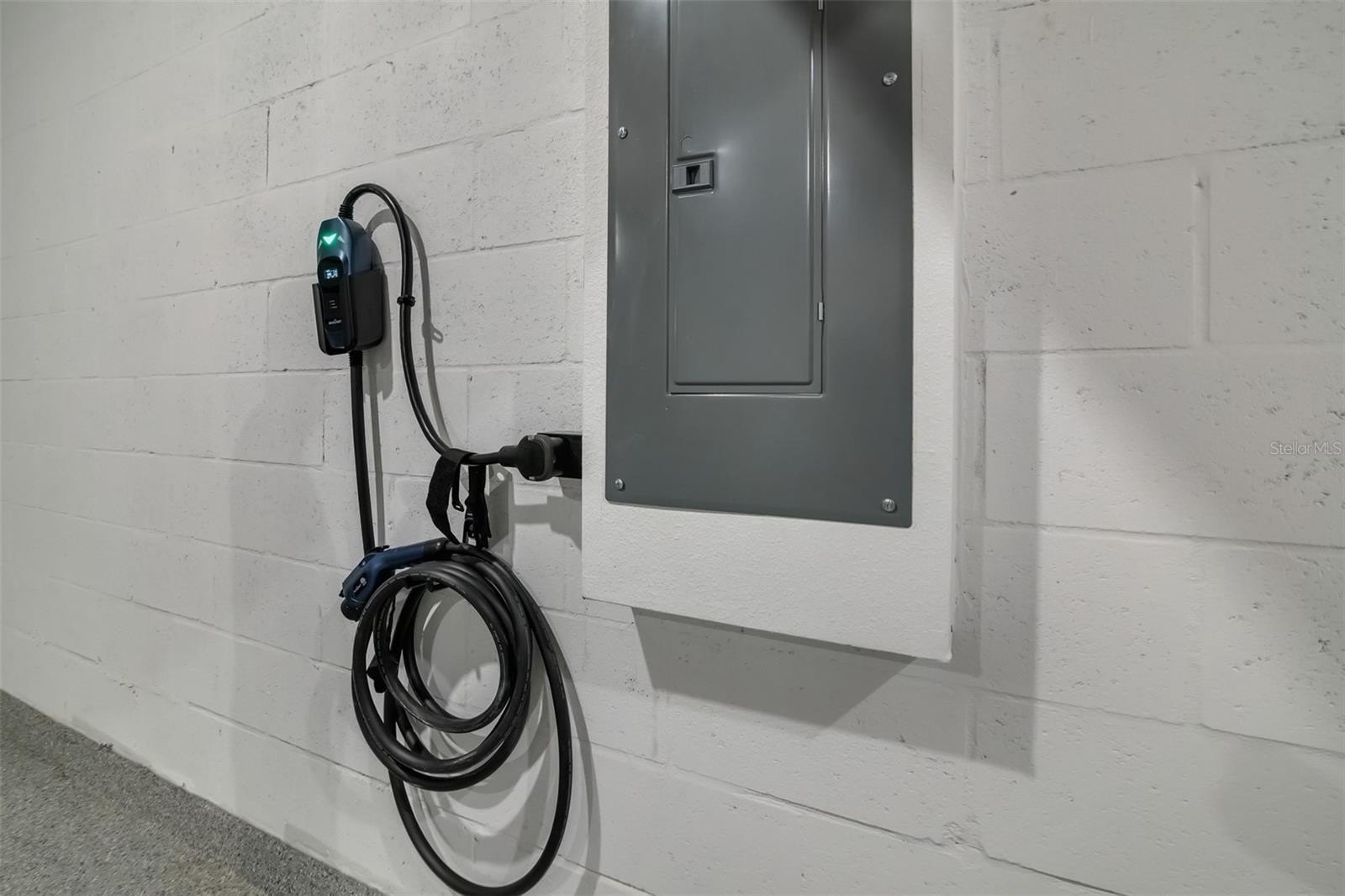 EV charging included: Portable Level 1 / Level 2 electric vehicle charger with interchangeable NEMA 5-15 and NEMA 14-50 plugs. Provides up to 40 amps and 9.6 kW charging capacity. Compatible with Tesla and all electric vehicles using the North American Charging Standard (NACS). Includes a 25-foot cable and built-in safety protections.