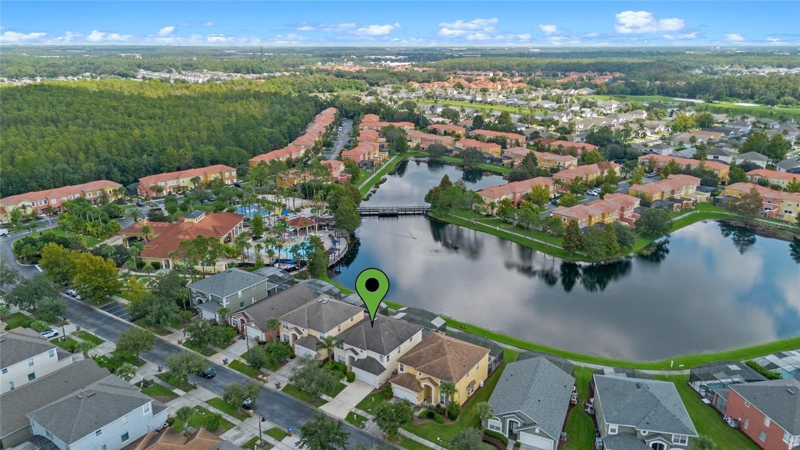One or more photo(s) has been virtually staged. This stunning 6-bedroom, 5.5-bathroom vacation home is a waterfront gem with a sparkling pool and spa, conveniently located just four houses away from the clubhouse—perfect for both relaxation and entertainment! Step inside and enjoy the spacious, open floor plan that offers a fantastic flow for both living and entertaining. As you enter the home, you’ll find the formal living and dining rooms at the front, while the back of the home features a large family room, kitchen, and kitchen nook dining area, all offering breathtaking views of the pool and pond. The kitchen is a chef’s delight, boasting a huge closet pantry, a kitchen island, and all-new appliances, perfect for hosting or catering to large gatherings. The primary master bedroom is conveniently located on the ground floor, providing ultimate privacy and easy access to the outdoor oasis. This bedroom offers gorgeous pool and water views, creating a serene retreat. It also features a spacious ensuite bathroom complete with a large countertop, a corner soaking tub, a separate shower, a private toilet room, and a walk-in closet, offering both comfort and luxury. Adjacent to the master is a guest half bathroom and a fully equipped laundry room. The outdoor space is nothing short of spectacular! The humongous, fully screened patio offers both shaded areas and sun-soaked spaces, making it perfect for lounging or dining al fresco. The sparkling, recently refinished pool and spa overlooks the tranquil pond, creating the ultimate vacation retreat feel. Whether you’re soaking in the sun or relaxing in the shade, the views from this patio are simply STUNNING. Upstairs, you’ll find the remaining bedrooms, including three ensuite bedrooms—perfect for large groups or multiple guests. Each bedroom is thoughtfully designed to maximize privacy and comfort, making this home an ideal vacation property or luxurious Airbnb/VRBO rental.This property has been meticulously maintained and updated with fresh paint inside and out, new laminate wood flooring, new blinds, ceiling fans, new electrical outlets and switches, and a brand-new security system. Even the garage has been refreshed with new flooring. The seller has invested significantly in upgrading this home, making it move-in ready or immediately available for short-term rental use. Located in the highly sought-after, guard-gated Terra Verde community, this waterfront home offers unparalleled amenities, including a beautiful clubhouse, beach entry pool, hot tub, pier, shuffleboard court, a children’s playground, basketball courts, a movie room, fitness center, beach volleyball, and mini-golf. All of this is just minutes from US 192, with its array of shopping and dining options, a 5-minute drive to Walmart, and less than 20 minutes to Disney theme parks and Celebration. Plus, with proximity to SeaWorld, Universal Studios, and Orlando International Airport, you’ll enjoy easy access to all that Central Florida has to offer. Looking for a beach getaway? You’re just over an hour to Cocoa Beach and under two hours to the stunning west coast beaches. To showcase the property’s incredible potential as either a luxurious private residence or a high-end vacation rental, some of the listing photos have been virtually staged. Don’t miss your chance to own this waterfront paradise in one of Central Florida’s most desirable resort communities!