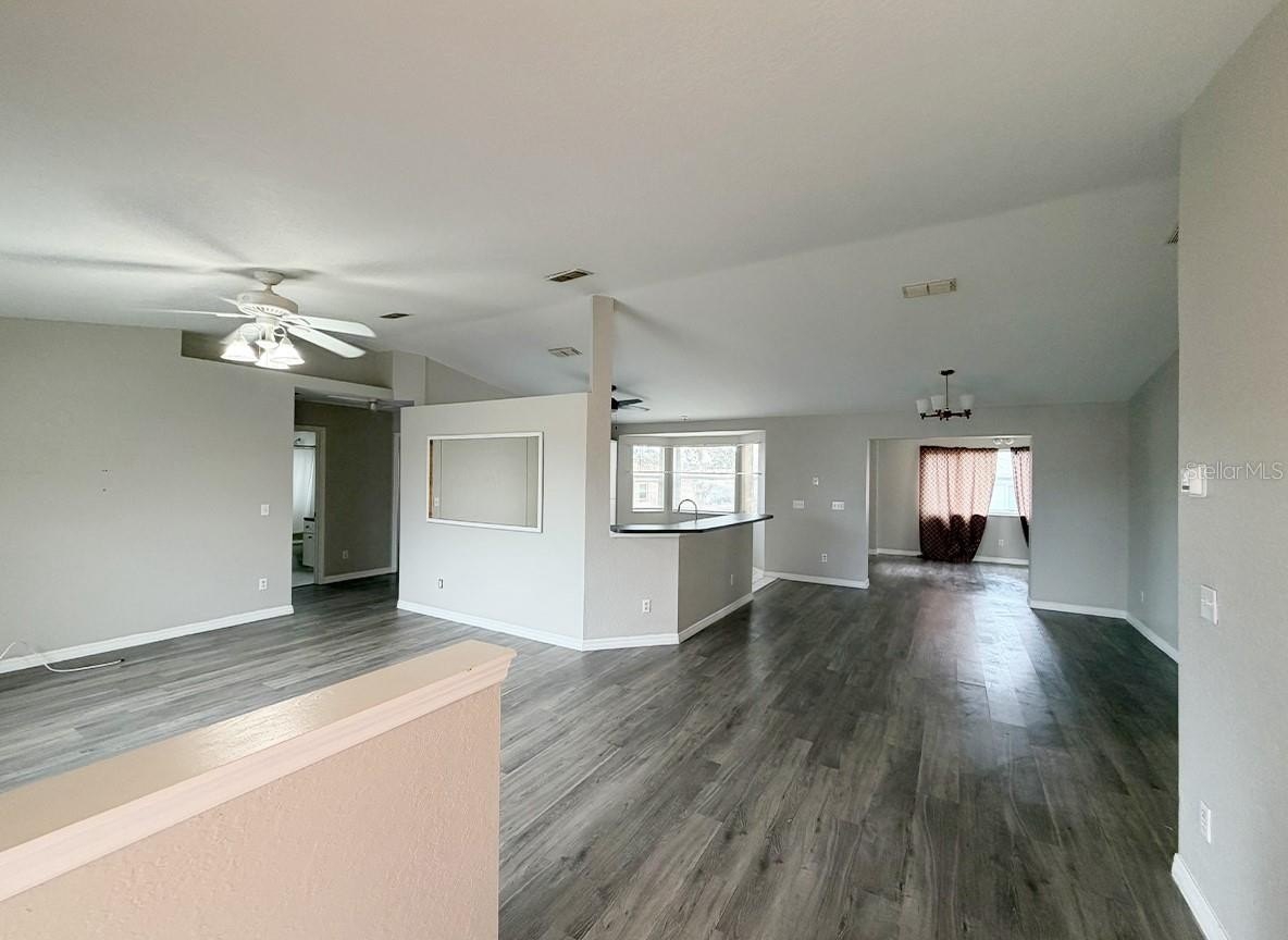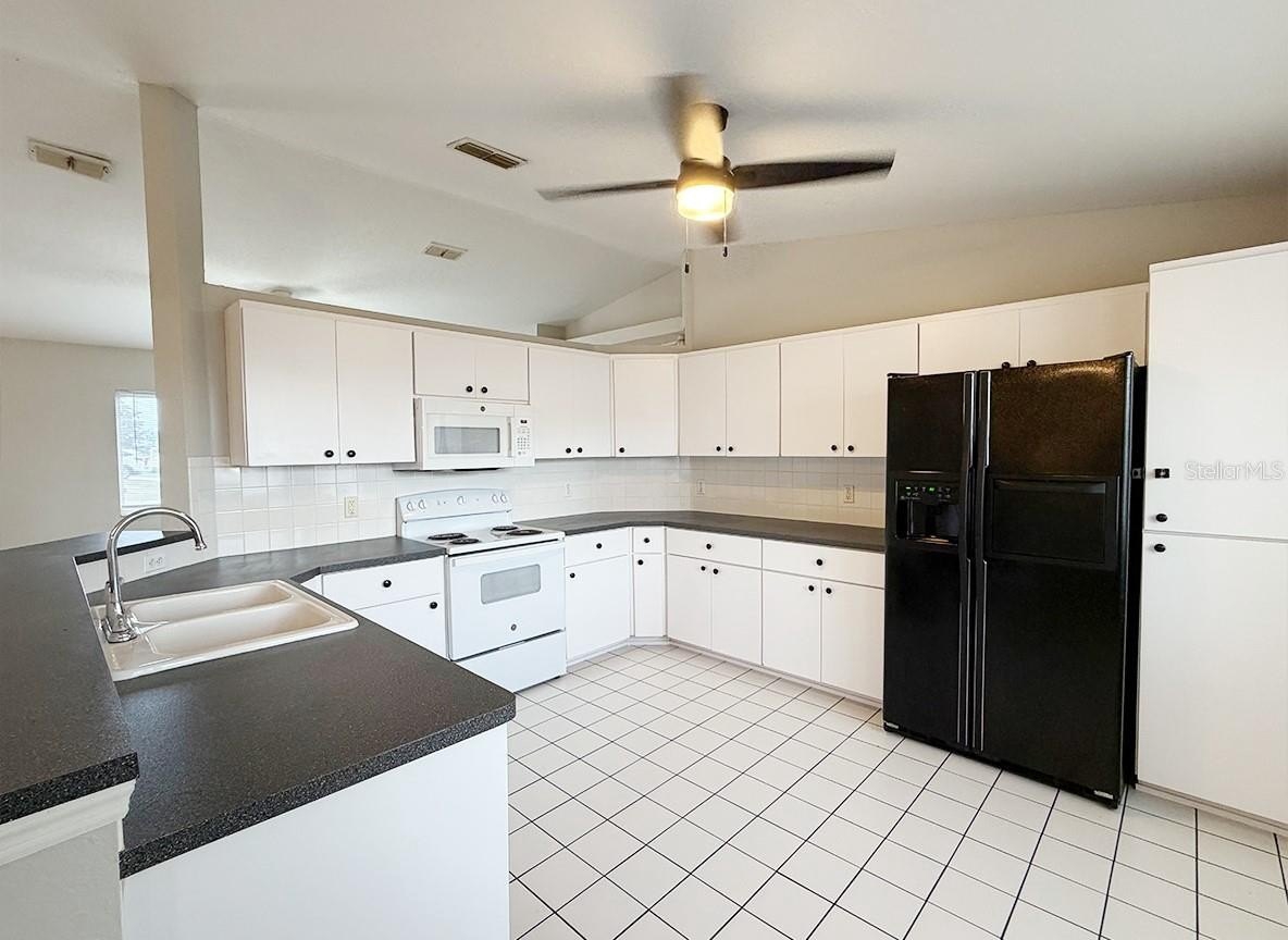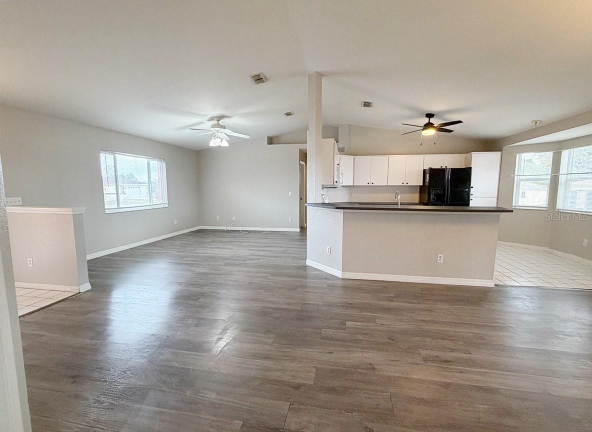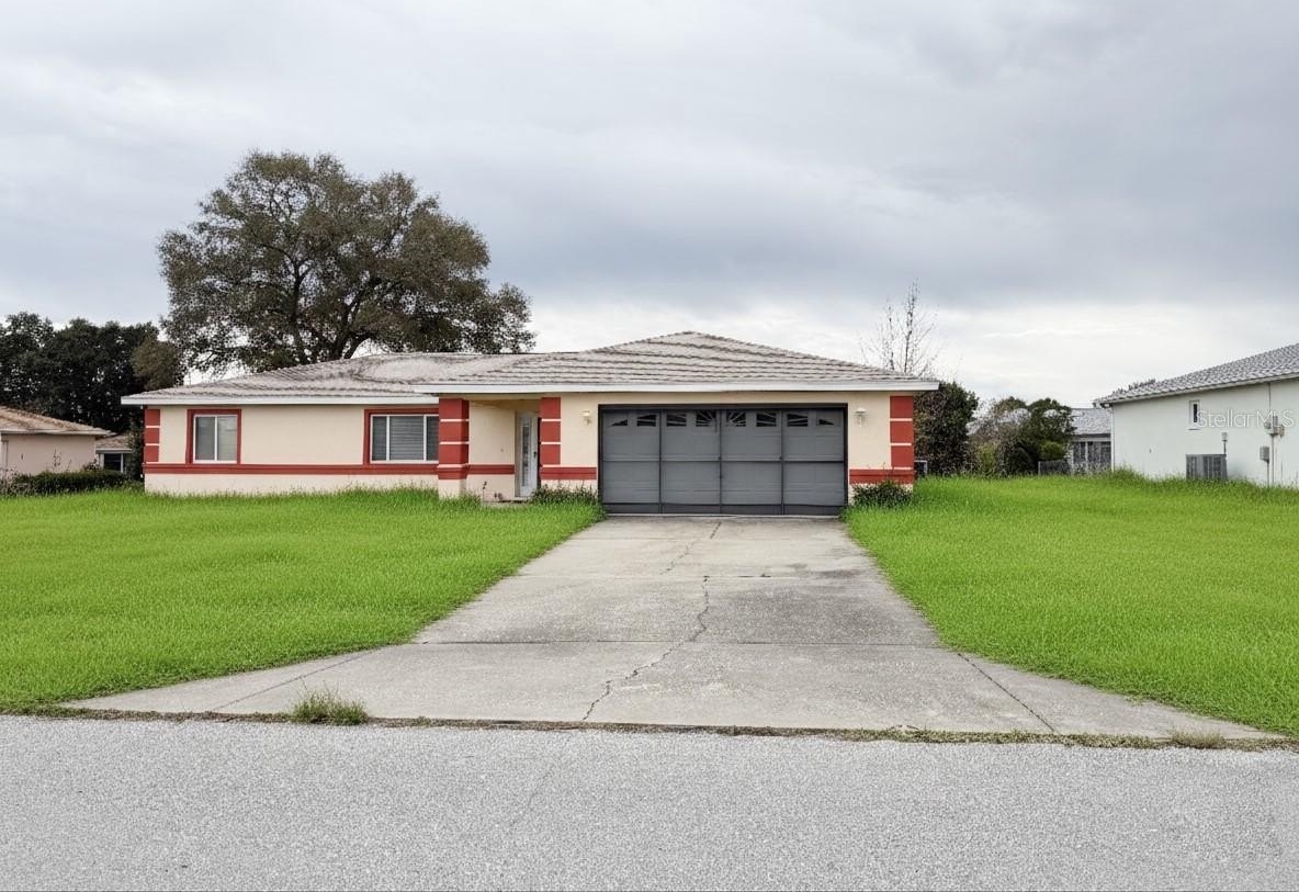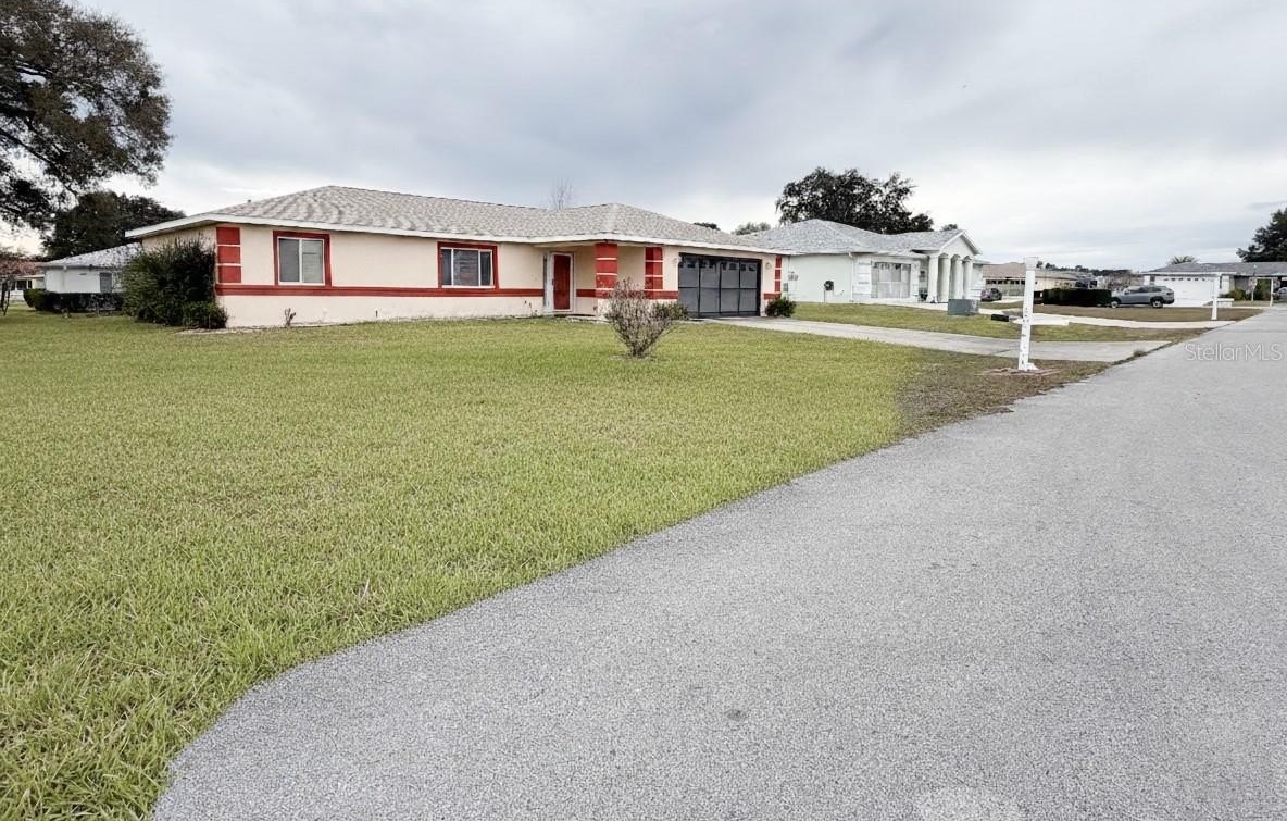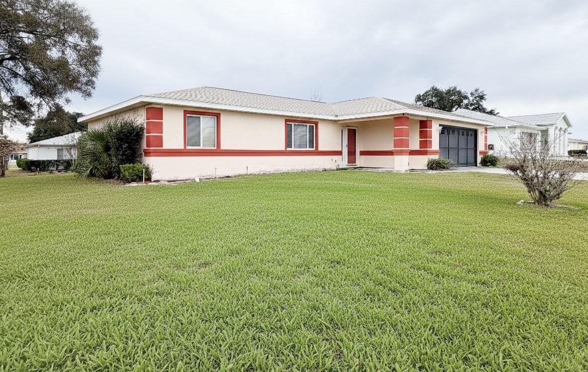 Welcome to this beautifully maintained home located in a desirable 55+ community with convenient access to the clubhouse and pool. This spacious 3-bedroom, 2-bath home with a den offers a bright and functional floor plan designed for comfortable Florida living. The home features new flooring in the common areas, new carpet in the primary bedroom and walk-in closet, and tile in all wet areas. Fresh neutral interior paint enhances the main living areas, primary suite, and bath, while the exterior and trim have also been freshly painted for excellent curb appeal. Enjoy a well-appointed kitchen with a breakfast bar, bar stools, and a charming bay-window breakfast nook. Additional highlights include an inside laundry room with utility sink and cabinets, irrigation system, pedestrian garage door, and a guest bath with jetted tub and grab bars for added comfort. Major updates include a Lennox A/C (2014) and a water heater installed in 2021. The home also features gutters and downspouts, a screened patio for outdoor enjoyment, and recently cleared front yard trees providing a clean, open look. Move-in ready and ideally located in one of Ocala’s most sought-after active adult communities — this home is a must see!