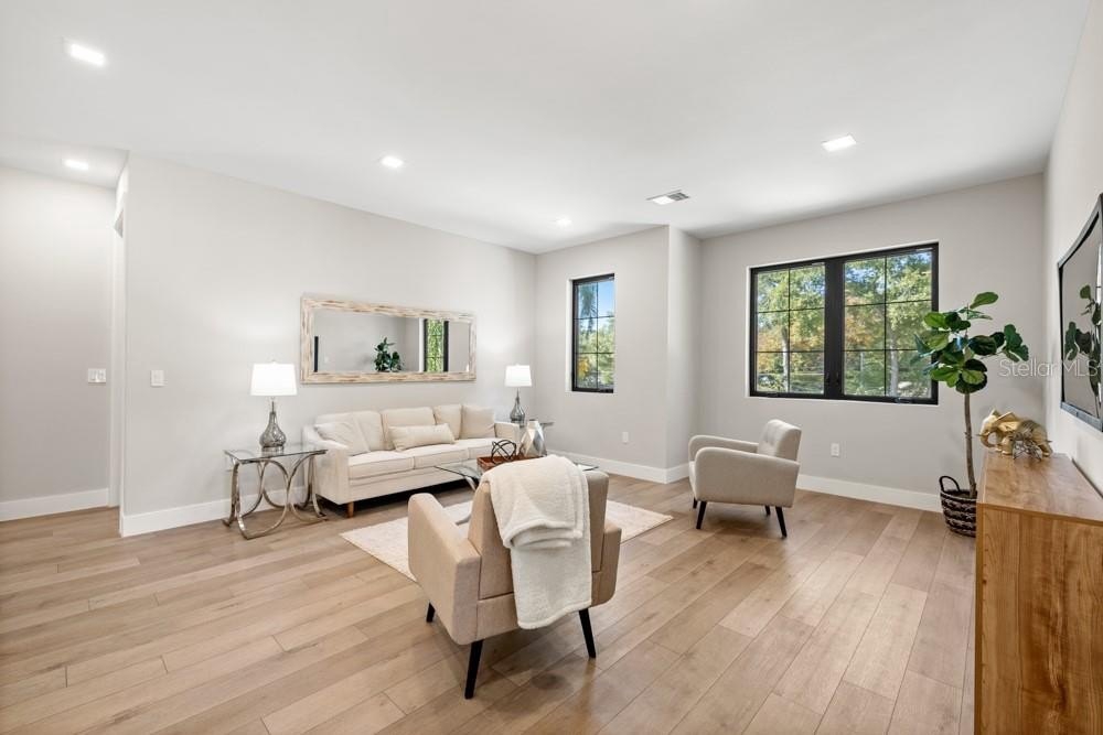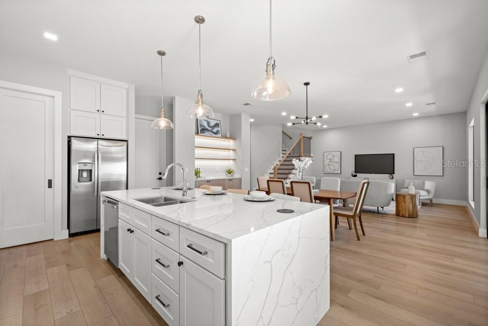 Brand-new construction located in the heart of the Hourglass District, just south of downtown in SODO. This home offers a rare opportunity to own new construction in a highly walkable area surrounded by local restaurants, shops, parks, and everyday conveniences, only minutes from Downtown Orlando.The home spans 2,872 square feet and features 4 bedrooms and 3.5 bathrooms with an open, functional layout that prioritizes space and natural light. The main living areas flow easily from the living room into the kitchen and dining area, making the space practical for daily life and comfortable for entertaining without feeling oversized or forced.The kitchen is centered around a large island with premium appliances, clean cabinetry, and plenty of prep and storage space. Bathrooms are finished with modern tile and straightforward, timeless selections. A first-floor bedroom with walk in closet and an ensuite bath is perfect for multigenerational living or use as a functional home office.Upstairs, a generous loft provides additional living space, along with two more bedrooms that are well-sized and thoughtfully laid out. The primary suite includes a spacious shower, double vanities, and a large walk-in closet.A two-car garage and ample storage throughout the home keep things functional and organized, with no wasted space and no unnecessary extras. This home also has an extra-long driveway, which is a true luxury in these downtown neighborhoods. You also have a large fenced backyard with room to build a pool or backyard oasis.Located near local cafés, dining, neighborhood shops, and parks, with Lake Eola and Downtown Orlando just minutes away, this home offers city access while still feeling rooted in a residential setting.