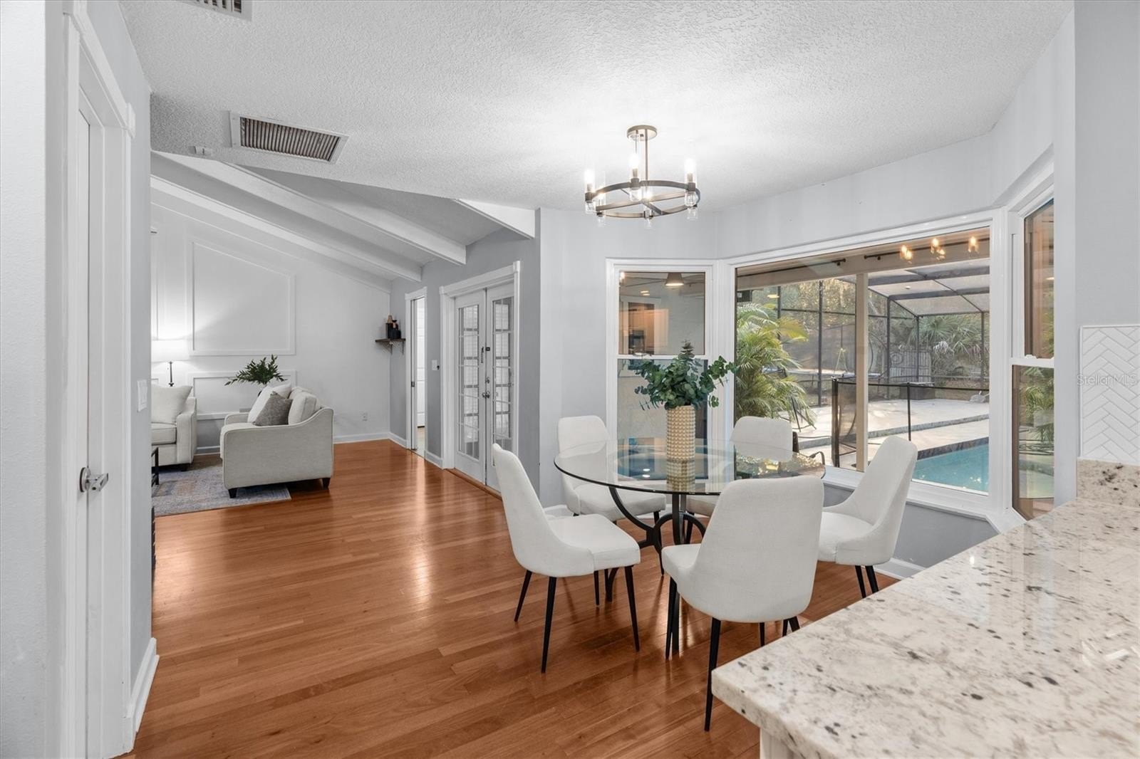 Welcome to the optimal Florida lifestyle in gorgeous Sweetwater Oaks. This corridor of Longwood boasts a top-tier culture of community. showcasing nature, top-rated schools, and multiple private parks and recreational spaces for your all-inclusive active lifestyle. Multiple gated waterfront complexes and parks, ramps to access both the Wekiva River and spring-fed Lake Brantley. This specific home is unique for its exceptional floor plan. It provides maximum flexibility with both a traditional split floor plan and a stacked split plan. Vaulted ceilings, detail wood work, real hardwood floors, $30,000 worth of new windows, architectural shingle roof installed in 2020 with new gutter system. Screened in pool with covered patio enclosure, all visible out of your gorgeous bay window. New counters, backsplash, bathrooms & tilework, etc! This home is a must-see. An absolute knock-out in a community that is hard not to fall in love with. Immerse yourself in peak Florida living!