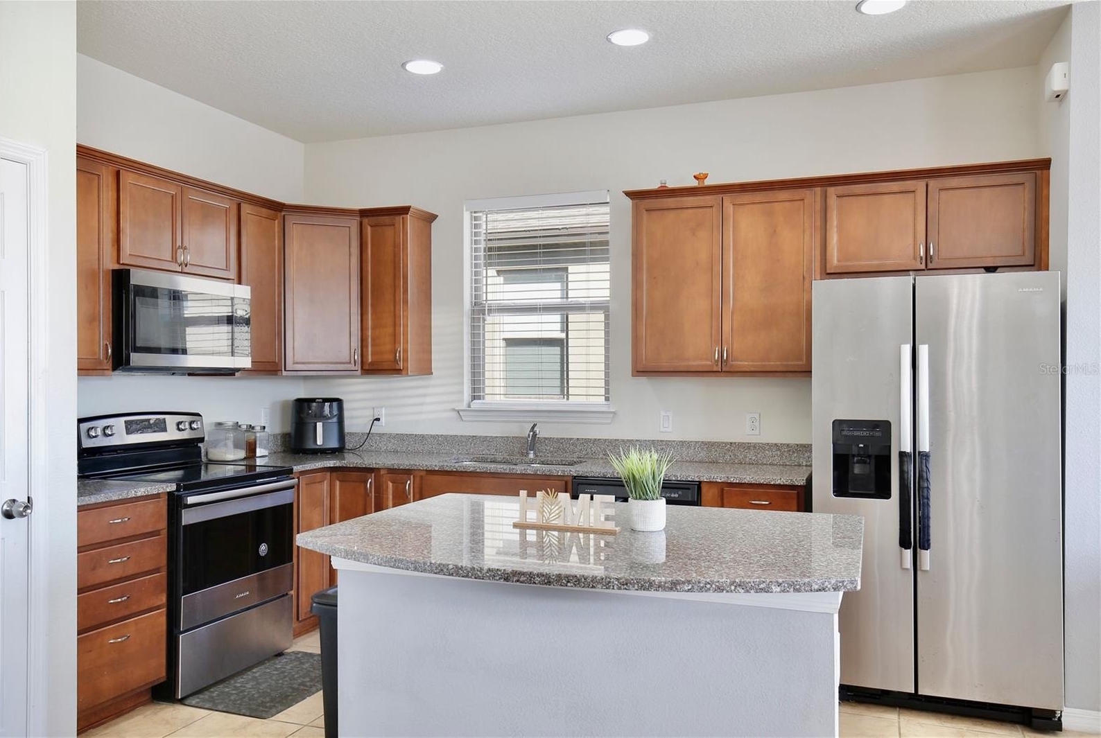 Welcome home! Nestled on a serene corner lot, this house is an oasis of peace with landscaping, a two car garage, and a private yard enclosed by vinyl fencing, offering an ideal space for relaxation. The spacious foyer ushers you into the main living area with its tall ceilings and abundant natural light. The dining room is accentuated by tile flooring and sliding glass doors that lead out to a sunny back patio. Imagine weekends spent grilling and enjoying the company of friends and family in this delightful outdoor living space. Culinary enthusiasts will be drawn to the kitchen, boasting chic shaker cabinets adorned with crown molding, stainless steel appliances, lustrous granite countertops, and recessed lighting. A center island with bar top seating and ample pantry storage round out this kitchen's features, making meal prep a joy. The primary suite is a spacious retreat, complete with a walk in closet and an en suite bath featuring dual sinks, a sleek glass door shower, and a generously sized linen closet. Two additional bright and inviting guest bedrooms provide comfort and style, with a guest bath offering a tub/shower combo conveniently located in between. Situated in a quiet neighborhood between Lakeland and Davenport, this home strikes the perfect balance between secluded living and access to local amenities. Enjoy proximity to Florida Polytechnic University, shopping, dining, and unique attractions like the Lakeland Antique Mall and Safari Wilderness Zoo, with easy access to I-4 for your commuting needs. Don't miss out on the opportunity to make this house your home. View the 3D tour and schedule a showing today to experience the blend of lifestyle and location this residence offers!