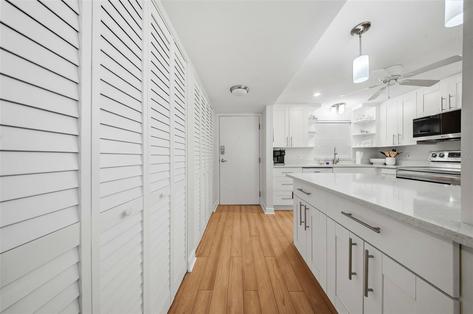Sunsets that stop you mid-sentence. Salt air on the balcony. Gulf water stretching forever—every single day—because you’re on the 7th floor with a front-row seat to the Gulf of Mexico. This 2 bedroom / 2 bathroom waterfront condo on Treasure Island is fully set up for easy, bright, “I’m-never-leaving” beach living. Step inside to a remodeled interior with a wide-open kitchen + living/dining layout, perfect for entertaining while the views do the talking. Natural light pours in, and both bedrooms are generously sized with walk-in closets—a big win for storage on the beaches. Additional storage for the unit on the main floor.
