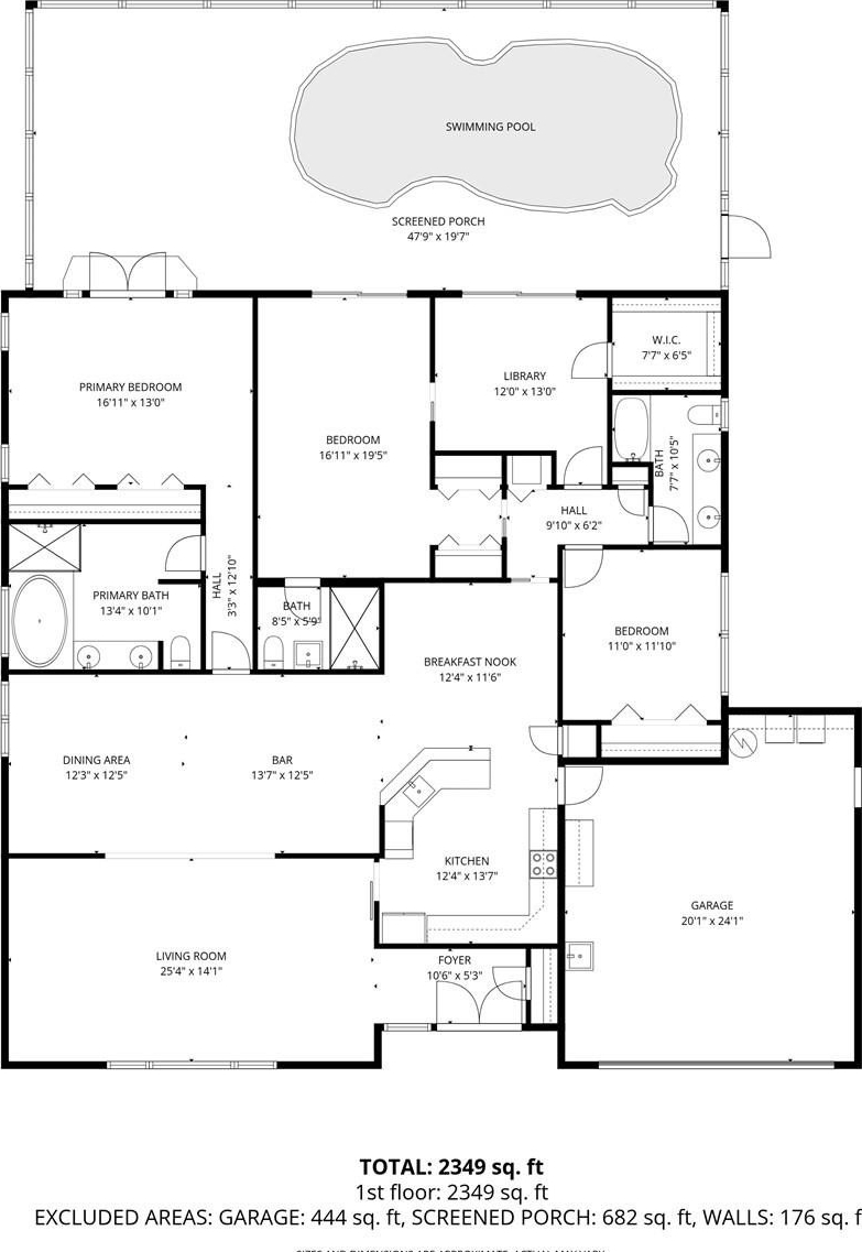 The flexible floor plan includes two bedrooms with ensuite baths and access directly to the pool, while a fourth bedroom is currently configured as a library with a relaxing view and access as well to the pool —perfect for a home office, study, or bonus space. Outdoor living centers around a screened lanai and fiberglass pool, providing a private retreat just steps from the golf course.