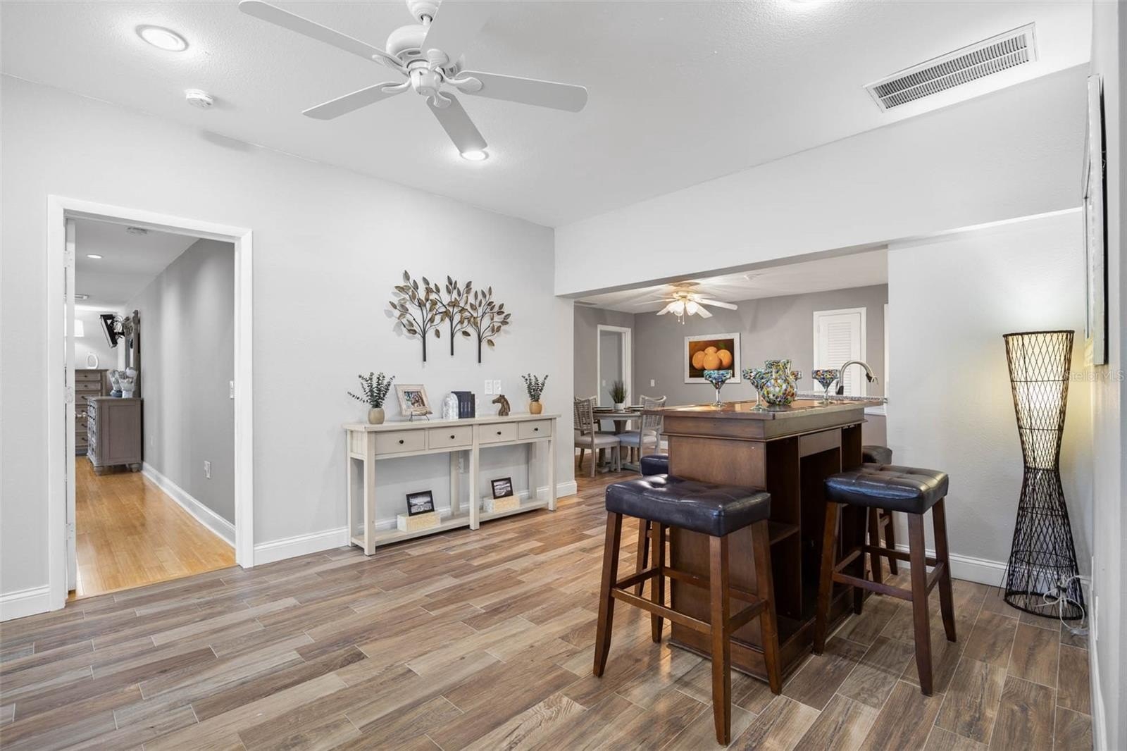 This 3–4 bedroom, 3 bathroom home is designed for entertaining, featuring a generously sized living room with expansive windows, an oversized dining room, and adjoining bar area ideal for hosting gatherings large or small. The updated kitchen anchors the main living spaces and offers both style and functionality for everyday living.