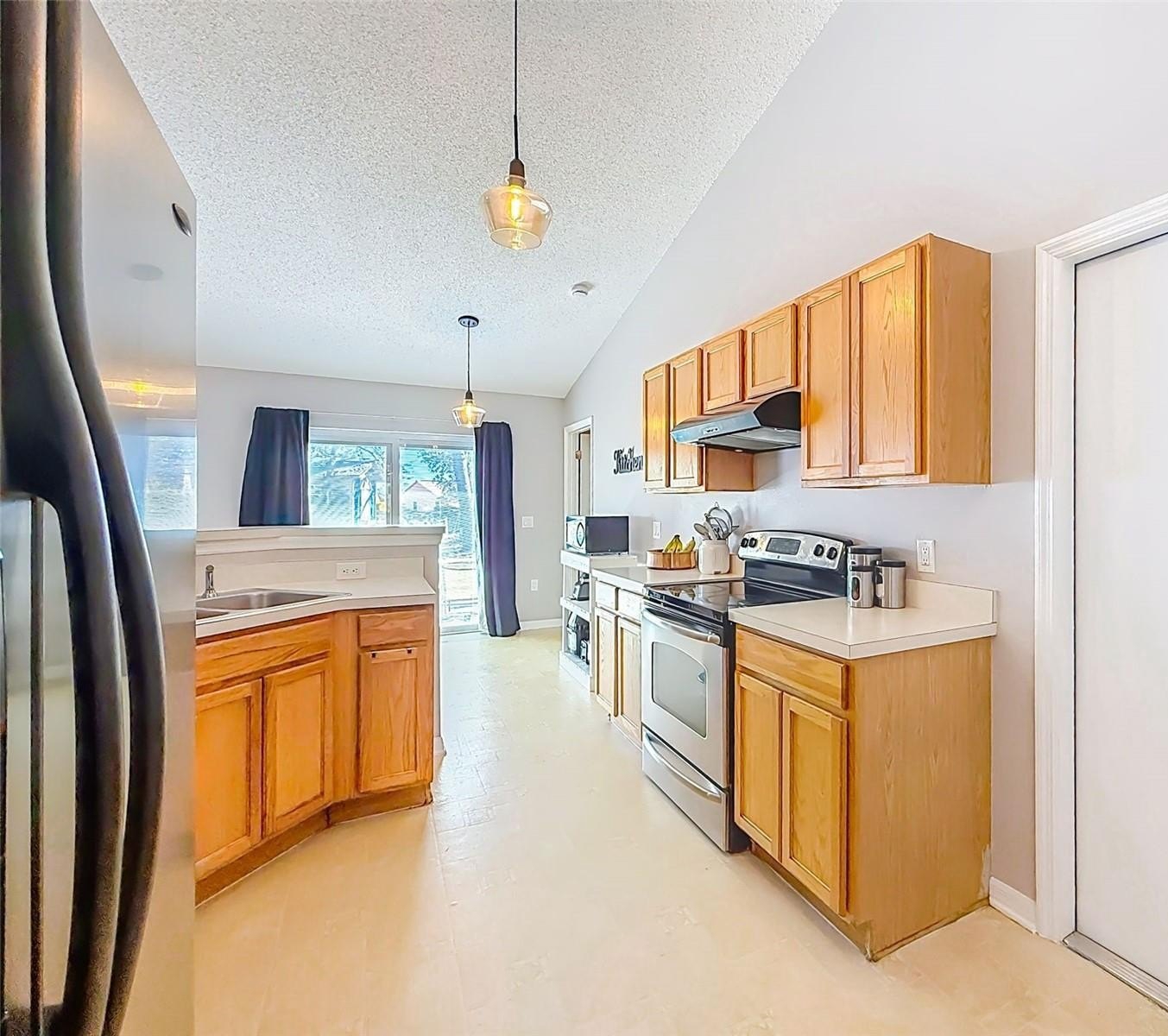 The kitchen features stainless steel appliances, and the home includes upgraded flooring and built-in blinds on the sliding glass door for added comfort and convenience. The garage offers extra storage, perfect for tools, hobbies, or organization.