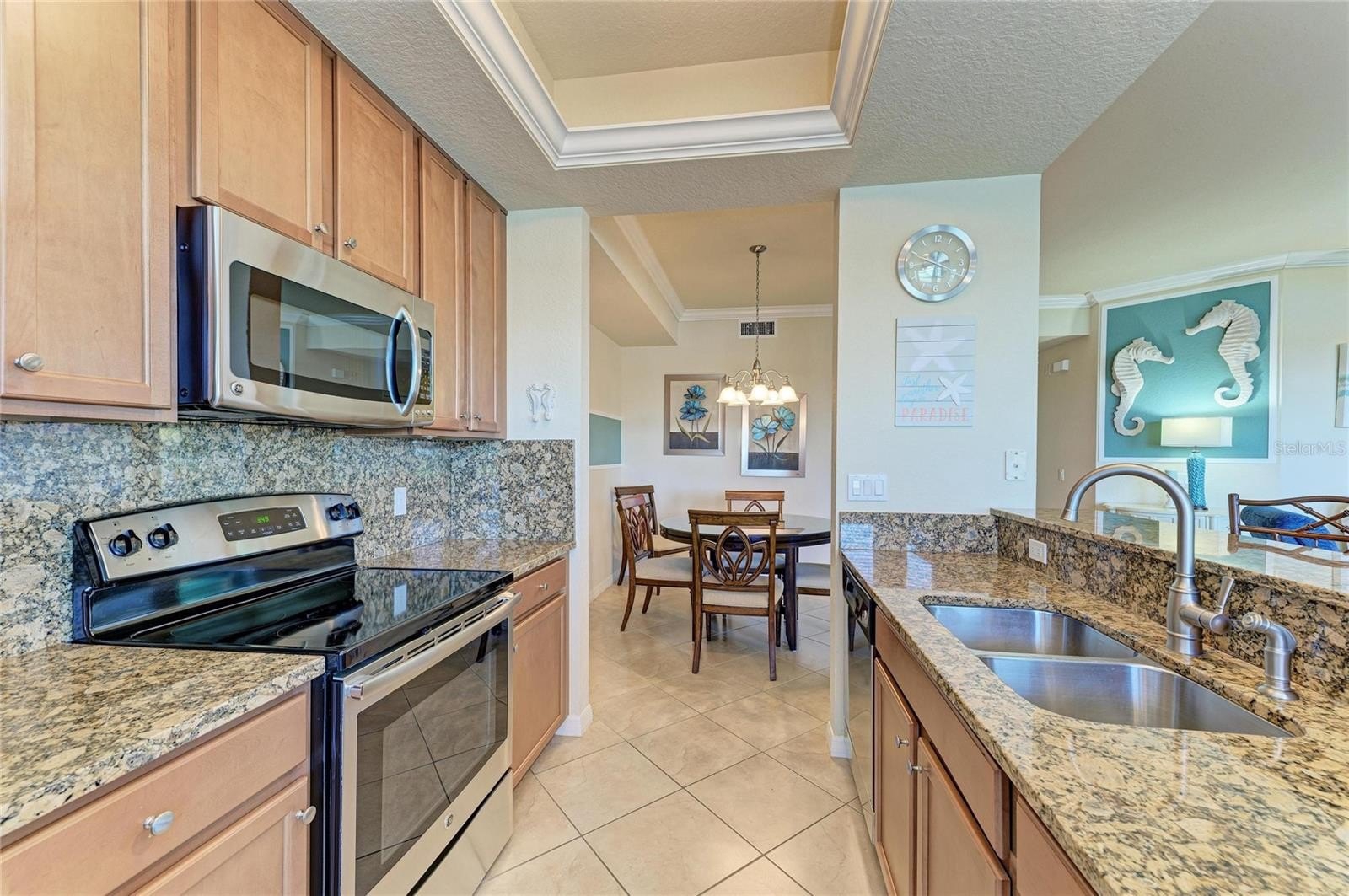 Large windows showcase sweeping fairway and water views overlooking the 8th hole of the Estuary Course, filling the home with natural light. The split floor plan features two spacious bedrooms plus a versatile den, ideal for guests or a home office. High end Elfa shelving system throughout this home. The stylish kitchen offers stainless steel appliances, granite countertops, and plenty of cabinetry, flowing seamlessly into the living and dining areas.