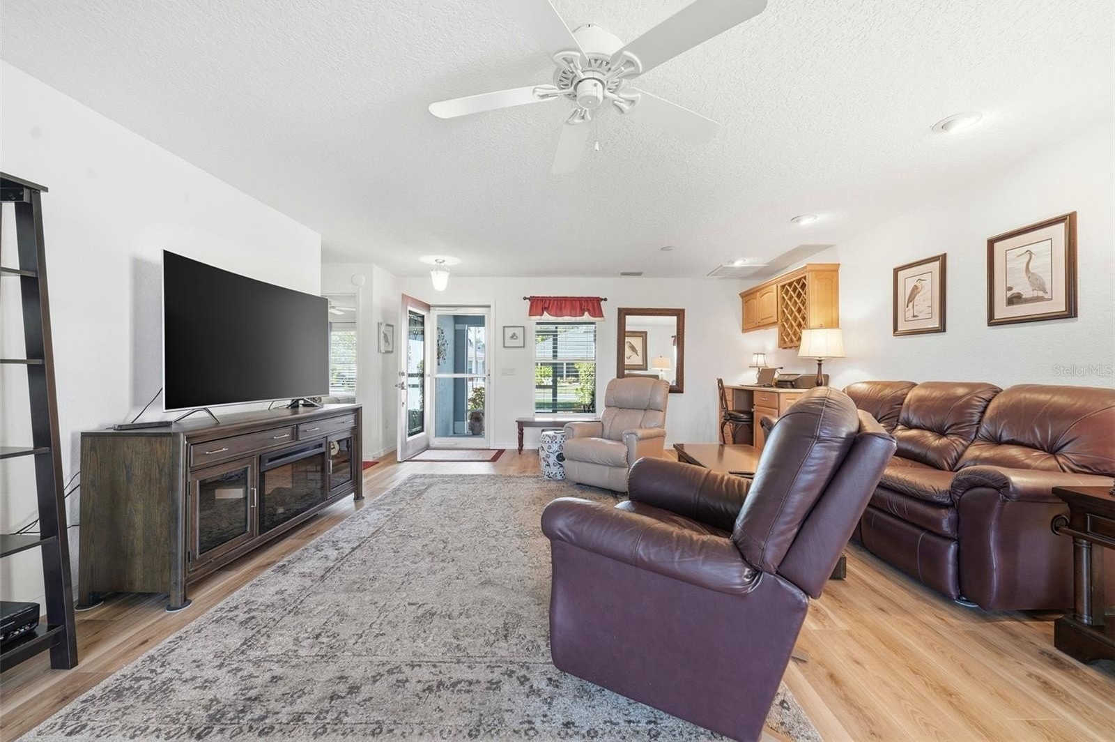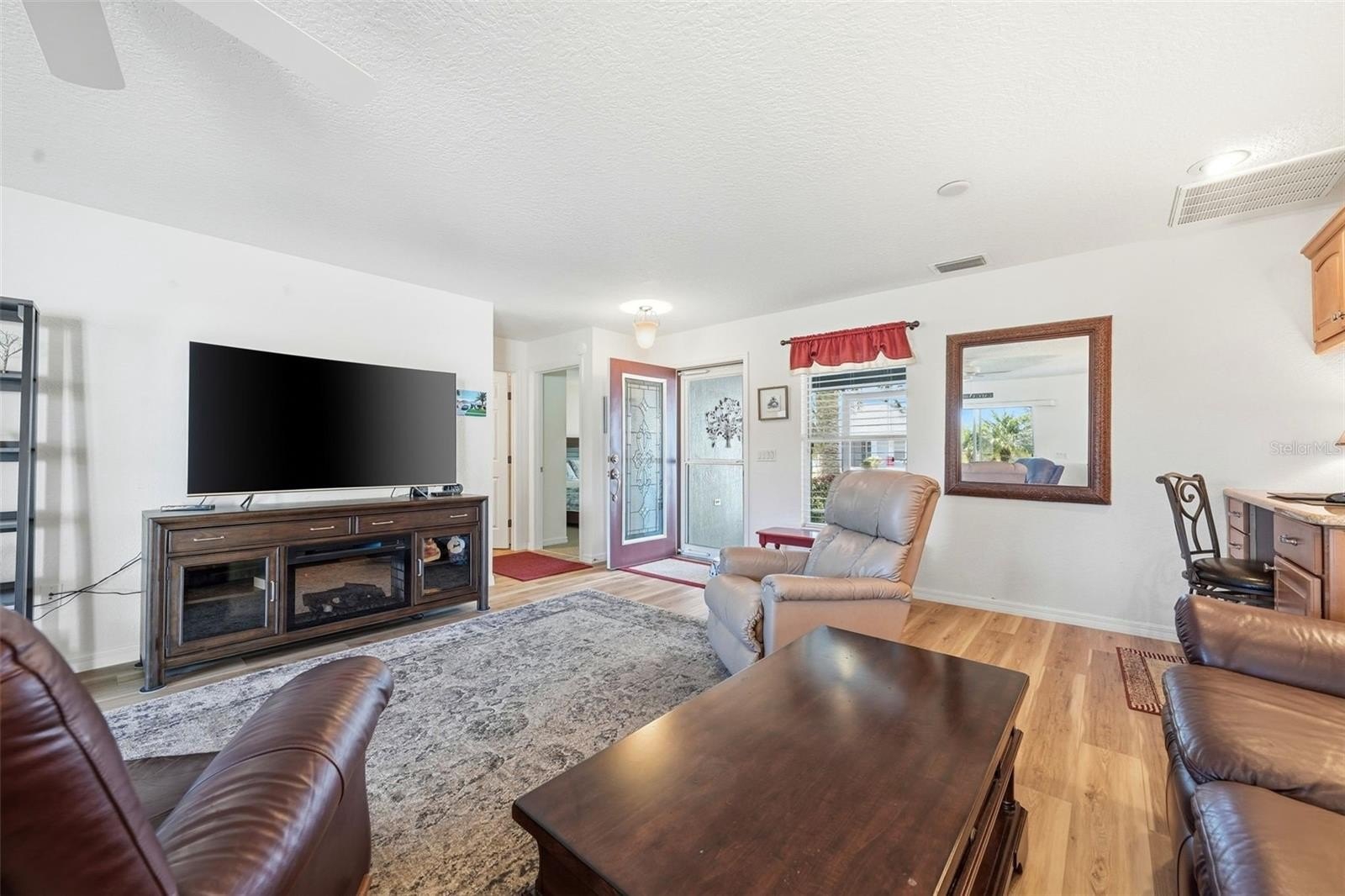 WATER & GOLF COURSE VIEWS! PREMIER 55+ COMMUNITY - Enjoy stunning water and golf course views from this beautiful 2-bedroom, 2-bath home featuring luxury vinyl flooring throughout. The updated roof and A/C add peace of mind, while the spacious kitchen offers ample cabinetry, quartz countertops, and a convenient closet pantry. The master suite includes a large walk-in closet and a tiled walk-in shower. Relax on the inviting front covered porch or the large screened rear porch overlooking gorgeous golf course and pond views. Located in one of Central Florida’s most desirable premier 55+ gated communities, this property offers resort-style amenities including a championship golf course surrounded by a winding river and majestic oaks, a sparkling pool, modern fitness center, tennis courts, and a restaurant and bar. Numerous clubs and social activities make this a vibrant and welcoming community! Conveniently located just 10–15 minutes to the Florida Turnpike, 45 minutes to Disney World and major theme parks, and a short drive to The Villages. Nearby you’ll find an emergency care hospital, dog park, plus plenty of restaurants, grocery stores, and shops. Don’t miss your chance to own this incredible home and experience the Florida lifestyle at its best — schedule your private tour today!