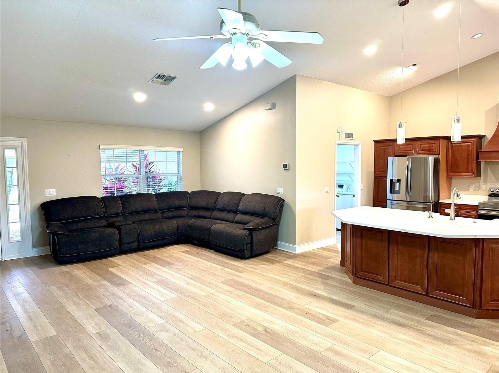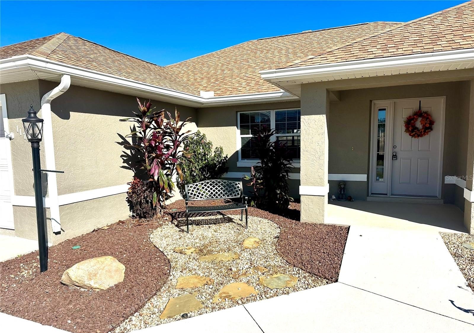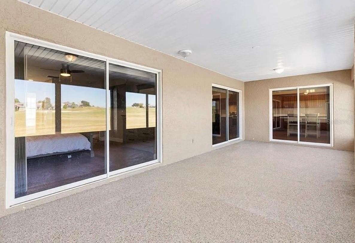 The large lanai is perfect for entertaining with sliders accessing your kitchen/dining area, GREAT ROOM and Primary suite with fantastic GOLF COURSE VIEWS and leading to your 55 X 20 CONCRETE PATIO spanning the entire length of the home....perfect for your outdoor kitchen or hot tub! This lovely home is being sold semi-furnished. Newer Roof 2017, Water Heater 2025. HVAC 2011 and this home includes a 1 year home warranty!