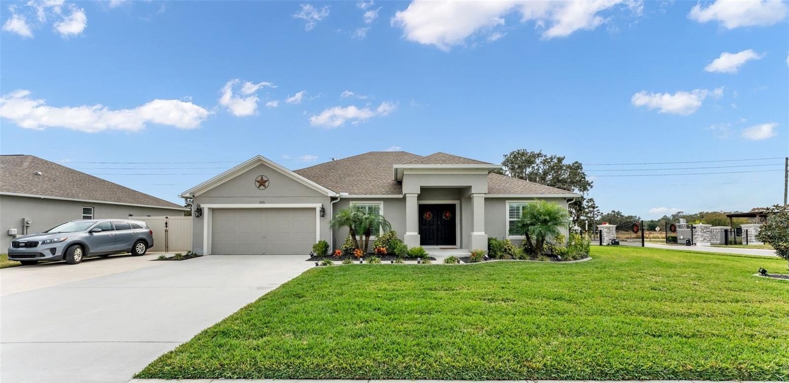Welcome to 1931 Deep Creek Drive, an exceptional residence in a private gated community in North Lakeland, offering approximately $125,000 in high-end upgrades and a true resort-style backyard. A striking double-door entry opens to an elegant, light-filled interior featuring luxury vinyl plank flooring throughout the main living areas and the primary suite. The living room is anchored by a custom electric fireplace feature wall with built-in shelving, creating a sophisticated yet inviting space ideal for entertaining or relaxing in style. The designer kitchen is both functional and beautiful, showcasing granite countertops, upgraded stainless steel appliances, custom tile backsplash, and a fully built-out pantry with added backsplash. The laundry room has been enhanced with additional cabinetry and countertop space, offering convenience without sacrificing design. The primary suite serves as a private retreat with a large walk-in closet and a spa-inspired bathroom featuring a walk-in shower and oversized soaking tub. Step outside to your own luxury poolside escape. The expansive backyard is fully fenced with vinyl fencing and designed for year-round enjoyment, complete with a custom pool featuring a sun deck, paver patio, and screened-in lanai. Thoughtfully placed ambient outdoor lighting creates an elegant nighttime atmosphere, while the outdoor projector with roll-down screen transforms the space into a private open-air theater—perfect for unforgettable evenings under the stars. Additional premium upgrades include plantation shutters, upgraded light fixtures and ceiling fans, gutters, new landscaping with decorative curbing, and ProVista grass. The extended driveway and paver side driveway provide ample space for luxury vehicles, a boat, or recreational toys—an increasingly rare and valuable feature. With low HOA fees, a gated entrance, and a backyard designed to rival a private resort, this home delivers refined Florida living at its best. A rare opportunity for discerning buyers seeking luxury, privacy, and an elevated pool-home lifestyle.