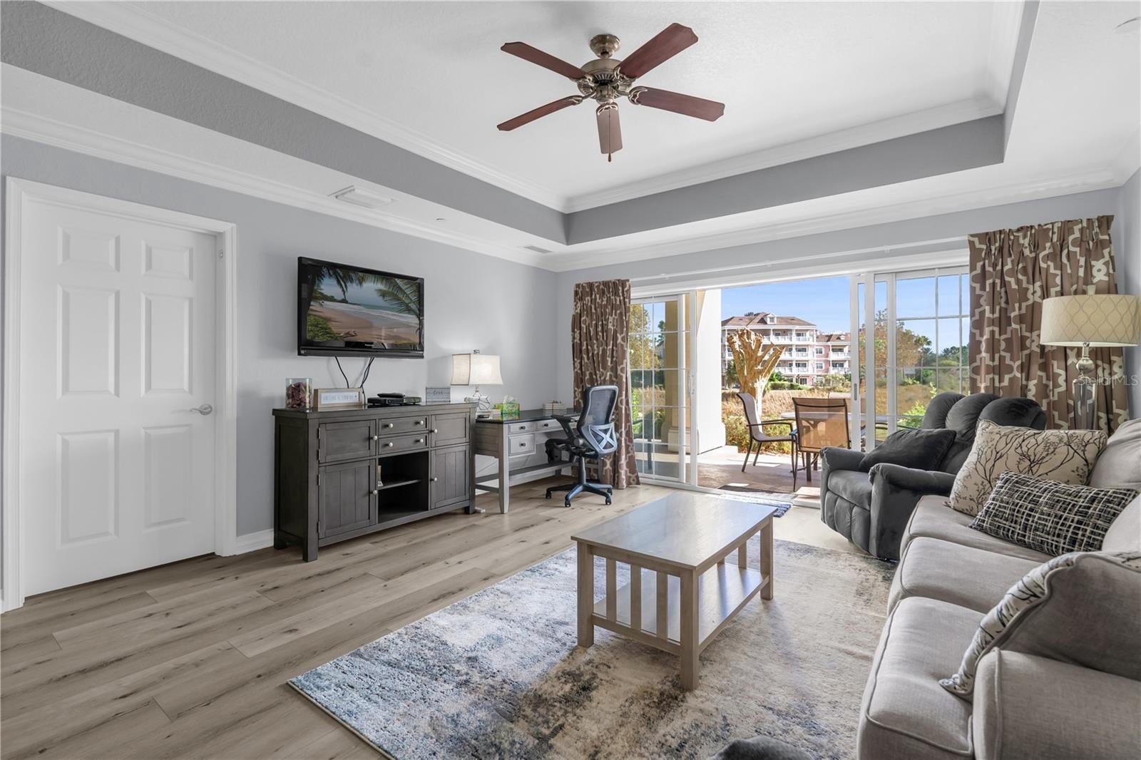 Tastefully updated SOUTHEAST FACING ground floor 3 bedroom 3 full bath condo. Sit back, relax and enjoy panoramic GOLF VIEWS of the 16th fairway of the signature tom watson course from your spacious covered lanai. This AMAZING condo is being offered FULLY FURNISHED! This immaculate unit features crown moulding, luxury vinyl plank flooring throughout the living areas and bedrooms, and tile in all wet areas. The spacious open floor plan is further complemented with modern furnishings throughout. The updated kitchen showcases stainless appliances, hardwood cabinets, granite countertops, and a decorative backsplash, making it perfect for both everyday living as well as entertaining. The primary suite offers dual vanity, a soaking tub, walk-in shower, two walk-in closets, and provides direct access to the lanai. Bedroom two has an ensuite bath with granite countertops, hardwood cabinets and a tub/shower combination. Bedroom three has a bathroom with shared access to the living area. Additional highlights include newer full size stackable washer & dryer. Ideal opportunity for a primary residence, second home or vacation rental property. This condo is walking distance to a SPECTACULAR pool area featuring two pools! One being a kiddie pool with a FANTASTIC splash zone. This villa is located in the heart of Reunion in the Villas North community and is a short walk additionally to the Reunion Waterpark. Reunion Resort is a one of a kind 2300 acre Resort and Golf community that has many amenities including a water park complete with water slides, lazy river, zero entry pools & food and beverage service, 3 award-winning golf courses designed by the legends of golf (Palmer, Watson & Nicklaus), 11 pools throughout the community, putt putt golf, world class tennis courts, pickleball courts, playgrounds, golf cart & bike rentals and several on-site restaurants to include fine dining. Reunion Resort is located just 6 miles to Disney and the parks, and a short drive to the Orlando International Airport. ACTIVE TRANSFERABLE MEMBERSHIP AVAILABLE.