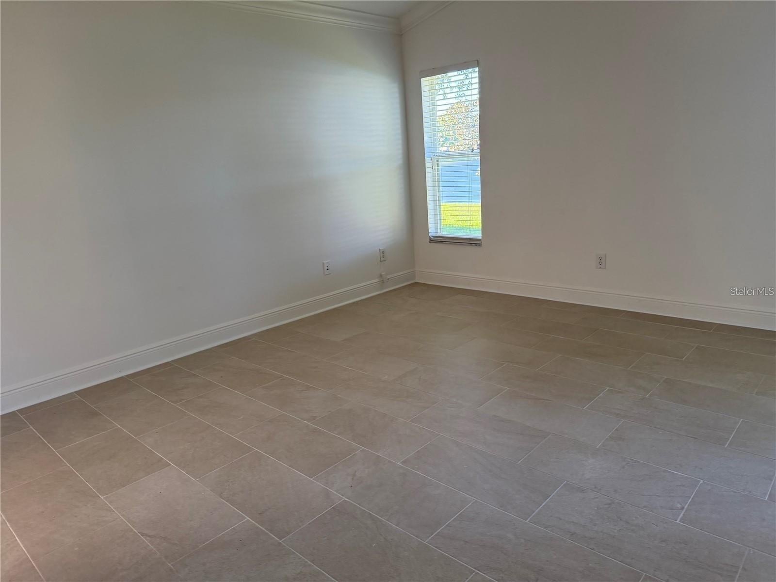 The kitchen is equipped with a tiled backsplash, 42” upper cabinets with crown molding, and an adjacent dinette area. The primary suite includes a walk-in closet, while the primary bathroom offers a garden tub, separate shower, and dual vanities. Additional features include an interior laundry room and scenic pond views.