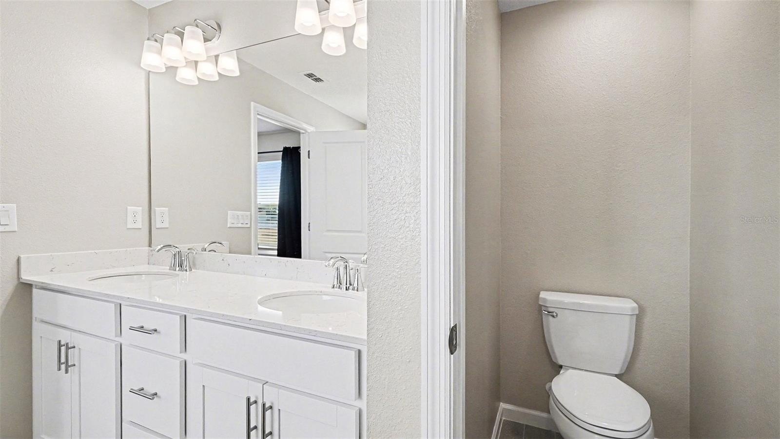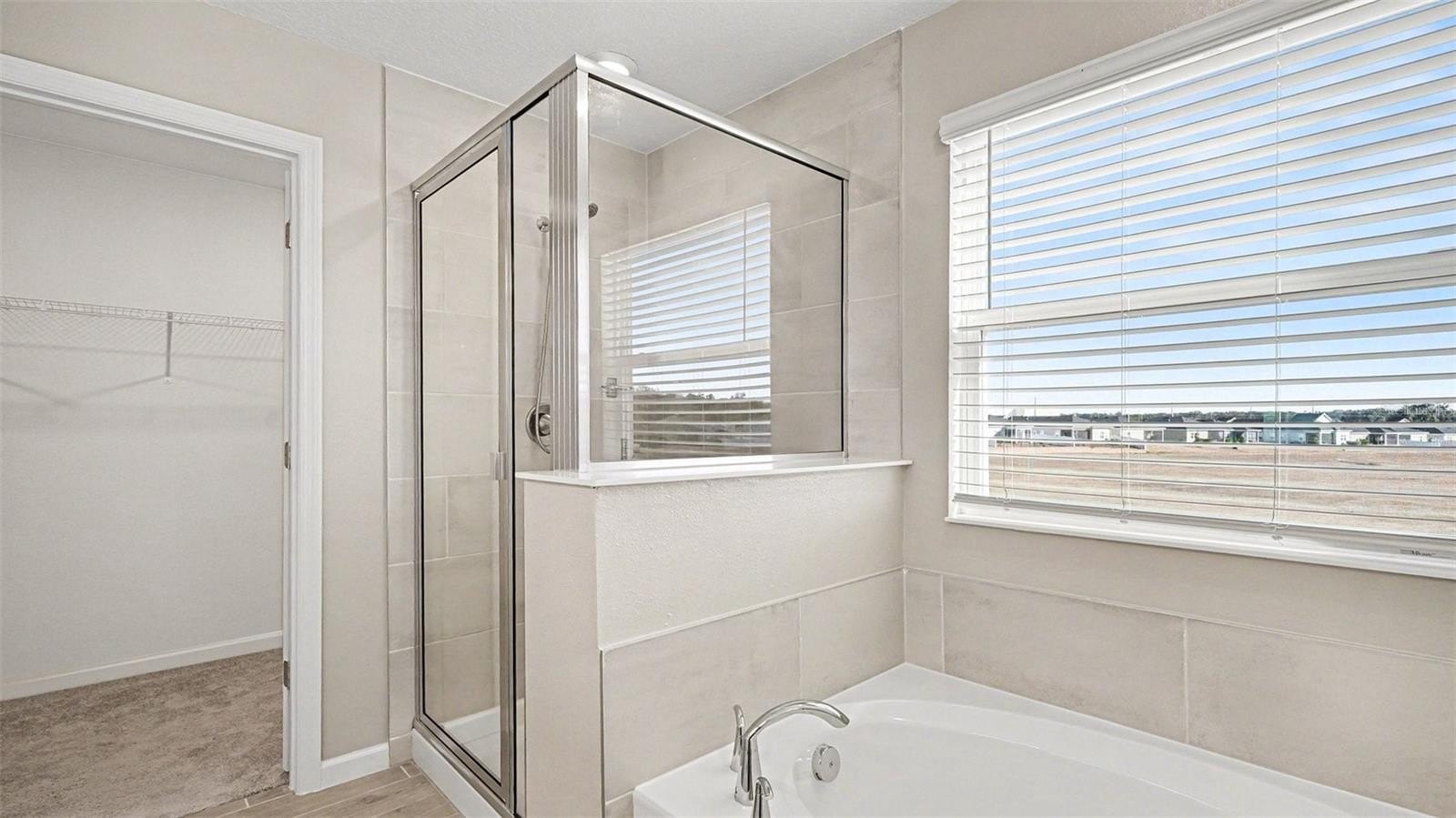 Upstairs, all bedrooms and the laundry room are thoughtfully arranged for convenience. The spacious primary suite serves as a private retreat, complete with a large walk-in closet and a beautifully appointed ensuite bath featuring 42-inch double vanities, a relaxing garden tub, and a tiled shower with glass surround. Additional bedrooms are generously sized and share a second full bath with a tiled tub/shower combo.
