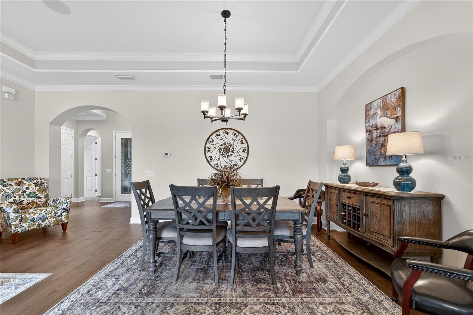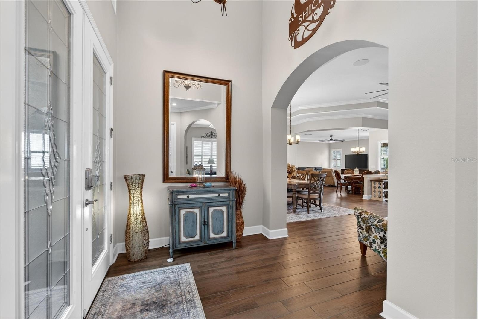 Prepare to be impressed as you enter this beautifully appointed 2,547 sq ft waterfront home, where an open foyer and expansive water views immediately welcome you. Designed with both elegance and comfort in mind, the home features plantation shutters, 10-foot ceilings, crown molding, custom built-ins, and refined architectural details throughout.