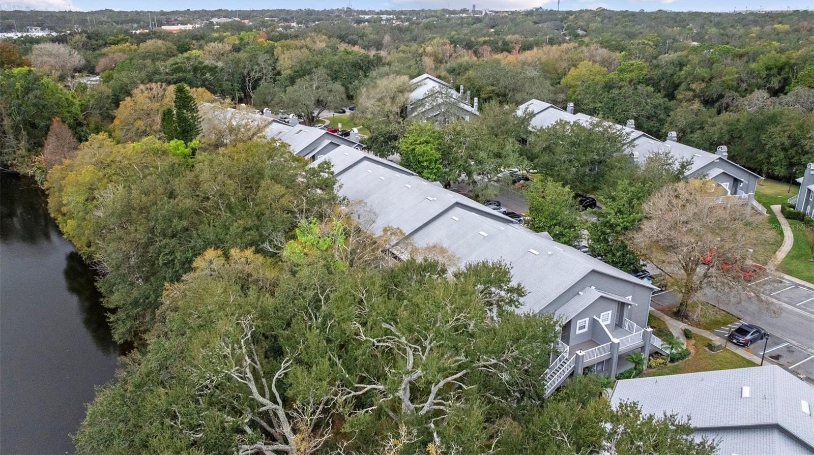 Rare ground-floor 2/2 situated on a premier pond-front lot in Raintree Village. This specific unit features a unique layout where every room, including the living area and both bedroom suites, offers a direct and unobstructed view of the water. The interior includes a dedicated foyer and a split-suite floor plan where each bedroom is equipped with a full bathroom and a walk-in closet. An oversized 17-foot screened porch spans the rear of the unit and contains a private enclosed laundry utility room. This ground-floor location provides immediate access with no stairs. The property is located under 10 minutes from Moffitt Cancer Center, VA Hospital, AdventHealth, and USF. It offers rapid access to both I-75 and I-275 for commuting. The all-inclusive monthly HOA fee covers water, sewer, trash, cable, high-speed internet, the roof, and all exterior maintenance. Residents have access to community amenities including three gated pools, tennis, and racquetball. This property offers maintenance-free living with the most comprehensive waterfront views in the community.