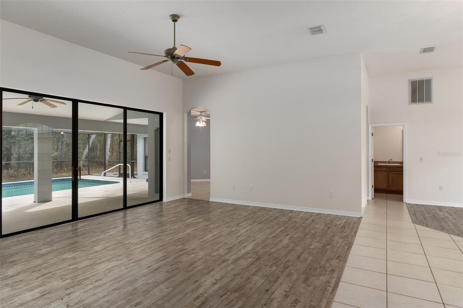 Welcome to a pool home in Oak Village of Sugarmill Woods with 3 bedrooms, an office, 2 bathrooms, formal dining and an eat in kitchen. The greenbelt provides one privacy. Enjoy entertaining and day to day living with this great room with 4 sliders opening to the lanai and pool area. Large primary suite with walk in closet and sliders to the lanai. Kitchen with wood cabinets, breakfast bar and a dinette area. 2 car garage. NEW ROOF 2025! Park your boat in the extra long garage. Tampa via 589 Veterans offers shopping, airport and is accessible just outside via Highway 98. Kayaking, boating, fishing, golfing, motorcycling, thrifting, all are available in the area. Low annual HOA of $155.00. Schedule your showing today!