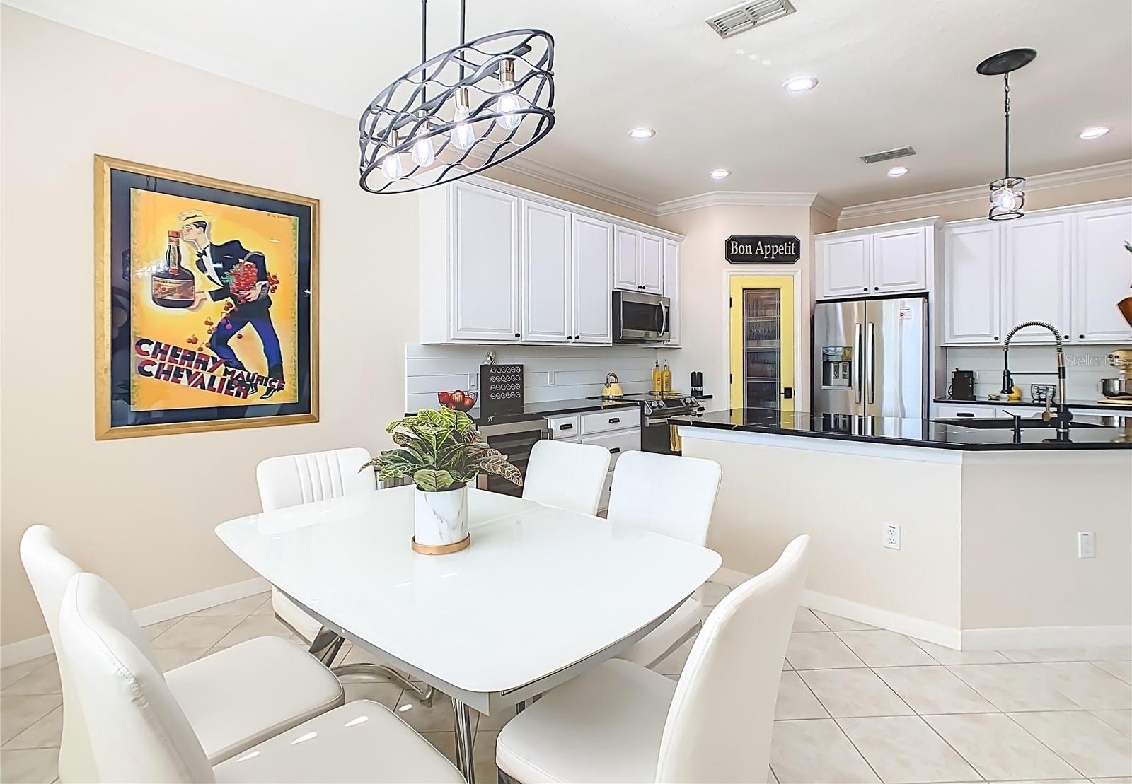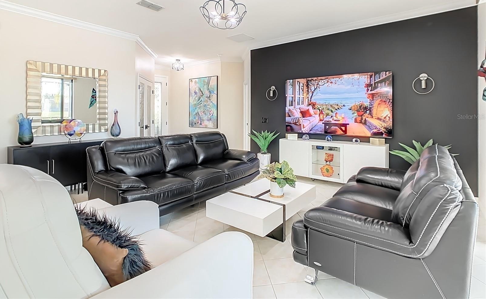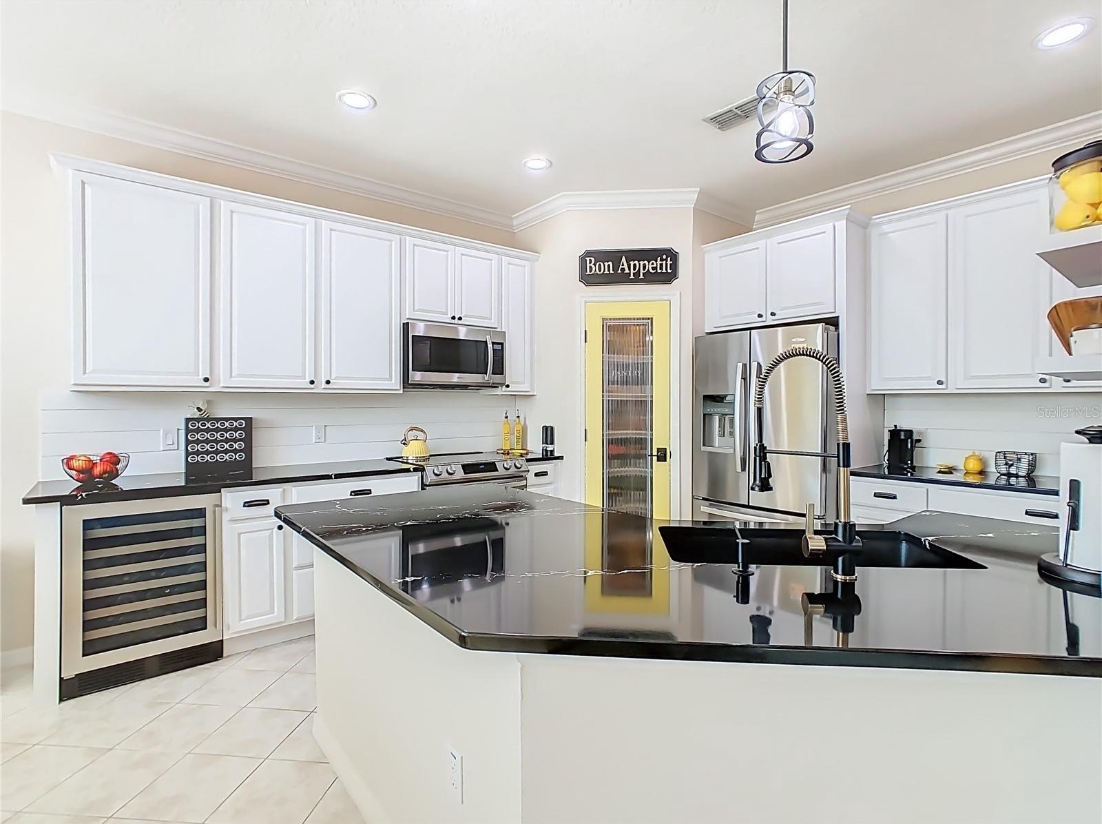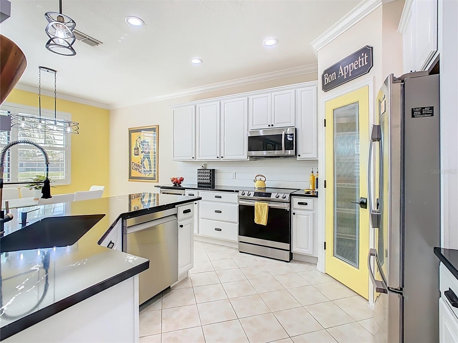 **See the FULL LENGTH VIDEO on Tour Link 1.** Welcome to this incredibly updated TANGIER Model Home located on an oversize, Premium waterfront lot. This home is not only beautiful, but it has been nicely upgraded and impeccably maintained. This model features 8’ Glass Slider to Lania and Front Entry door, a welcoming foyer and a beautiful screened, extended and partially covered lanai with pristine pond views. You can enjoy the view from the lanai, or the outdoor paver patio installed 2022. Fenced yard area with pet door 2023. This solid block home has Architectural Stone Exterior, Front Porch Railing, Shutters, Exterior Painted December 2025, Driveway, Walkway, Front Porch has been Power washed, Sanded, and Sealed 2026, Landscape edging 2023, and is tastefully landscaped 2021. The interior features Plantation Shutters throughout, Crown Molding in main living area, Beautiful Glass French Doors at the Den/office Entry, Stainless Steel Appliances, Pendant Light in the Kitchen, Upgraded Lighting with additional recessed lighting installed in Great room and Kitchen, Cambria Quartz kitchen counters 2022, Single handle faucet w/Soap dispenser, Cabinets painted, Microwave, Wine Refrigerator, Range, Dishwasher new in 2021. Ceramic Tile laid on the diagonal throughout main areas, ceiling Fans in den, 2nd bedroom and Lanai, Recently Painted Interiors. The split bedroom floorplan is open, modern and welcoming with peaceful water views from almost every room in the residence. The Primary suite is one entire wing of this home allowing privacy for the owners when guests are in residence. The kitchen is large and open to the generous gathering room. Installation of the HVAC 2022, Hot Water Heater 2024, Whole house surge protector 2021, Washer/Dryer 2021, Bedroom Carpets 2021, Custom Primary Closet 2021, Whole house Water Softener/Filter 2023. Garage has Pull down Attic Stairs that is Partially floored for extra Storage, Shelving, Golf Cart Outlet, and Epoxy flooring. This home has Lots of closet space, tons of charm and upgrades and ready for a new owner. FURNITURE CAN BE PURCHASED OUTSIDE OF CONTRACT. WALL ART IS NOT FOR SALE. ***Solivita is an active adult 55+ community located in Kissimmee, Florida. It is approximately 50 minutes from Disney World & the Orlando International Airport. Solivita has a total of 5,470 homes. Enjoy your active years in this piece of paradise. Solivita's amenities include: - a manicured SOFTBALL diamond & field - 36 holes of CHAMPIONSHIP GOLF that can be played by joining the Stonegate Golf Club or paying as you go - 2 STATE of the Art AMENITY centers with updated exercise equipment, yoga studio & meeting rooms - 3 restaurants - 14 HEATED POOLS - 17 PICKLEBALL courts - 9 TENNIS courts - 4 BOCCE BALL courts - 4 SHUFFLEBOARD courts - 3 HORSESHOE pits - a BILLIARDS room - miles of bike paths - 2 DOG PARKS (Small & Large Dogs) - Corn Hole - Tot Lot PLAYGROUND - COMMUNITY GARDEN - over 250 resident clubs. The HOA: - maintains the LANDSCAPING & IRRIGATION systems in the common areas as well as at individual homesites - maintains the roads throughout the community - PROVIDES SECURITY with gate guards and mobile patrols including the Polk County Sheriff - allows AUTOMATED GATE ACCESS for residents via license plate readers - provides residents with Fiber Optic Internet & TV service.***Poinciana Lakes Plaza is a MAJOR NEW SHOPPING CENTER directly across from the Solivita Main Gate.