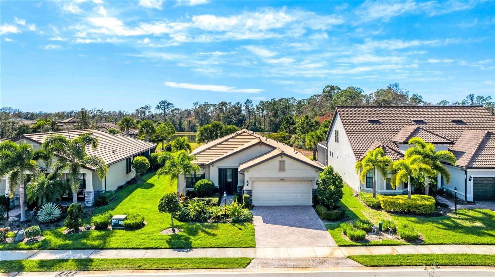 Welcome home! Even the most discerning buyer will appreciate every detail in this stunning oasis where pride of ownership is felt throughout. Del Webb, known as the premiere luxury lifestyle community, sets the tone for the life you can live. This home is a true extension of that life. From the private nature views enjoyed throughout the home to the engineered hardwood flooring, no detail was left out in choosing the lot, location, and details of the home. Beautiful pond & sunsets views can be enjoyed from your extended encage brick paver lanai with added privacy wall and retractable sunscreens. There is a lovely water feature & illuminated stained glass wall feature. Additionally, it is plumbed for an outdoor kitchen and has a gas line for all your grilling needs. Large Pocket sliders create a seamless transition from the inside to outside living. Like creating things or tinkering around? The oversized epoxy-floor garage has more than enough space for 2 cars in addition to your 10x13 work area. Stay comfortable year-round no matter the project in your LG A/C temperature-controlled garage/workspace. The open floor plan is perfect for all of your entertaining needs. The gourmet Kitchen is both sophisticated and functional. The high-end wood shaker cabinetry with soft-close doors and pull-out shelves offer both convenience and maximize your storage needs. Beautiful pendant lights hang over your large island with breakfast bar, a spacious place for your friends and family to gather. Endless granite counters, stainless steel appliances and a large food pantry lend to all the convenience desired. The large laundry room has an abundance of solid wood cabinets offering great storage. The lowers feature a large counter & laundry sink as well for added convenience. Your large owner's suite is a true oasis with those same beautiful views experienced on your back lanai. The tray ceiling lends to its’ elevated charm. Your impressive ensuite bathroom features an oversized dual sink granite top wood vanity with added storage, beautiful glass enclosed shower, a private water closet & generous walk-in closet. The split floor plan offers a separate space for your guests to relax and unwind in privacy. The Office at the front of the home is a great multi-use space, sure to meet your specific needs. A clever drop zone greets you as you enter the home from the garage, an added convenience. The tasteful, neutral pallet of this elegant home is versatile no matter your design preferences. Casablanca fans, known for their quiet motors, have been added throughout the home and are just one of many elevated touches you’ll enjoy. Live your dream vacation day after day from your home and just beyond. Del Webb Lakewood ranch is a lifestyle, a destination, an experience, like no other. No waiting on amenities. No construction hassles & delays. Enjoy an onsite lifestyle director, Restaurant/bar, clubhouse, fitness and aerobic center, Stunning community Kitchen & dining room, meeting rooms, billiard room, Tennis, Pickel ball, shuffleboard, walking paths, outdoor living/relaxation spaces, fire pits, dog park & long dock with covered area all with stunning lake views. The zero-entry heated pool, spa and surrounding area put most resorts to shame with elevated luxury & a true island oasis feel. This home and community are something you have to experience to truly understand how special they are. Schedule your private tour, fall in love and make it yours today!