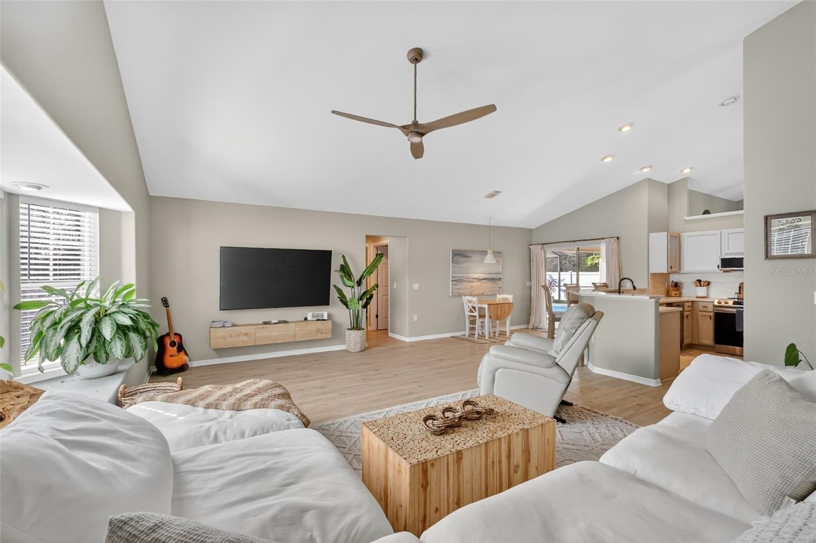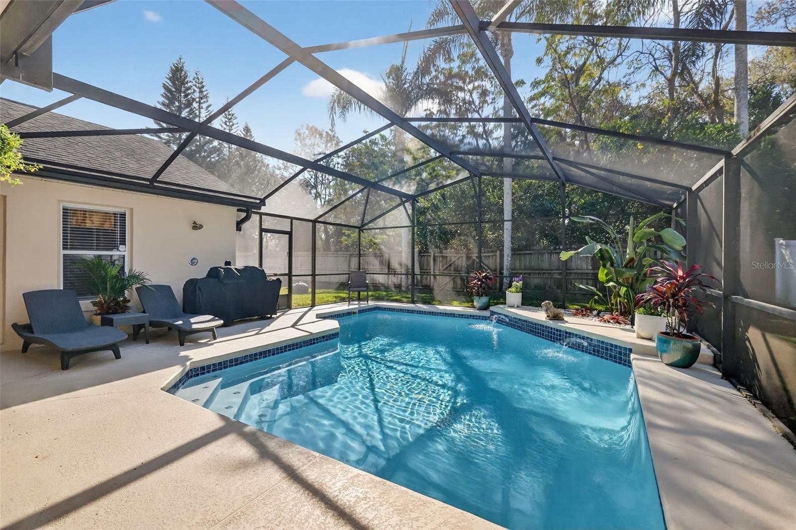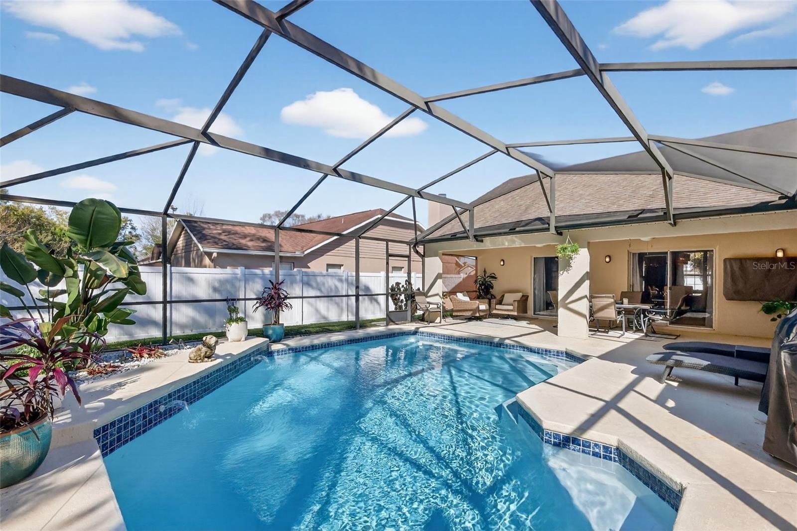 Welcome home to this meticulously-maintained, freshly-updated POOL home in the highly sought-after Shoal Creek neighborhood! Offering NEW luxury vinyl flooring throughout the home (no carpet anywhere!), NEW water heater, NEW lighting fixtures, NEW quartz countertops, NEW backsplash in the kitchen to highlight the freshly-painted cabinets, and vaulted ceilings, this home has everything a new owner could hope for. The thoughtful and versatile floor plan includes a separate formal living room and a spacious family room with a gorgeous bay window and a sitting nook. There is plenty of space to entertain indoors with the formal dining room adjacent to the ample kitchen, which offers lots of additional bar seating and space for an additional table in the dinette. The split floor plan allows for privacy in the primary suite, which comes with high ceilings, dual walk-in closets, and an updated bathroom. The home brings in lots of natural light and has four different ways to access the stunning backyard oasis, which offeres lots of additional space to comfortably entertain outside! The sparkling pool and huge surrounding deck are fully-screened and the pool heater is less than 2 years old! The fully-fenced backyard overlooks a conservation area with mature trees (no rear neighbors!). This home is centrally-located, less than 10 minutes from a major hospital, less than 20 minutes from Universal Studios, less than 25 minutes from Downtown Orlando, and less than 30 minutes from the Orlando International Airport. Schedule your showing today to make this gem your new home!