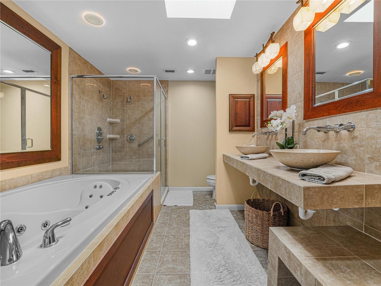 Upstairs, the **expansive primary bedroom** showcases wall-to-wall sliding doors with shutters that open onto a private upper deck overlooking Scott Lake—a serene retreat to begin or end your day. The newly remodeled en-suite includes double sinks, jacuzzi soaking tub and walk in shower. The organized walk-in closet includes built-ins, utilizing the space clutter free.\ The additional two bedrooms are generously sized and share a well-appointed second bathroom.