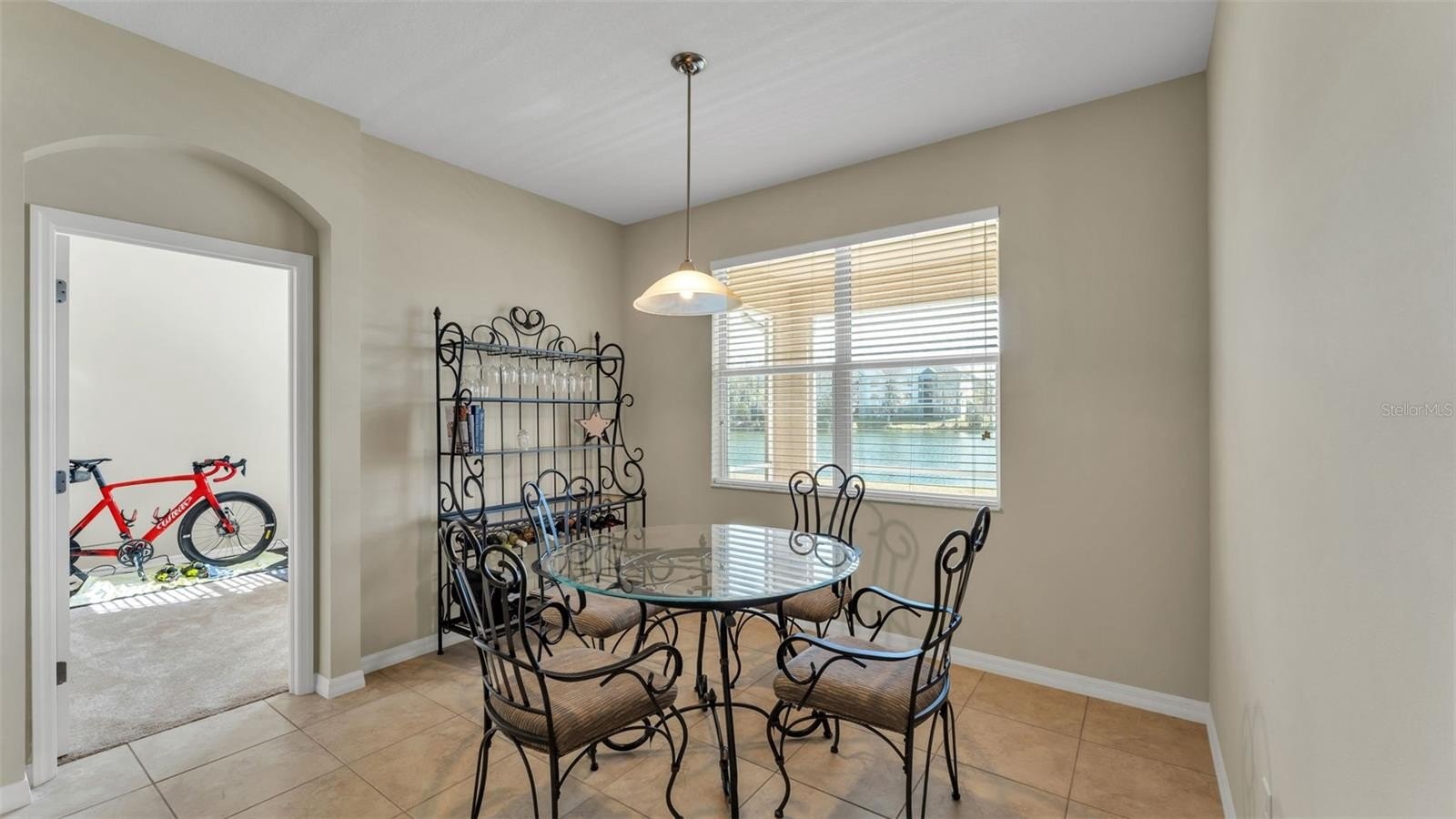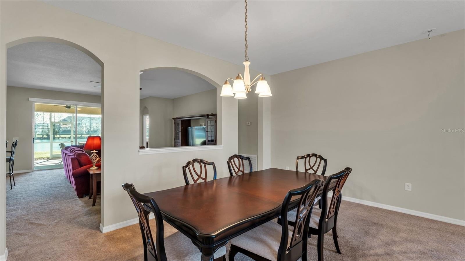 Step outside to your fully screened lanai overlooking a peaceful lake, creating the perfect spot to relax and unwind.
