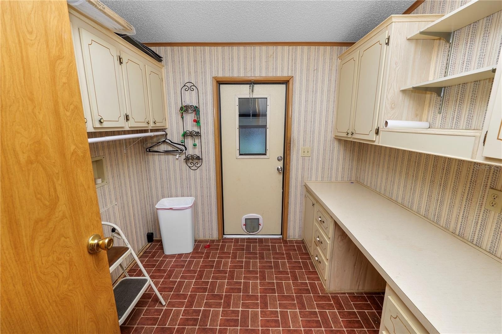 Additional space includes an enclosed Florida room with windows and a window A/C unit, plus an enclosed rear porch off the kitchen and carport with access to the attached laundry room.