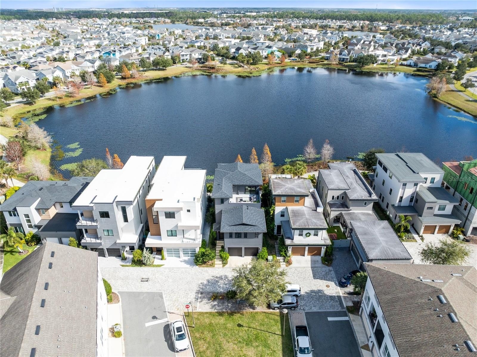 The third floor is a true showpiece, featuring a spacious media and entertainment room that opens to both a rooftop balcony and an additional terrace. This level is perfect for hosting, movie nights, or simply relaxing while taking in sweeping lake views and unforgettable sunsets. The elevated outdoor terrace provide a private retreat rarely found in modern homes, offering multiple areas to lounge, dine, grill, unwind, watch the game or look at the stars at night.