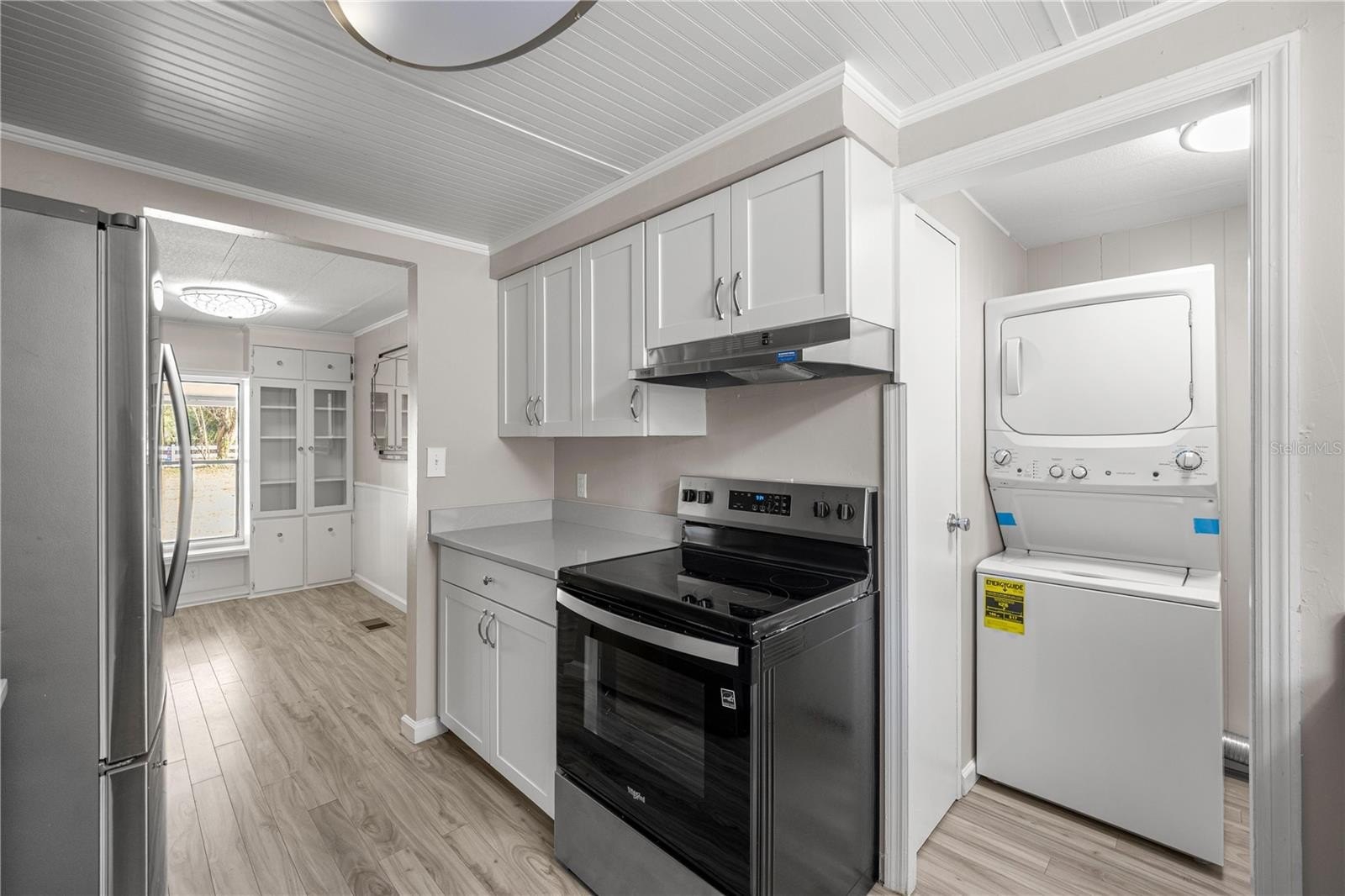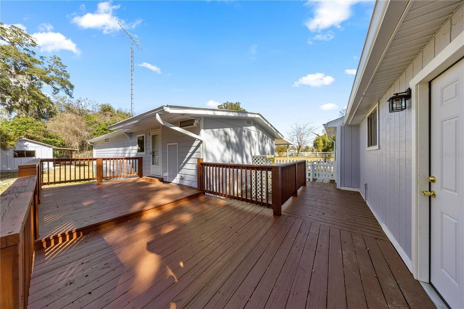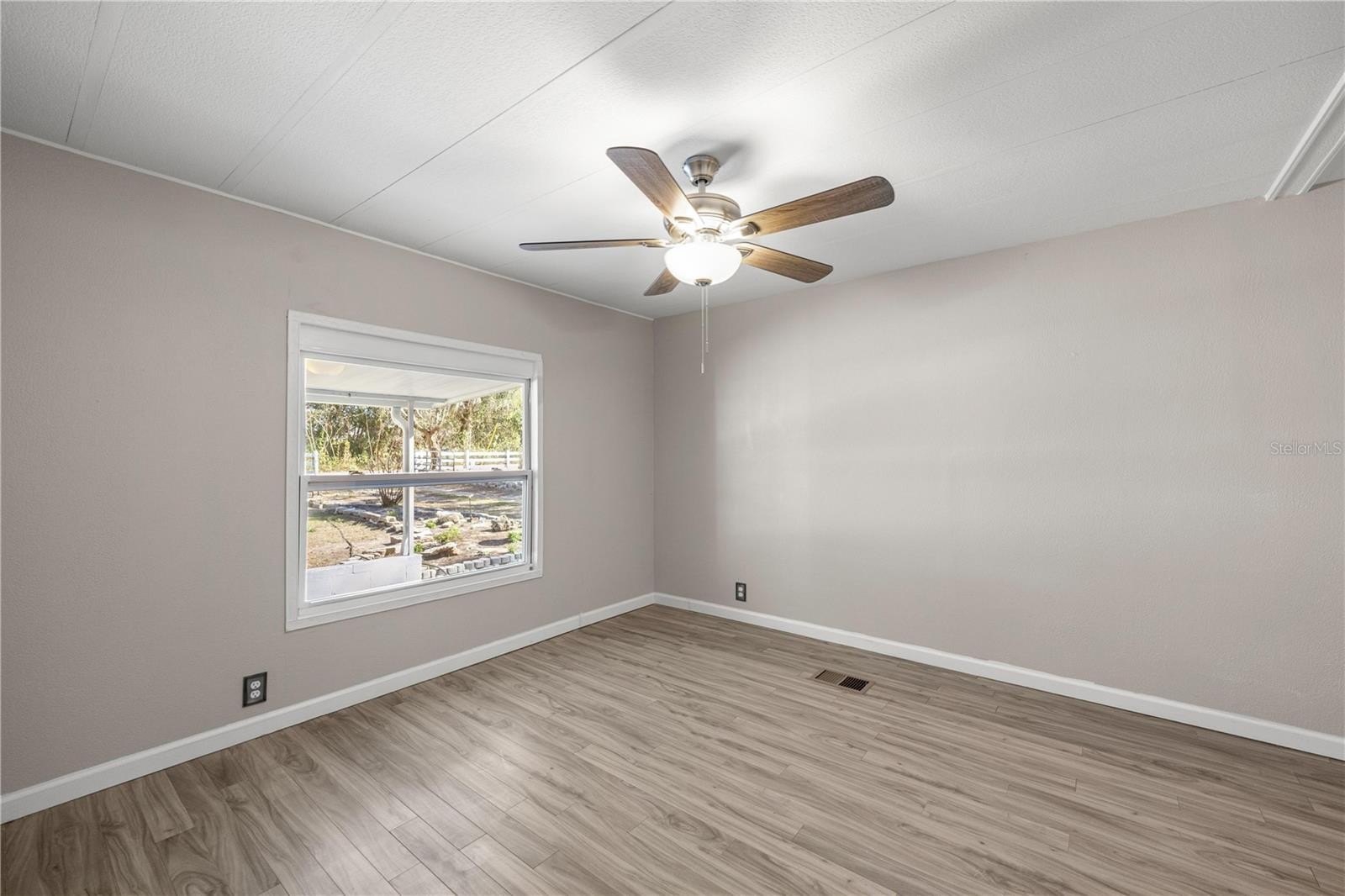 One or more photo(s) has been virtually staged. Welcome To This Renovated 3 Bed/2 Bath Double Wide Manufactured Home w/Huge Detached Garage, situated on nearly a half acre. NO Lot Rent and NO HOA! Located just 7 minutes from The Villages and a quick 10-minute drive to Ocala, this property offers not only a convenient location but also the flexibility of R-4 Mixed Residential zoning, allowing versatile usage including a two-family dwelling. Split floor plan, volume ceiling, luxury vinyl flooring, inside laundry, fenced backyard, and metal roof. The master suite includes a full bath and spacious walk-in closet. The 2nd bedroom is oversized with dual closets and the potential to be divided into an additional room. The 3rd bedroom features a private entrance, making it ideal for guests, in-laws, or a home office. Galley kitchen boasts new custom cabinets, Quartz countertops and stainless steel appliances. Outdoor features include; a front and rear porch, 12x12 cabin shed, 36x24 detached garage with washer & dryer hookup and the option to transform the space into a workshop or living quarters if desired. Upgrades include; HVAC 2017, LVT Flooring 2023, Kitchen/Bath 2025, Electrical/Plumbing 2025, Rain Gutters 2025, and Well Pump 2025. Freshly painted interior and exterior!