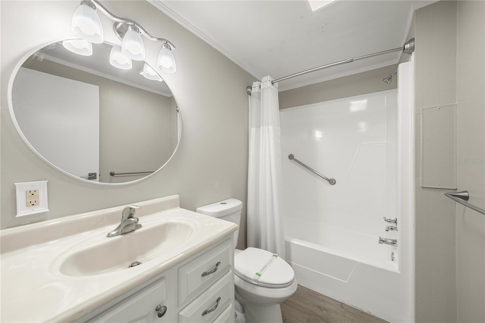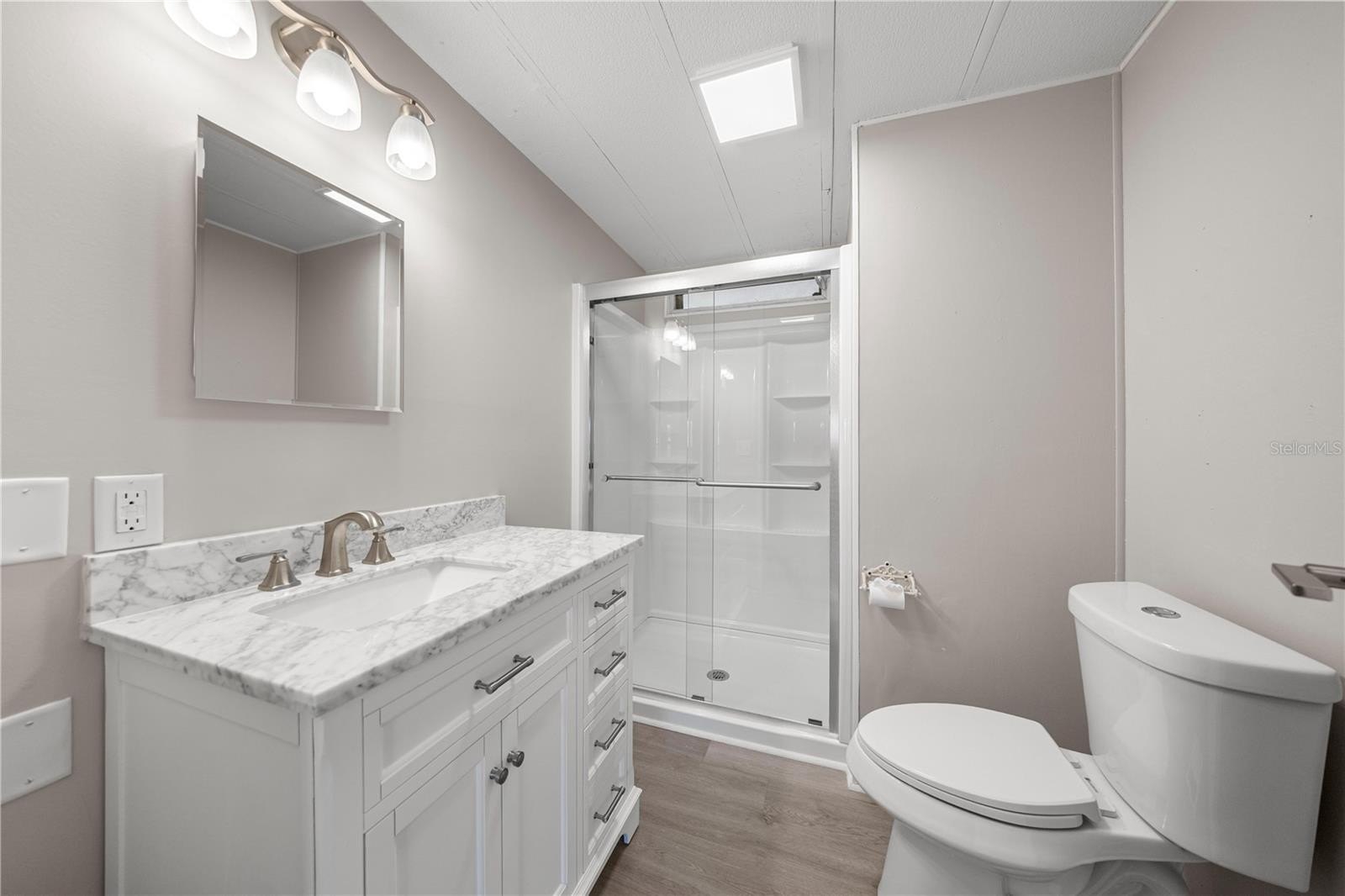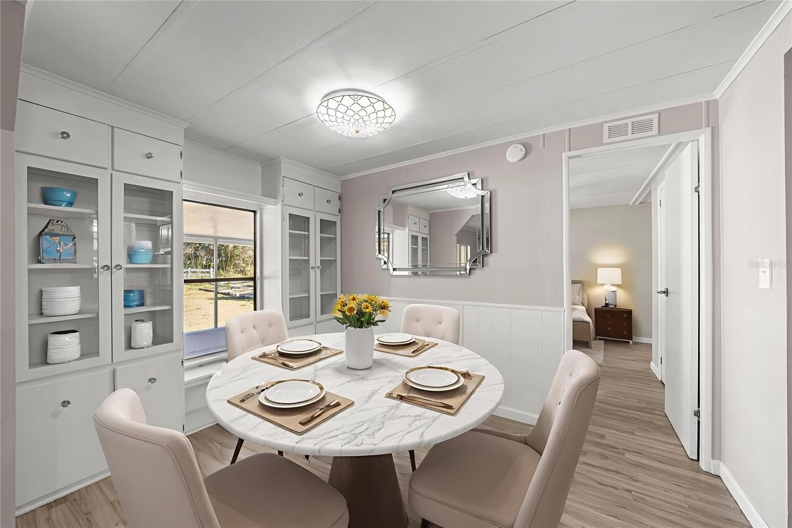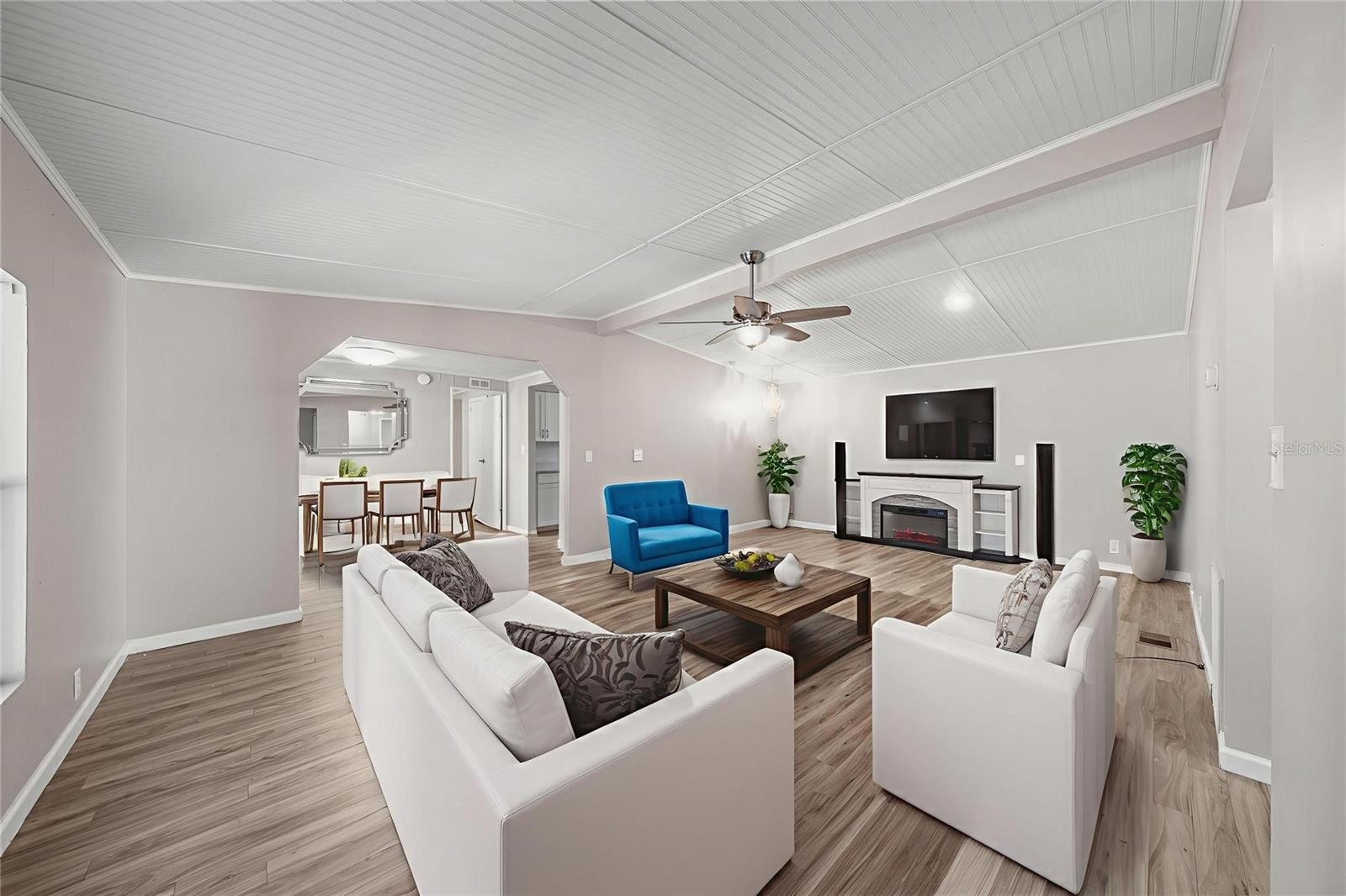 One or more photo(s) has been virtually staged. Welcome To This Renovated 3 Bed/2 Bath Double Wide Manufactured Home w/Huge Detached Garage, situated on nearly a half acre. NO Lot Rent and NO HOA! Located just 7 minutes from The Villages and a quick 10-minute drive to Ocala, this property offers not only a convenient location but also the flexibility of R-4 Mixed Residential zoning, allowing versatile usage including a two-family dwelling. Split floor plan, volume ceiling, luxury vinyl flooring, inside laundry, fenced backyard, and metal roof. The master suite includes a full bath and spacious walk-in closet. The 2nd bedroom is oversized with dual closets and the potential to be divided into an additional room. The 3rd bedroom features a private entrance, making it ideal for guests, in-laws, or a home office. Galley kitchen boasts new custom cabinets, Quartz countertops and stainless steel appliances. Outdoor features include; a front and rear porch, 12x12 cabin shed, 36x24 detached garage with washer & dryer hookup and the option to transform the space into a workshop or living quarters if desired. Upgrades include; HVAC 2017, LVT Flooring 2023, Kitchen/Bath 2025, Electrical/Plumbing 2025, Rain Gutters 2025, and Well Pump 2025. Freshly painted interior and exterior!