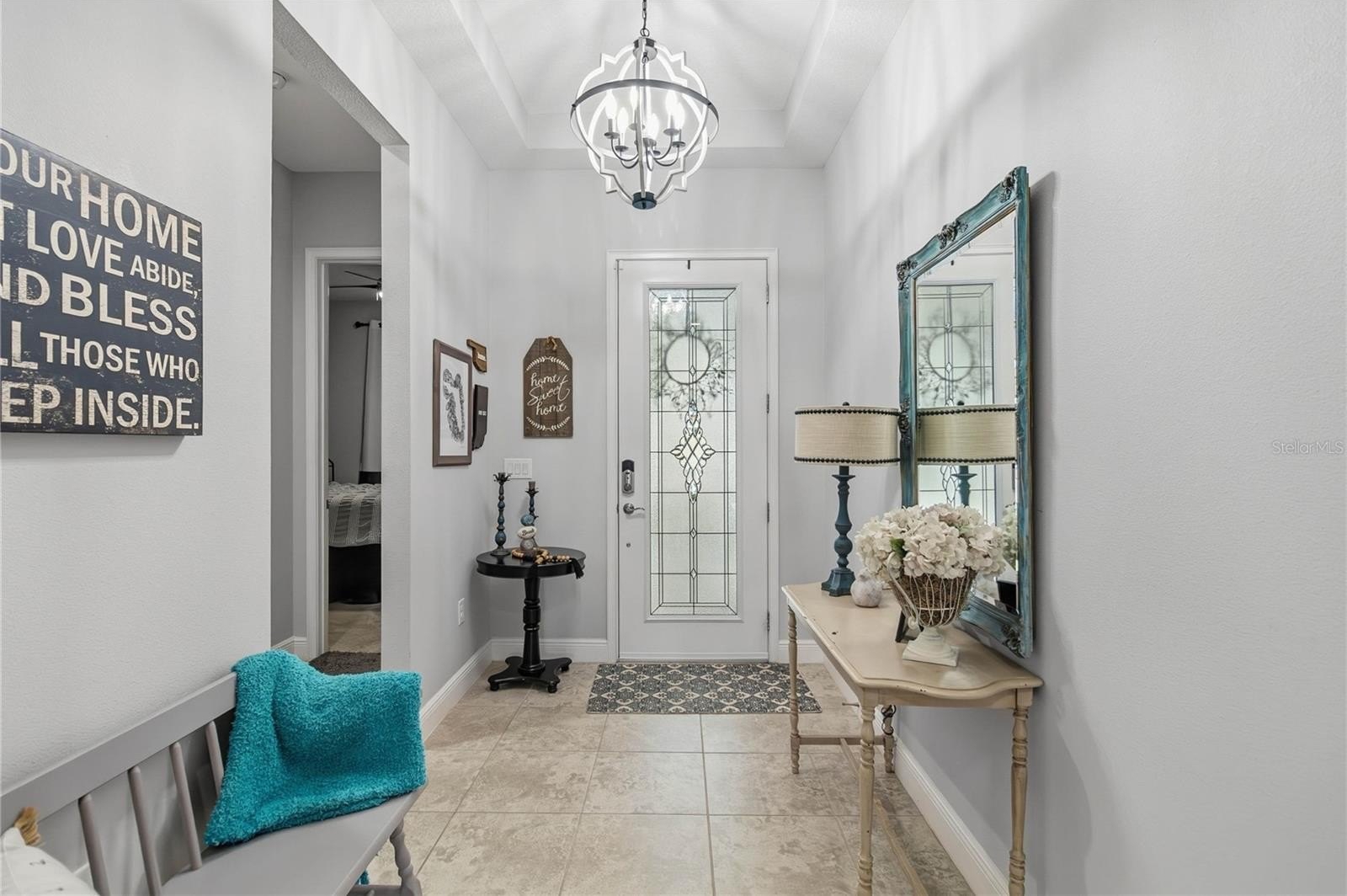 Move in ready! Professionally Painted Exterior and Interior. Stunning front glass door as you come into this 3 bedroom, 2 full baths. 2 car garage with covered outdoor living area. Captiva floor plan located in the Well sought after Del Webb Twin lakes 55+ active community. All new lighting for a bright look. and hardware. Tile flooring. Spacious living with 10-foot ceilings, 8' doors and plenty of storage cabinets including an entry drop zone. The gourmet kitchen has custom quartz countertops, custom backslash, New dishwasher, pendant lights and 42"crown molded cabinets. Living room & dining room with the Sliding glass doors open all the way, with electrical blinds leads to the large lanai that is screened in to enjoy family gatherings and your morning coffee. Primary Bedroom features tray ceiling with ceiling fan and light. Primary bathroom suite features double vanity with quartz countertop, frameless glass shower doors, built-in shower bench and custom Tiling. Walkin closet in the primary bedroom features lots of added shelving. Garage has epoxy painted floor and upper storage shelving. Property comes with tankless water heater and gutters already installed. Sellers added the plumbing access panel on the side of the house to flush the hot water heater. Landscaping includes palm trees and privacy hedges in both front and back of the home. HOA maintains landscaping. The Del Webb Community has incredible amenities that can be viewed with a visit to this home. Schedule YOUR private showing soon!! **Full home walk-through 3-D video and Video available on YouTube." Amenities include a Resort style pool and Lap Pool, and 3rd pool, 20,000 square foot Clubhouse, State of the art Fitness Center, Tennis Courts, Pickle Ball Court, Pontoon Boat available for fishing and/or evening boat rides on Live Oak Lake! The 55+ community has many active and socializing activities to keep you very busy!! All of this in a GREAT gated community located in Central Florida close to Lake Nona Medical City, Orlando International Airport, Theme Parks, and Brevard Beaches nearby! Do not delay making your appointment to view this home today!