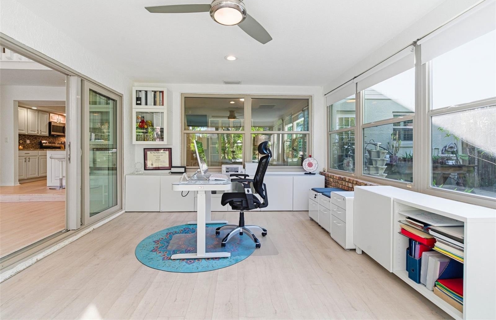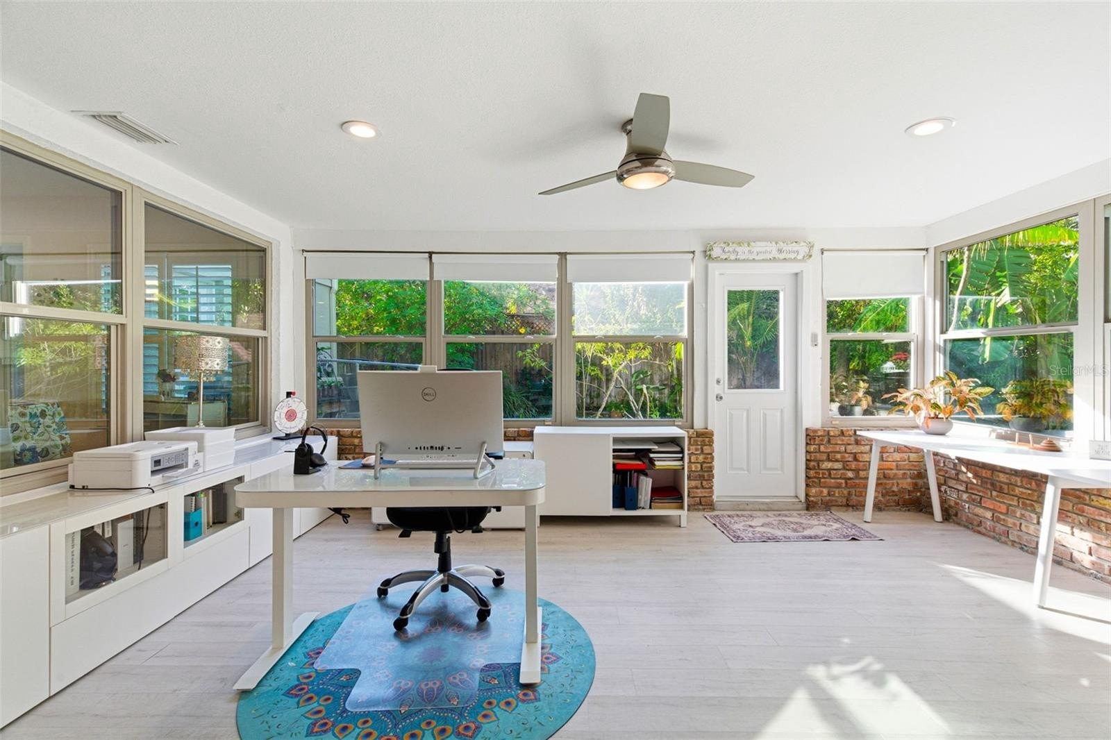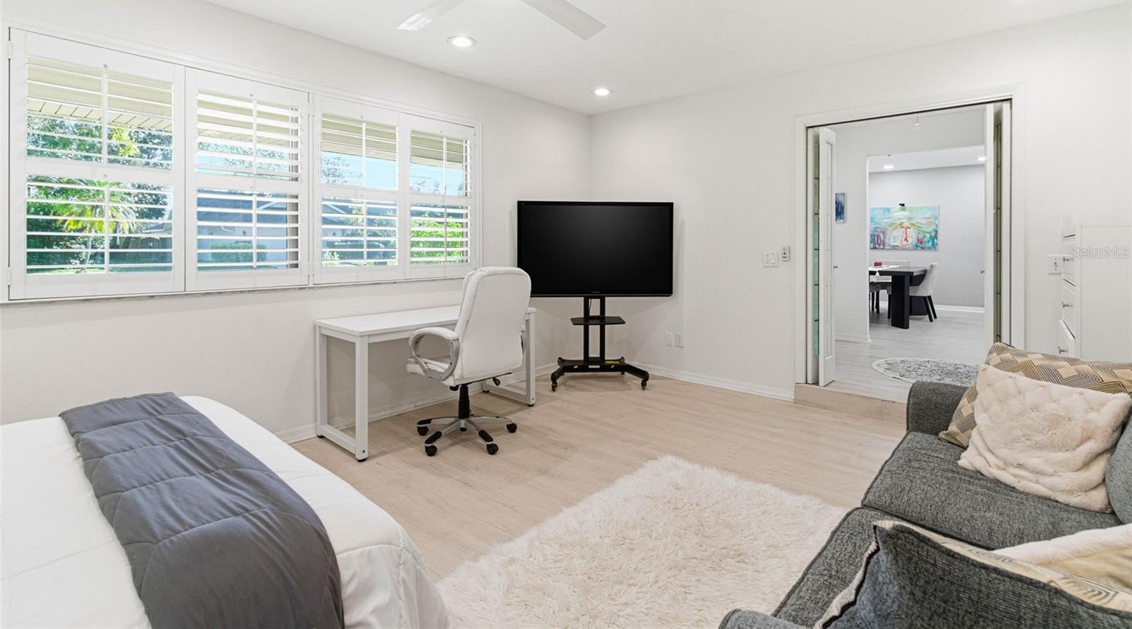 Welcome to 5026 Barrowe Drive, a one-of-a-kind residence nestled in the heart of Carrollwood! One of Tampa’s most established and sought-after neighborhoods, surrounded by golf courses, tennis courts, parks, and everyday conveniences. This artfully styled, character-rich home offers 3,364 square feet of thoughtfully designed living space, featuring 4 bedrooms, 2.5 bathrooms, a 3-car garage, and 2 expansive bonus rooms—providing exceptional flexibility for today’s modern lifestyle. The primary suite is conveniently located on the first floor, creating a private retreat complete with sliding glass doors leading directly to the heated saltwater pool and spa. The spa-like ensuite bathroom includes a walk-in shower, separate soaking tub, and a built-in sauna, offering a true resort-at-home experience. The main living areas are filled with natural light and architectural interest, highlighted by a two-story vaulted family room with abundant windows, creating an open, airy feel throughout the home. Also on the main level, you’ll find a dedicated dining room, a kitchen with white cabinetry and granite countertops (classic and well-maintained), and an office surrounded by windows overlooking the lush garden, perfect for working from home. A half bathroom for guests, laundry room with lots of storage, and a large bonus room on the first floor, currently used as a bedroom, adds even more versatility. Upstairs, the home continues to impress with three generously sized bedrooms, a loft area overlooking the family room, and a full bathroom with dual vanity sinks, ideal for family living. Recent updates include a newer roof (approximately 2 years old), newer A/C, and updated double-pane windows and sliding glass doors, ensuring comfort and efficiency. What truly sets this property apart is the over-the-top lush landscaping in the backyard. An entertainer’s dream and private oasis featuring mature fruit trees, vibrant greenery, and a heated saltwater swimming pool and spa, perfect for year-round enjoyment. With its artistic charm, flexible layout (including multiple bonus rooms that can easily function as offices, dens, or additional sleeping spaces), and prime Carrollwood location, this home seamlessly blends character, comfort, and functionality, making it an exceptional opportunity for families and creatives alike.