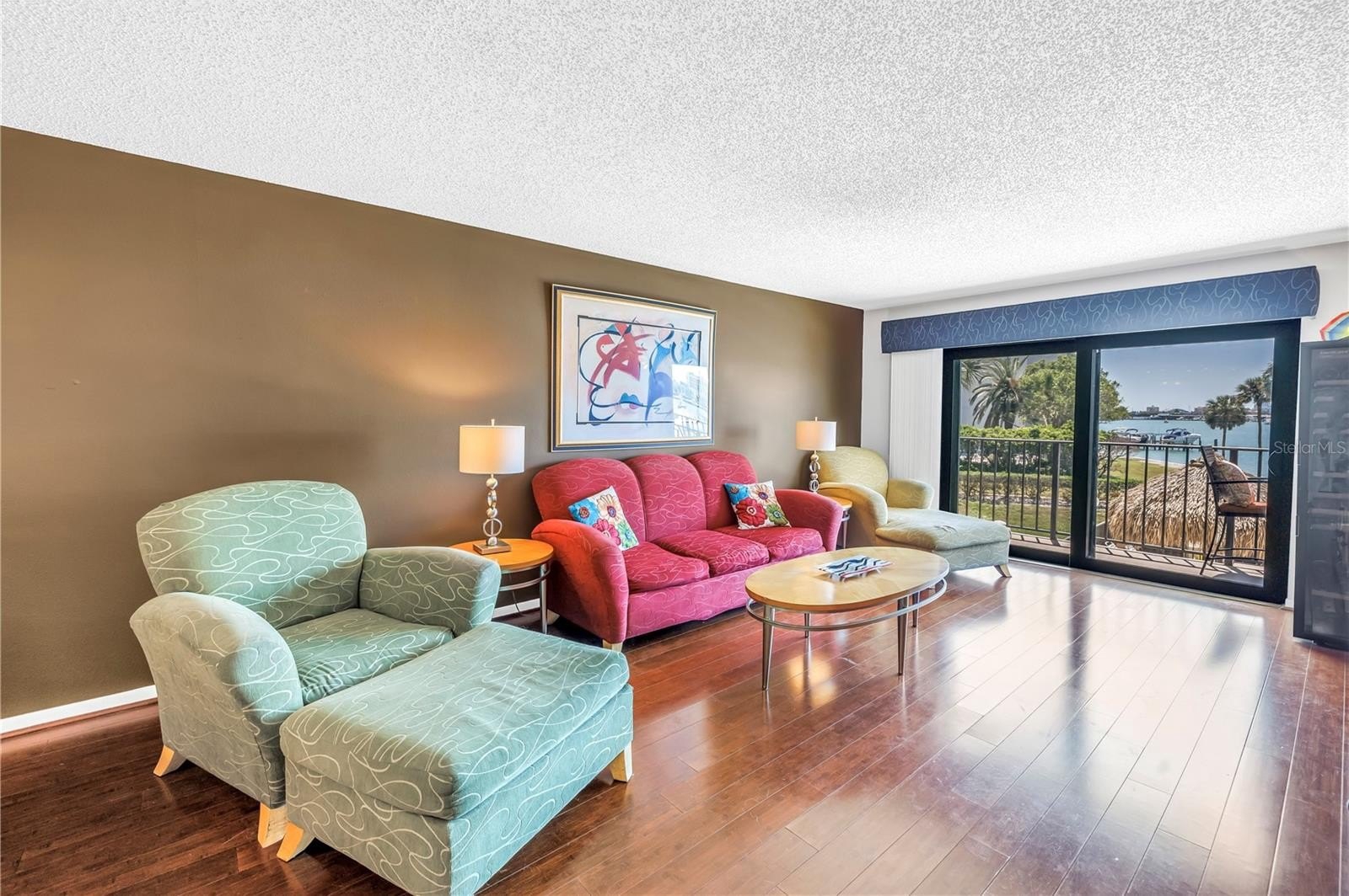 Welcome home to this beautiful, updated, waterfront, second floor condo that sits on one of the highest elevation points in Island Estates and is situated on the beautiful Clearwater intercoastal waters. Sit and relax on your private balcony and enjoy the beautiful sunsets while enjoying a glass of wine or your favorite beverage. Enjoy watching boats and sea life as they make their way by the relaxing community pool and tiki bar on the intercoastal waterway. Enjoy turnkey living with this completely furnished unit with updated hurricane rated sliding doors installed in 2024. Access is off both the primary bedroom and living room. Newer AC replaced in 2022. This unit was not impacted by any of the recent storms that came through the area. Have peace of mind knowing that this building has passed the recent Milestone inspection. Enjoy the many amenities of living in Island Estates including the Clearwater Marine Aquarium, Publix, several restaurants, park/playground, plus much more. Clearwater Beach is only a short drive/walk away, which was ranked one of the best Florida beaches, and has many nice restaurants and activities for your convenience. Schedule a showing today and own your own slice of paradise.great investment potential.No minimum years of ownership required to rent your unit. Some units rent for $2500-$3000 a month. Brand new hurricane impact windows installed August 2025