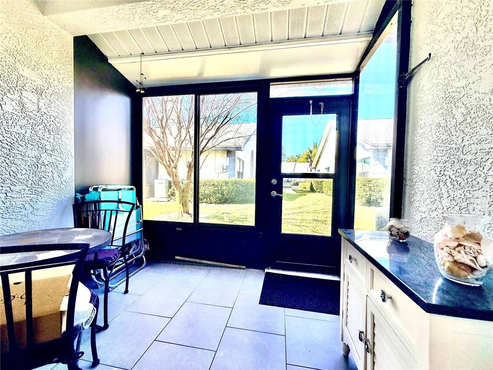 WELCOME TO THIS GORGEOUS 2 BEDROOM VILLA (NO STAIRS TO CLIMB!) WITH 2 CARPORT SPACES JUST A FEW STEPS FROM YOUR FRONT DOOR! This home has tons of RENOVATIONS and comes furnished making it MOVE IN READY! From the moment you walk in, you'll be greeted with tons of natural light from the gorgeous western exposure, allowing you to sit on your private enclosed patio and enjoy the gorgeous sunsets every evening. The kitchen features ALL NEWER STAINLESS Appliances, GRANITE Countertops with breakfast bar, Soft Close Shaker Cabinets, updated fixtures, beautiful lighting, and elegant, wide plank Luxury Tile Flooring that runs throughout the main part of the house. The Master Bedroom features 2 SPACIOUS CLOSETS, and a tastefully updated ensuite . This unit is the perfect split floorplan for privacy as the second bedroom and full bathroom. You'll also appreciate ample interior storage space PLUS an indoor FULL-SIZED Washer and Dryer! Additional UPDATES include New HVAC (2025) and Roof (2000). The Community welcomes ALL ages, is pet friendly and offers a huge pool with Barbeque area and a Clubhouse with a Full workout room! Close to everything the desirable Countryside area has to offer with shopping, restaurants, Top Rated golf courses and just a short walk across the street is the Countryside Rec Center with Pickleball courts, Playground, Picnic Tables, Outdoor Gym Equipment, Gymnasium, Fitness Center & Outdoor Basketball Courts and more! AND You are 10 minutes in either direction to enjoying the famous Downtown Dunedin and Downtown Safety Harbor where there's always something fun to do every weekend! DONT MISS THIS ONE!