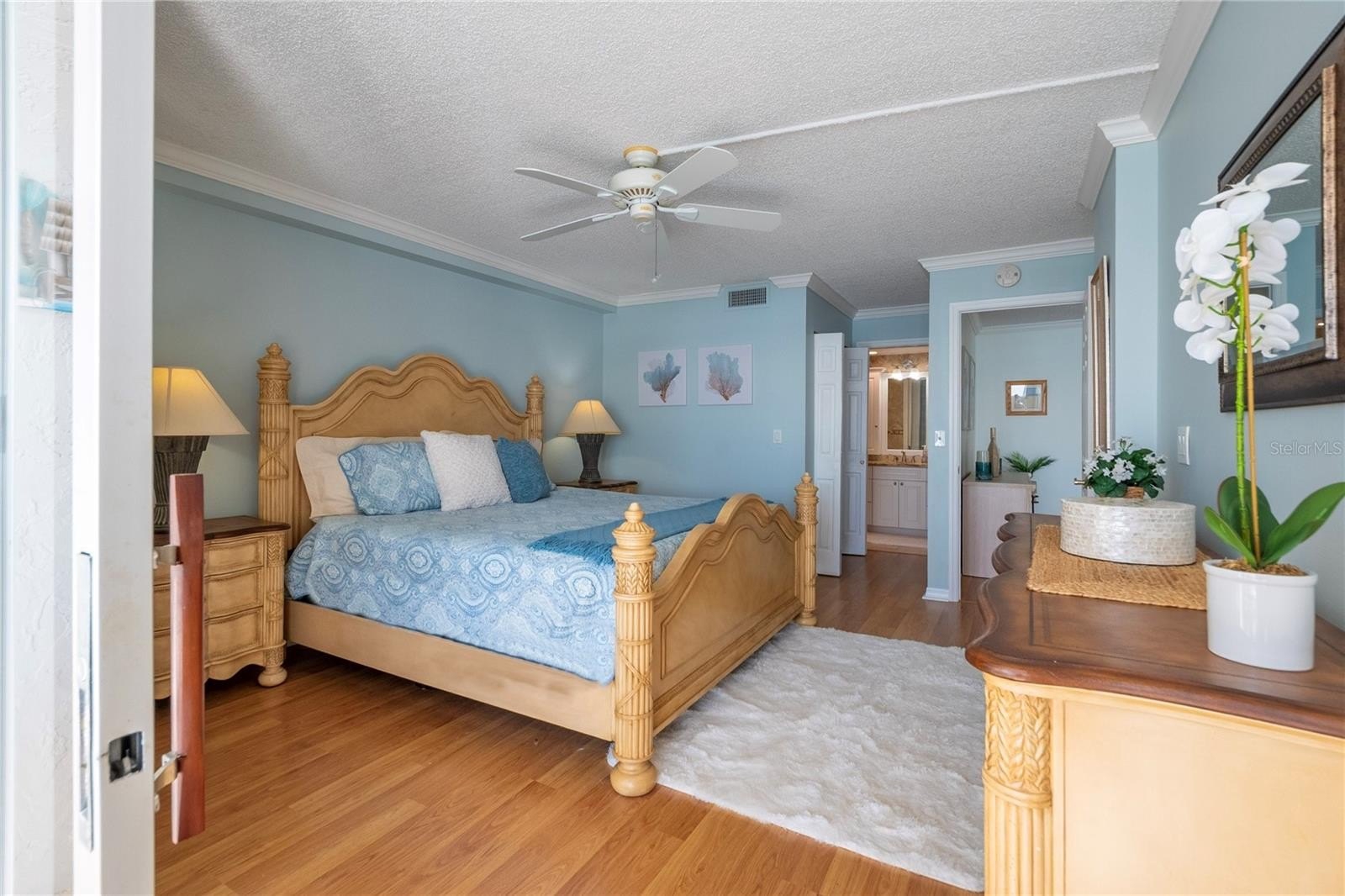The primary bedroom has a luxurious, “Tommy Bahama” West Indies Island charm and sliders that frame the turquoise bay waters outside. Additional features are a walk-in closet, ensuite bath with beige tile accents throughout, and a newer walk-in shower with sliding textured glass doors. A 2nd bedroom provides a flexible guestroom with a sofa bed, reading nook. It can also be converted to a home office or gym and features a full dedicated bath right outside the door. The HVAC and electrical panel have both been recently updated.