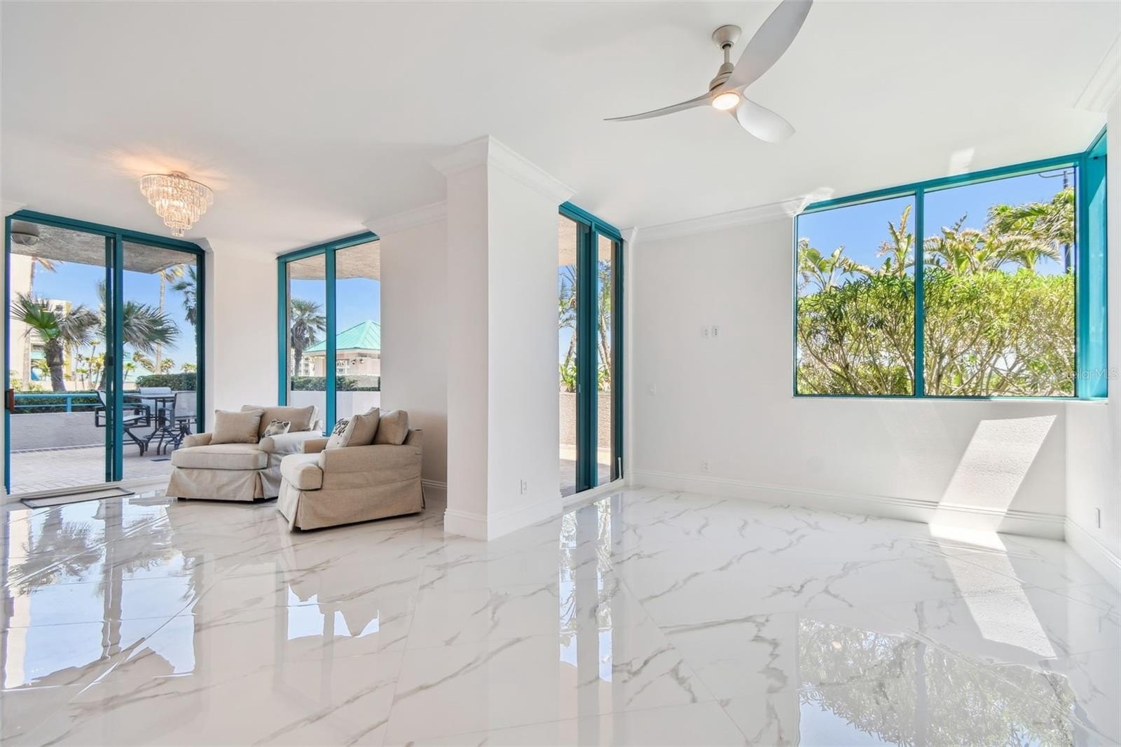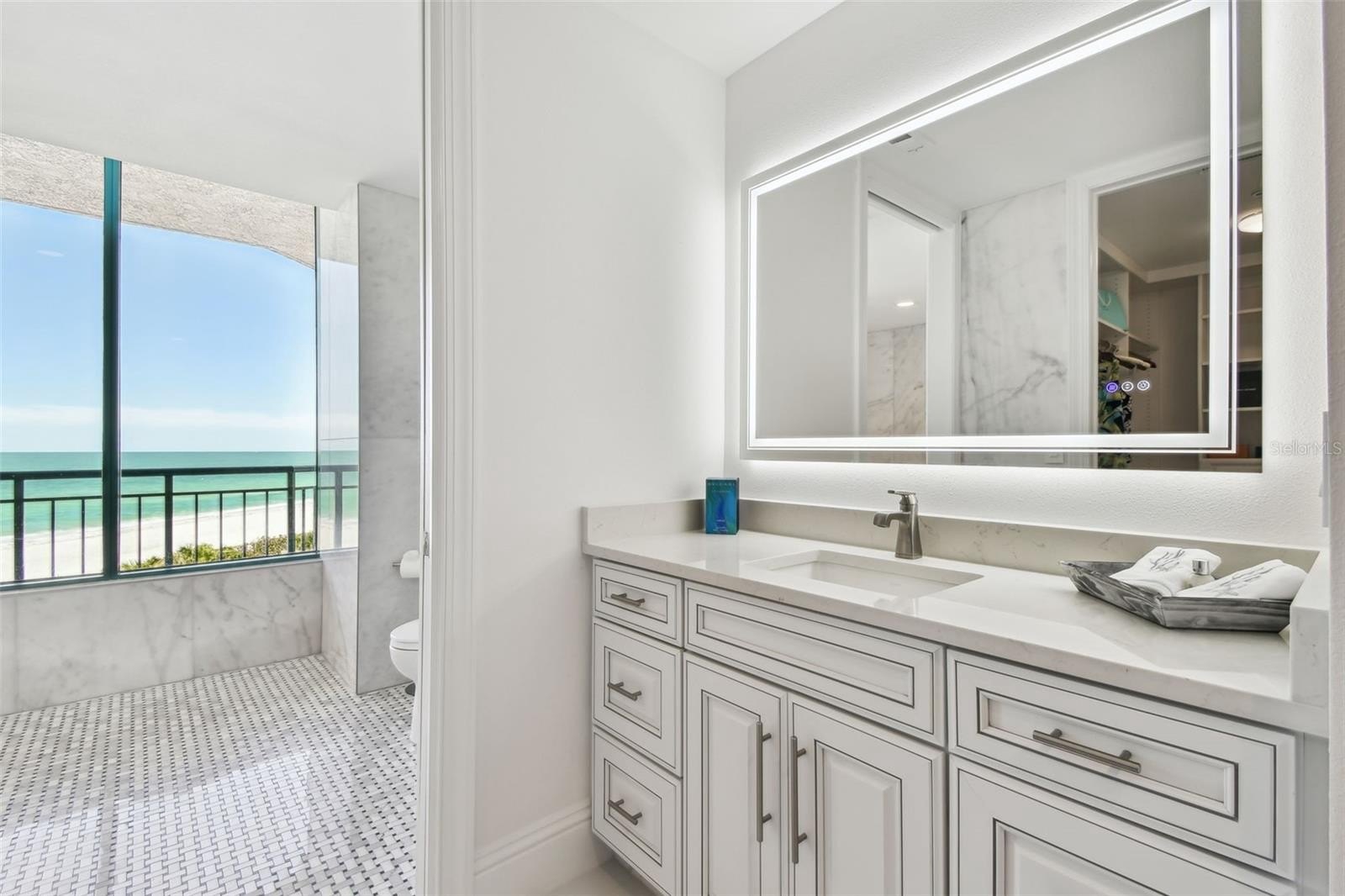 Exquisitely renovated beachfront two-story Plaza level condo offering modern coastal elegance, high-end finishes, and breathtaking gulf views--an exceptional turn key seaside retreat! This rarely available corner unit provides an unparalleled lifestyle with over 4,300 square feet of indoor space & 2,500+ square feet of private, outdoor living on the wrap-around terrace and balcony, all with breathtaking Gulf views. Inside, the open and spacious floor plan, featuring high ceilings & designer lighting, creates a warm and inviting space for both relaxation & entertaining. The unit offers 4 bedrooms & 4.5 bathrooms, Control4 smart home & wet bar area with 2 beverage refrigerators. The kitchen is a culinary delight with quartz countertops, high-end stainless-steel appliances, custom cabinets, and a breakfast bar. The primary suite is a private sanctuary with a Gulf front balcony, a large sitting area, 2 custom walk-in closets and spa-like baths featuring dual quartz vanities, a colossal jetted tub, dual water closets with Toto toilets, a new oversized steam shower and tile & marble flooring throughout all baths. This residence also includes a brand-new private elevator. Enjoy direct access to the beach & pools via patio walkways for seamless indoor/outdoor living, and a private two-car garage. Ultimar III on Sand Key Beach embodies five-star resort-style living & offers a lifestyle of luxury with amenities such as on-site management, 24-hour security, gated entry, 3 heated pools with spas, tennis & basketball courts, a putting green, pickleball & croquet courts, an outdoor kitchen, dining areas, fire-pit, lush landscaping, a state-of-the-art fitness center with spa, locker rooms, steam room, sauna, and showers. Social & recreational opportunities abound with a library, a social area with a full kitchen & media center, a business meeting room, and a billiards room. The building’s two-tiered lobby provides a grand entrance with expansive views. Enjoy the convenience of nearby restaurants, shops & salons. Take advantage of the Beach Trolley located right outside for easy access to Sand Key Park and Clearwater Beach. Sand Key Beach offers an exclusive & sophisticated coastal living experience. Detailed list of upgrades available on request. Seller financing available.