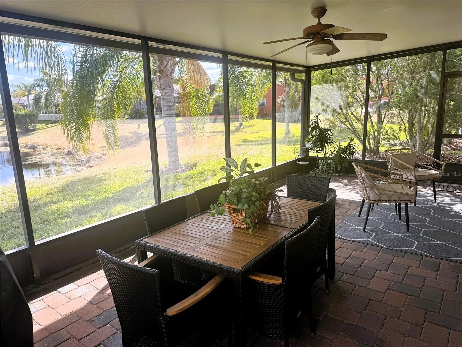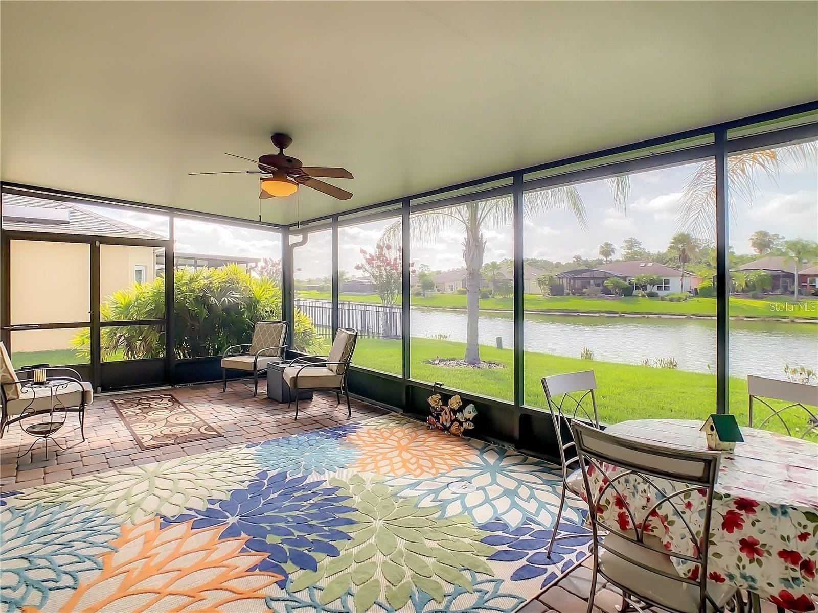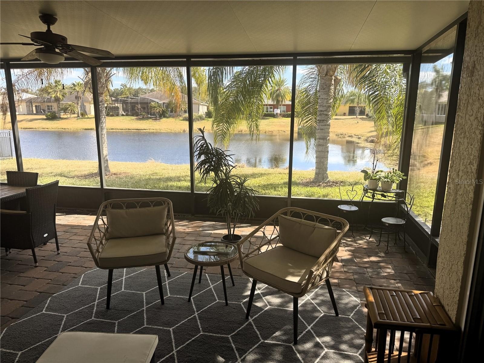 ****WATERFRONT**** Allegro Model 2 bedrooms 2 baths PLUS Den/flex room just under 1500 square feet. 2 car garage. Beautiful views from your covered Lanai. Facing northwest get morning sun and afternoon shade, enjoy sounds and views of waterfront living. An Updated Allegro Model Home with an Amazing Waterview! Upgrades Galore. New Granite Countertops, a new Deep Sink, Newer Kitchen Appliances, newer washer and dryer and modern fixtures. This home has a recently painted exterior and freshly painted interior trim. New Sliding doors installed in 2021, in 2016 a new roof was installed. The finishes in this home are exquisite and include wood trimmed mirrors and custom touches throughout. From the moment you step onto the Covered Porch you are greeted with a lovely front door with etched leaded glass door and enter into a foyer with a spacious Den at the front of the home and a generous Great Room open to the Kitchen and Dining Room. This split floor plan home has the Owners suite on one side of the residence and the guest bedroom on the other. The kitchen is modern and welcoming with granite counters and newer Stainless Steel Appliances and a wrap around bar top perfect for casual dining, open to the dining room and great room. Enter the Covered, Extended and Screened Lanai from either the dining room or the great room. Open the grand lanai doors and let the breezes flow through this home. Stunning Water Views and inviting vistas await you from this home. The primary Suite is nicely planned with lots of room for a king bed and a full suite of furnishings. The walk-in closet is large, and this suite also includes a linen closet. The primary bath has a large walk shower surrounded by glass. Bedroom 2 has a walk-in closet with ceiling fan. This Allegro model has Lots of room for all your needs. The landscape is tropical and lovely. This home offers 1,467 Sq. Ft. of living space under air Plus the Extended Lanai. The garage has 2 overhead storage racks plus a utility sink, perfect for clean up after a game of golf or an afternoon in the garden. Put this home on your list today, it will not last. Solivita is an Award Winning 55 Plus Active Community in Central Florida with 2 Championship PGA Golf Courses, 14 pools, 2 State of the Art Amenity Centers complete with the latest equipment, trainers and a full schedule of classes. Relax in one of the hot tubs, play pickleball, tennis, horseshoes, softball or bocce ball on any of our courts, meet friends, make friends and enjoy the good life that Solivita Offers. We are completely gated and guarded 24/7, near schools, houses of worship, shopping and fun. Solivita is a 4,300 acre safe community with ponds, lakes, gardens, conservation Do not miss this opportunity to own and live in Paradise. Give us a call and set up a private showing