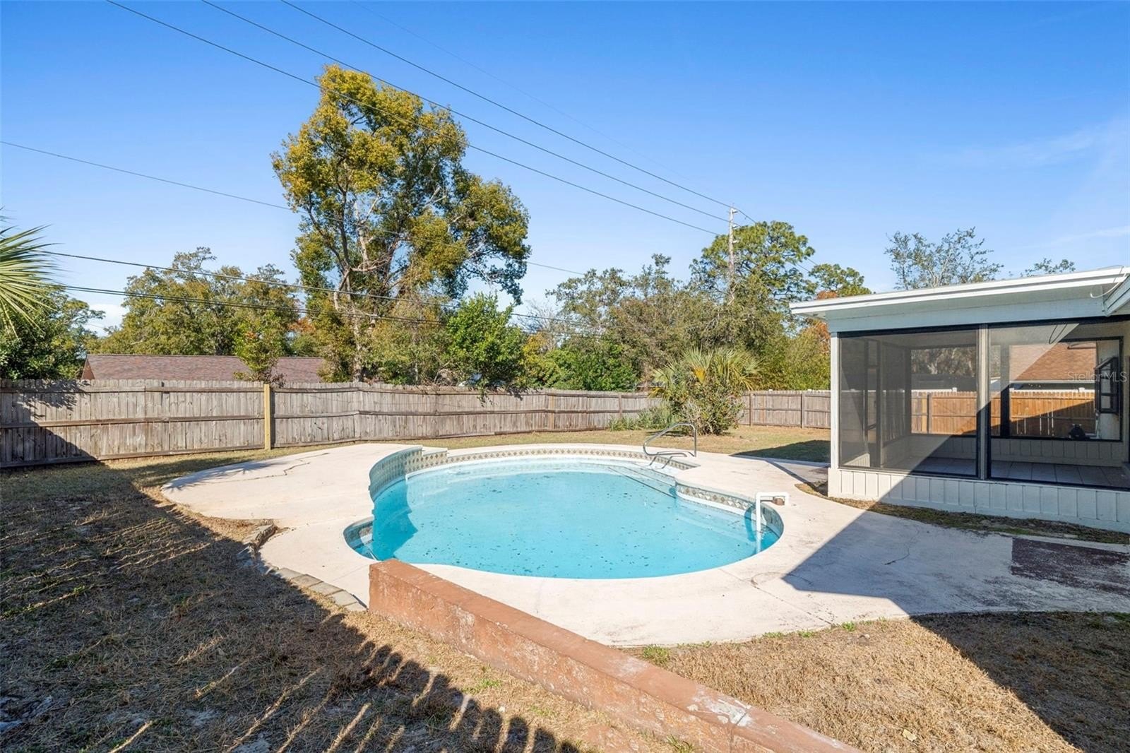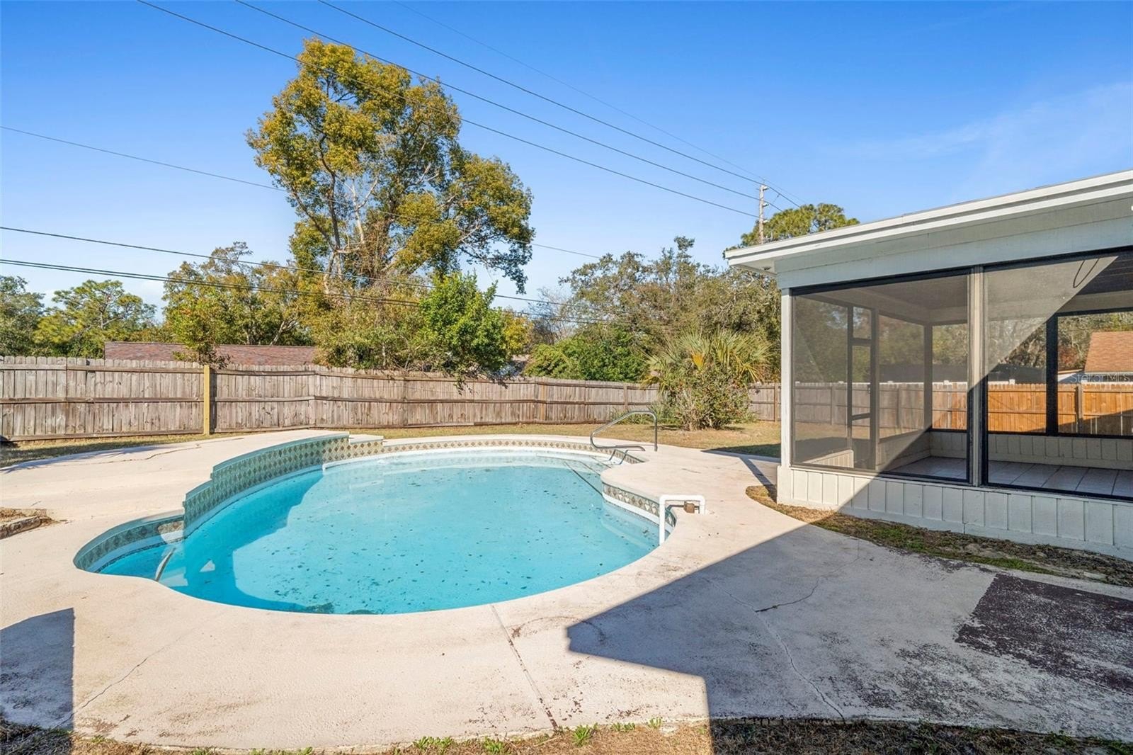 The updated kitchen offers ample cabinetry and workspace, ideal for both casual meals and hosting gatherings. Sliding doors lead to a screened porch overlooking the pool, extending your living space outdoors and providing the perfect setting for morning coffee or evening relaxation. The fenced backyard offers privacy and room to enjoy Florida living, whether poolside entertaining or quiet weekends at home. The private pool area is the true centerpiece—ideal for cooling off, entertaining guests, or soaking up the sun year-round.