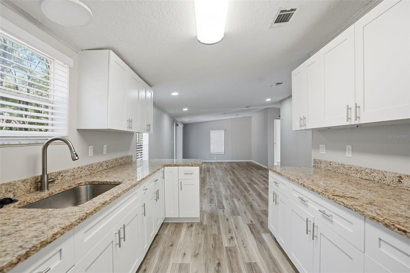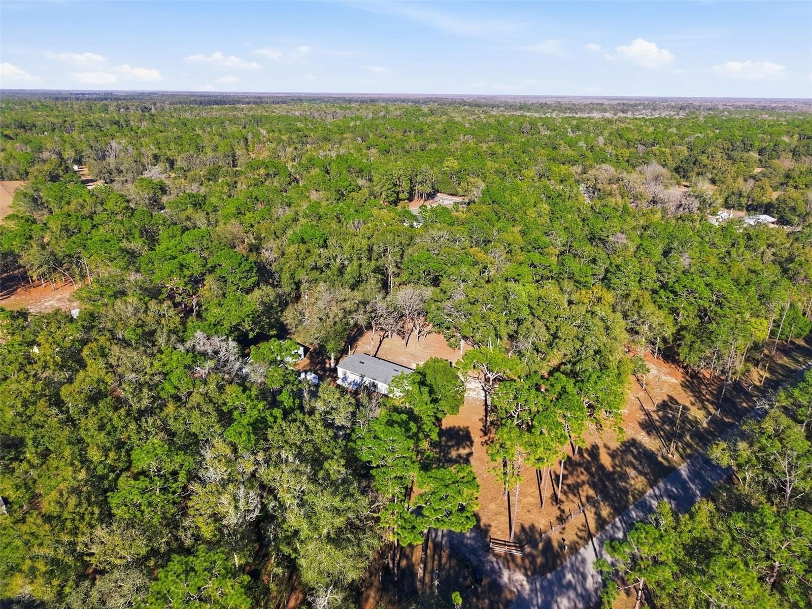 Stylishly Upgraded Mobile Home with Impressive Acreage, Chef’s Kitchen, and Large Primary Suite! Idyllically located in a quiet country setting, this 3BR/2BA residence affords a tranquil atmosphere for easy living. Boasting a fenced-in 5.1-acre lot, the property welcomes with a front gate, multiple mature trees, and a spacious covered front porch. Explore the freshly painted interior to discover gorgeous faux-wood vinyl flooring, modern color scheme, and a large living room with a ceiling fan. Perfect for whipping up delicious meals, the open concept chef’s kitchen delights with granite countertops, stainless-steel appliances, white shaker cabinets, electric double oven, French door refrigerator, built-in microwave, undermount stainless-steel sink, pantry, and dining area. Entertainment-value is further enhanced with the adjacent family room, which is ideal for gatherings, hanging out with loved ones, or streaming your favorite tv series. Let relaxation reach new heights in the sizeable primary bedroom, and enjoy the possibilities of the high-end en suite. Bask in the granite-topped dual sink vanity, sleek light fixture, and a stepin shower. Two extra bedrooms are wonderfully sized for comfortable accommodations, while the full guest bathroom has a shower/tub combo, granite-topped storage vanity, and attractive hardware. Venture into the backyard to find a gravel patio, storage shed, covered BBQ gazebo, and a chicken coop. The showstopper is the unfinished versatile outbuilding with double glass doors, a window, and durable concrete flooring. Whether you need flex space or a party-perfect entertaining area, the unfinished outbuilding may be customized to suit your personal desires. Additional considerations include a long gravel driveway, interior laundry area with built-in cabinets, newer roof 2023, AC 2025, water heater 2025, vapor barrier/underbelly 2024 and only 5-11+ miles from restaurants, shopping, parks, schools, and I-75, and much more! Come see today, and start living the good life in Brooksville’s beautiful countryside!