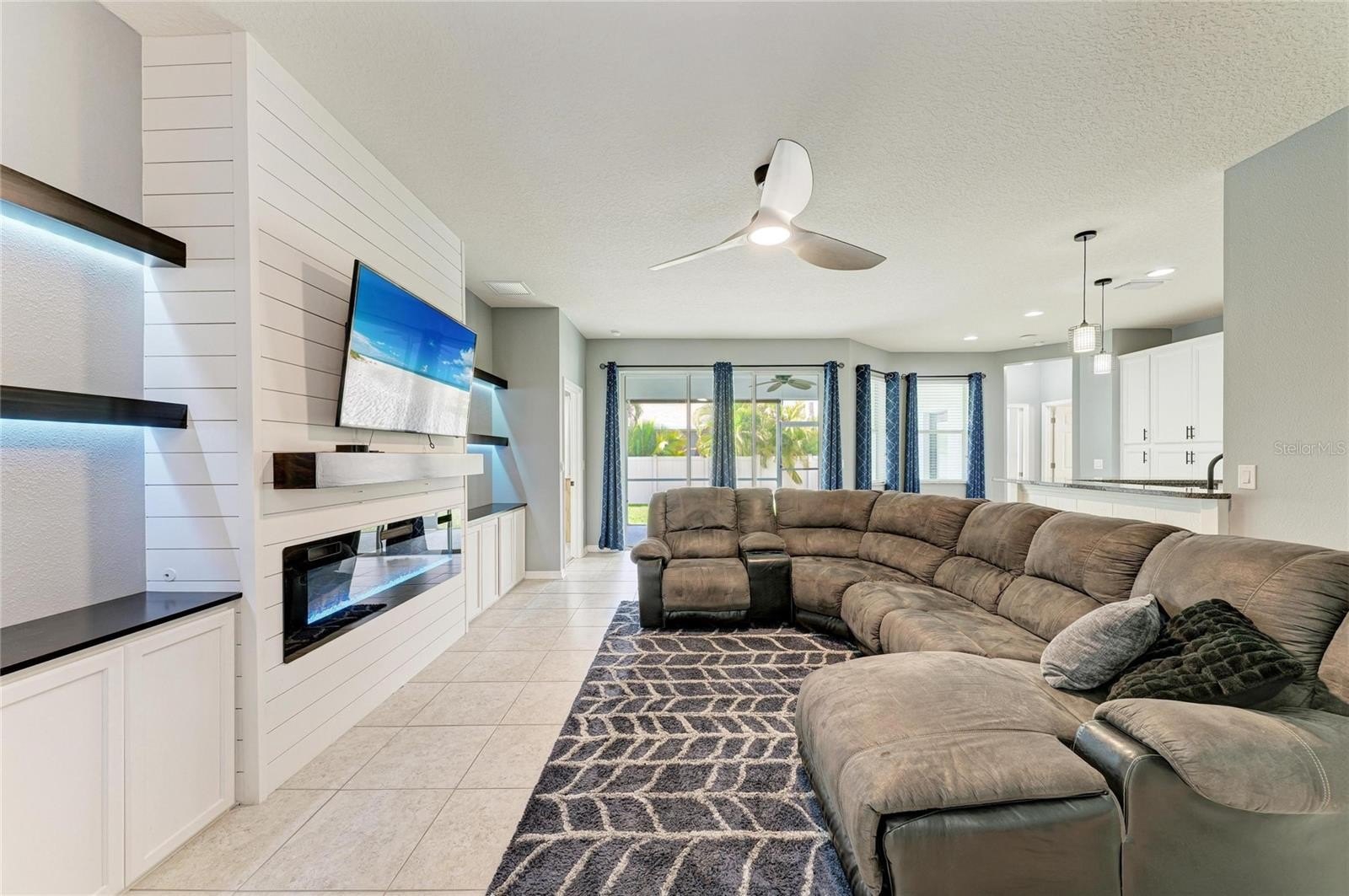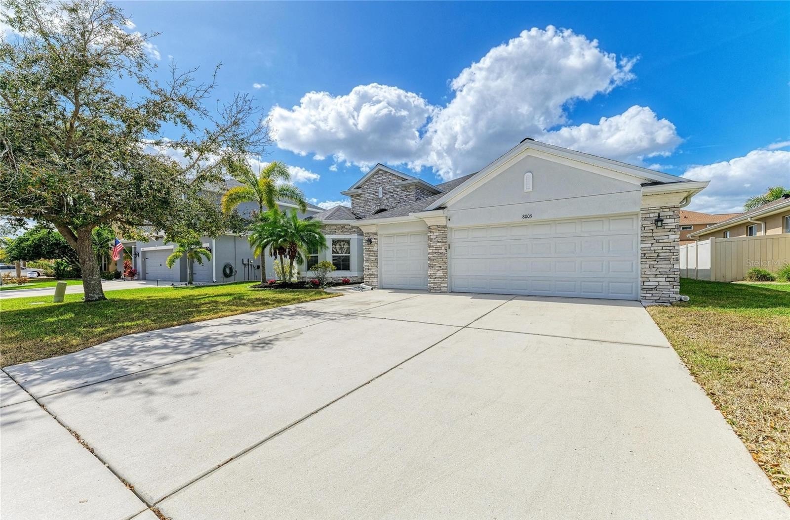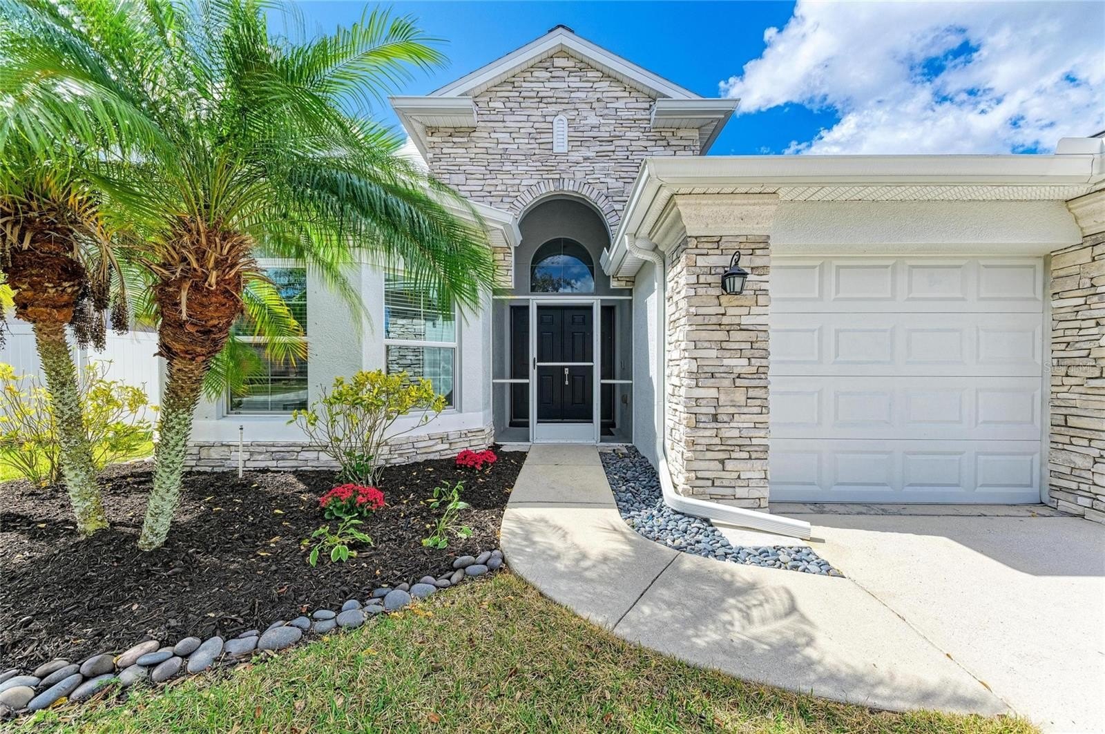 This beautifully designed ~4-bedroom,~3-bath home with an office and a ~three-car garage with Tesla Charger is located in the highly sought-after Copperstone community. With a brand new Roof installed in 2026, the home boasts substantial curb appeal. Inside, you'll find a stunning living room featuring a Custom fireplace with custom built-ins, perfect for creating a cozy atmosphere. The large office can double as a playroom, while the gourmet kitchen is a chef’s dream, equipped with ample White cabinets, Granite countertops, Newer S/S Appliances, and a breakfast bar ideal for entertaining. The home has generous living space, with 2 of the 3 bathrooms updated. The master bedroom comes with an oversized walk-in closet, complemented by a Master Bathroom featuring both a shower and a garden soaking tub. Enjoy the convenience of a custom laundry room with abundant cabinets for storage. Throughout the home, beautiful luxury vinyl and tile floors add to the aesthetic appeal. Step outside to your private lanai area and enjoy a fenced-in backyard, perfect for pets. Copperstone HOA fees include Cable and Internet as well as great amenities, including two resort-style swimming pools, a gym, Basketball courts, Tennis, and a clubhouse. Lots of fun and family functions like movie nights, and golf cart parades This gated community is conveniently located within walking distance to schools, grocery stores, and shopping options, making it a great place to call home!