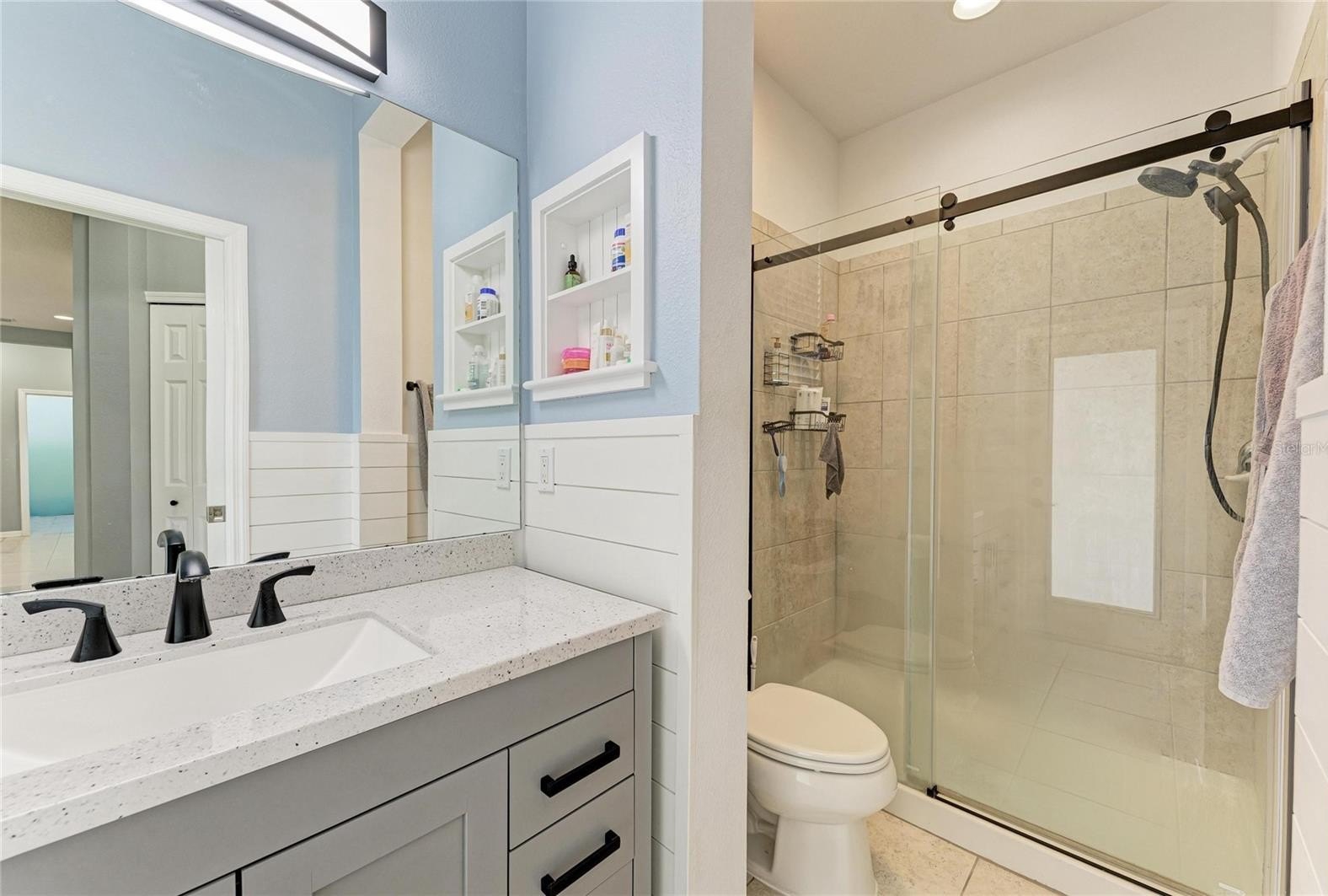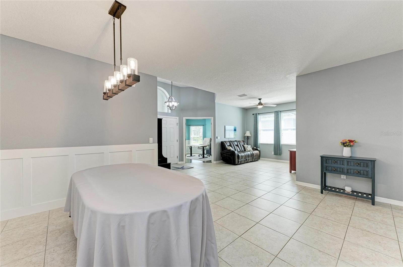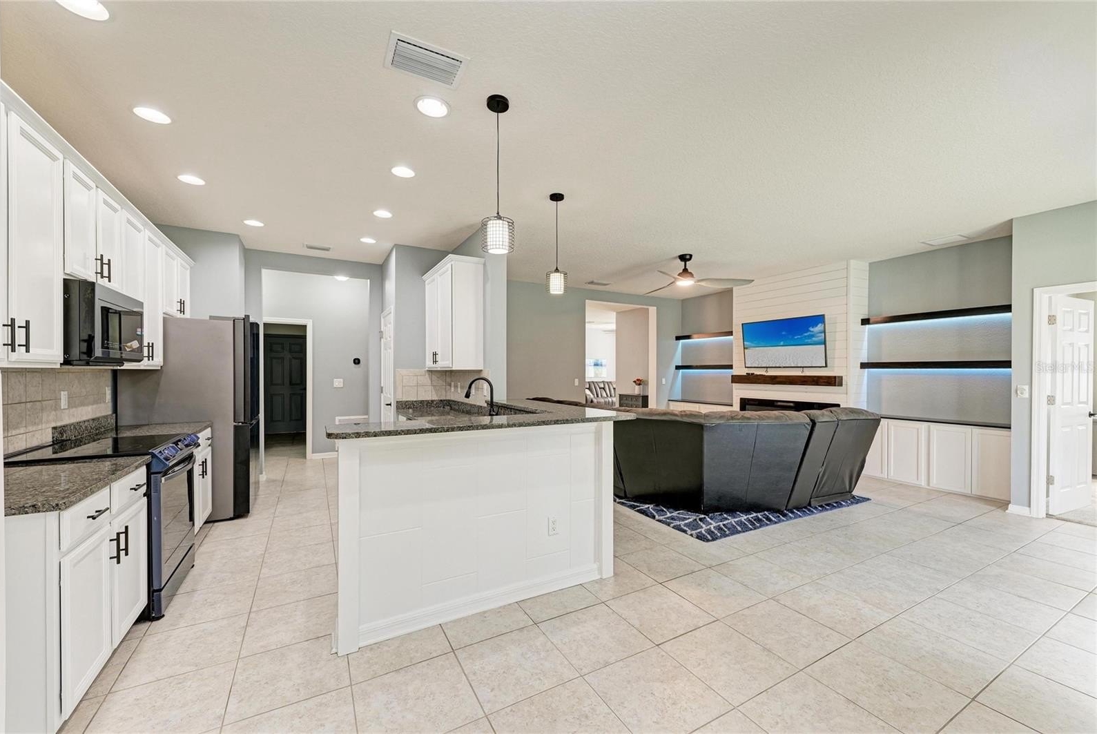 This beautifully designed ~4-bedroom,~3-bath home with an office and a ~three-car garage with Tesla Charger is located in the highly sought-after Copperstone community. With a brand new Roof installed in 2026, the home boasts substantial curb appeal. Inside, you'll find a stunning living room featuring a Custom fireplace with custom built-ins, perfect for creating a cozy atmosphere. The large office can double as a playroom, while the gourmet kitchen is a chef’s dream, equipped with ample White cabinets, Granite countertops, Newer S/S Appliances, and a breakfast bar ideal for entertaining. The home has generous living space, with 2 of the 3 bathrooms updated. The master bedroom comes with an oversized walk-in closet, complemented by a Master Bathroom featuring both a shower and a garden soaking tub. Enjoy the convenience of a custom laundry room with abundant cabinets for storage. Throughout the home, beautiful luxury vinyl and tile floors add to the aesthetic appeal. Step outside to your private lanai area and enjoy a fenced-in backyard, perfect for pets. Copperstone HOA fees include Cable and Internet as well as great amenities, including two resort-style swimming pools, a gym, Basketball courts, Tennis, and a clubhouse. Lots of fun and family functions like movie nights, and golf cart parades This gated community is conveniently located within walking distance to schools, grocery stores, and shopping options, making it a great place to call home!