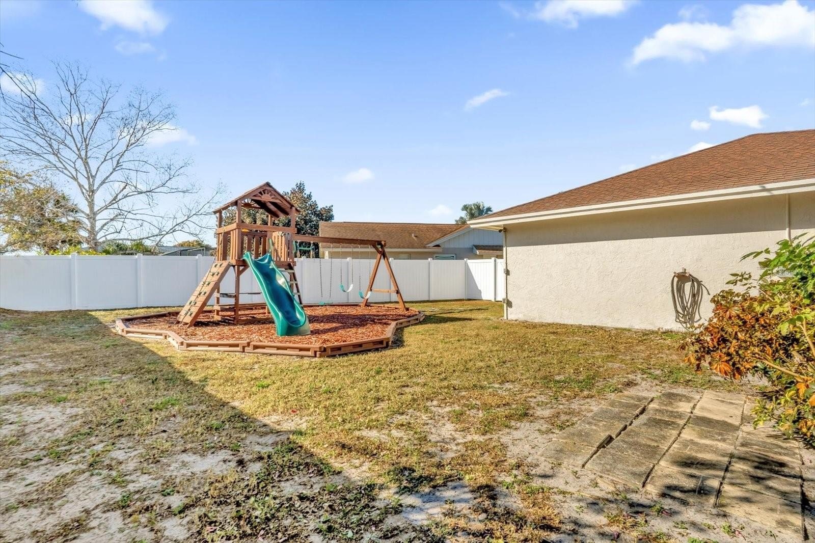 Step outside to a spacious backyard designed for enjoyment, featuring a screened-in, heated pool—perfect for year-round relaxation and entertaining. The large yard includes a playground and is fully fenced, offering both privacy and plenty of space to enjoy outdoor activities. Inside, the home features a comfortable and functional layout with 3 bedrooms, 2 bathrooms, and a versatile office/flex room to suit your needs.