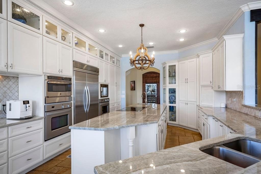 Extraordinary Lake Butler views abound from this classically elegant yet recently updated Chaine du Lac estate residence. Cradled in a private cove on Windermere’s signature lake on The Butler Chain, this showplace address stands supreme for its majestic presence, distinguished features and updates, and unsurpassed outdoor resort-style entertainment and living areas. Boasting a new roof, new reimagined primary retreat with a completely renovated bathroom and spa-like shower, new summer kitchen, refreshed game room/theater, and $100,000 designer lighting package by Lightstyle Orlando, this grand residence epitomizes glorious lakefront living. Inspired by tranquil golden sunsets, sparkling lake vistas, and elevated living, every detail has been crafted to create seamless living in a luxurious setting. The sumptuous living and dining rooms are highlighted by soaring ceilings and a dramatic double-sided fireplace, while the spacious family room and breakfast nook seamlessly connect to the kitchen and open to serene water views. The primary suite is masterfully updated with modern appointments including beautiful vanities, an oversized walk-in shower, and a freestanding tub. The primary suite also features a gas fireplace and a private den, offering a quiet escape. A thoughtfully designed guest suite with its own sauna is also located on the main level. Upstairs is a game room with full-bar, half bath, restaurant-grade smoke filtration system, and private balcony. A separate staircase leads to three ensuite bedrooms and newly unveiled recreation room with TV, table games, and built-in bar with beverage cooler. Across the pool deck is a flexible cabana space that can be used for a sixth bedroom, gym, or craft room. The outdoor living spaces are equally impressive, anchored by a spacious sundeck completely overhauled within the last few years that wraps around a shimmering pool accented by elegant fire pits. A newly updated summer kitchen sets the stage for effortless entertaining, while a grand pergola—complete with a loveseat swing and fireplace—offers a serene retreat. The property also features an immaculate sandy beachfront and a private double-slip boat dock keeping water toys within easy reach. A whole-home generator, 4-car garage, and high-energy HVAC units top the wish list of any home seeker. Experience the best of refined lakefront living in this iconic and move-in ready residence in one of Windermere’s most sought-after locations.